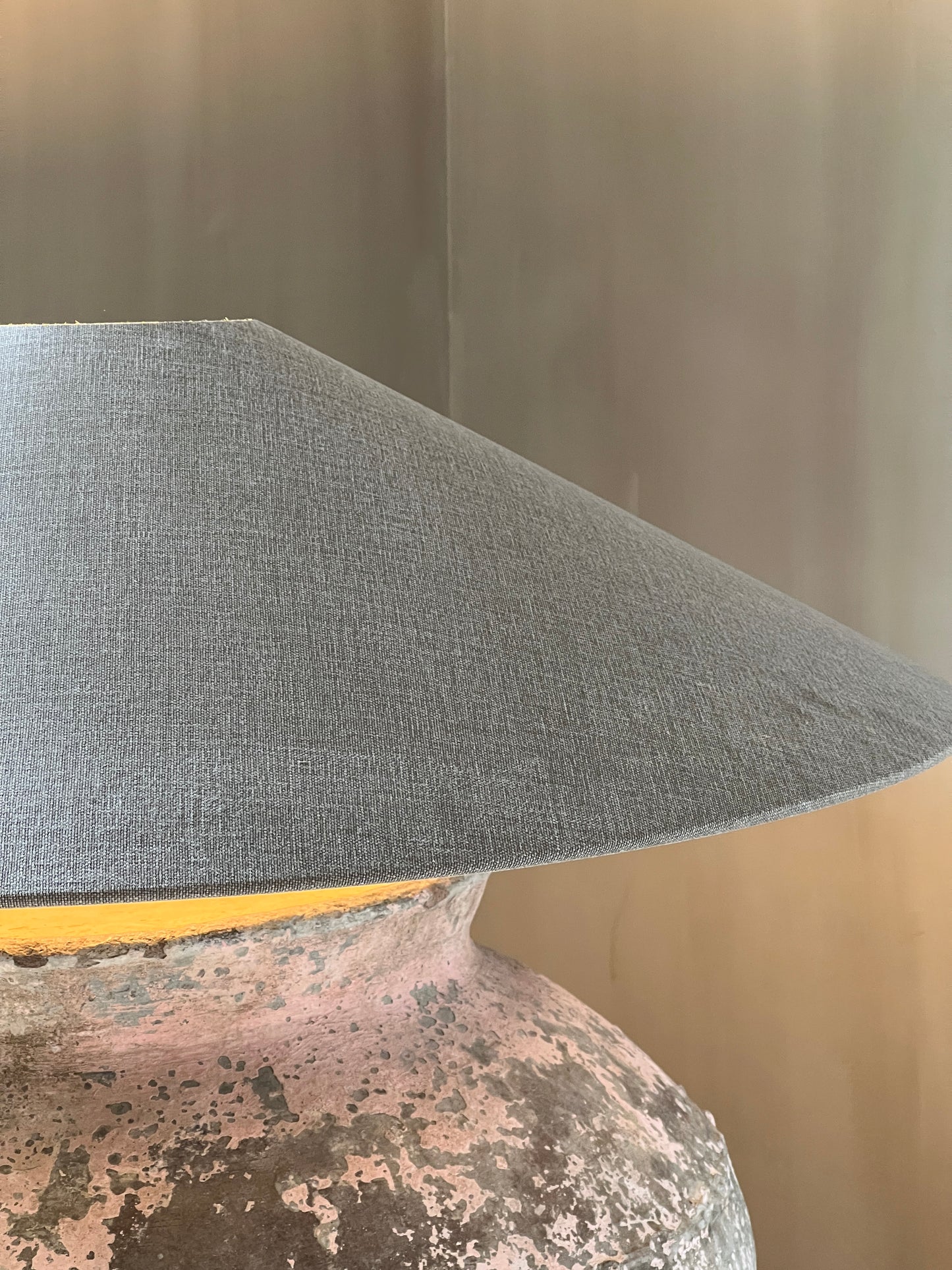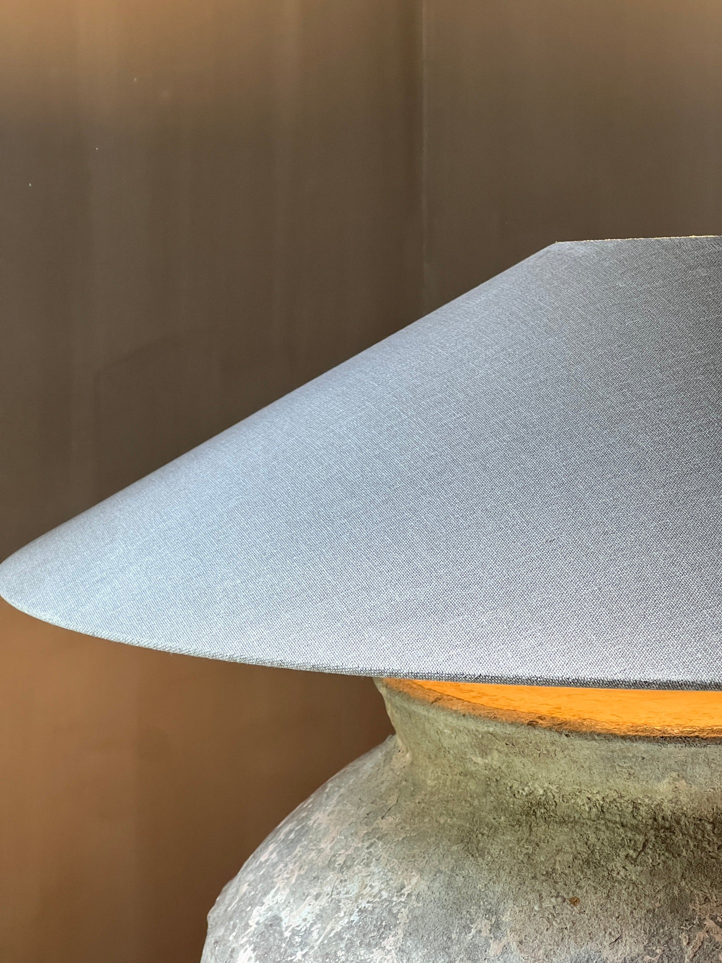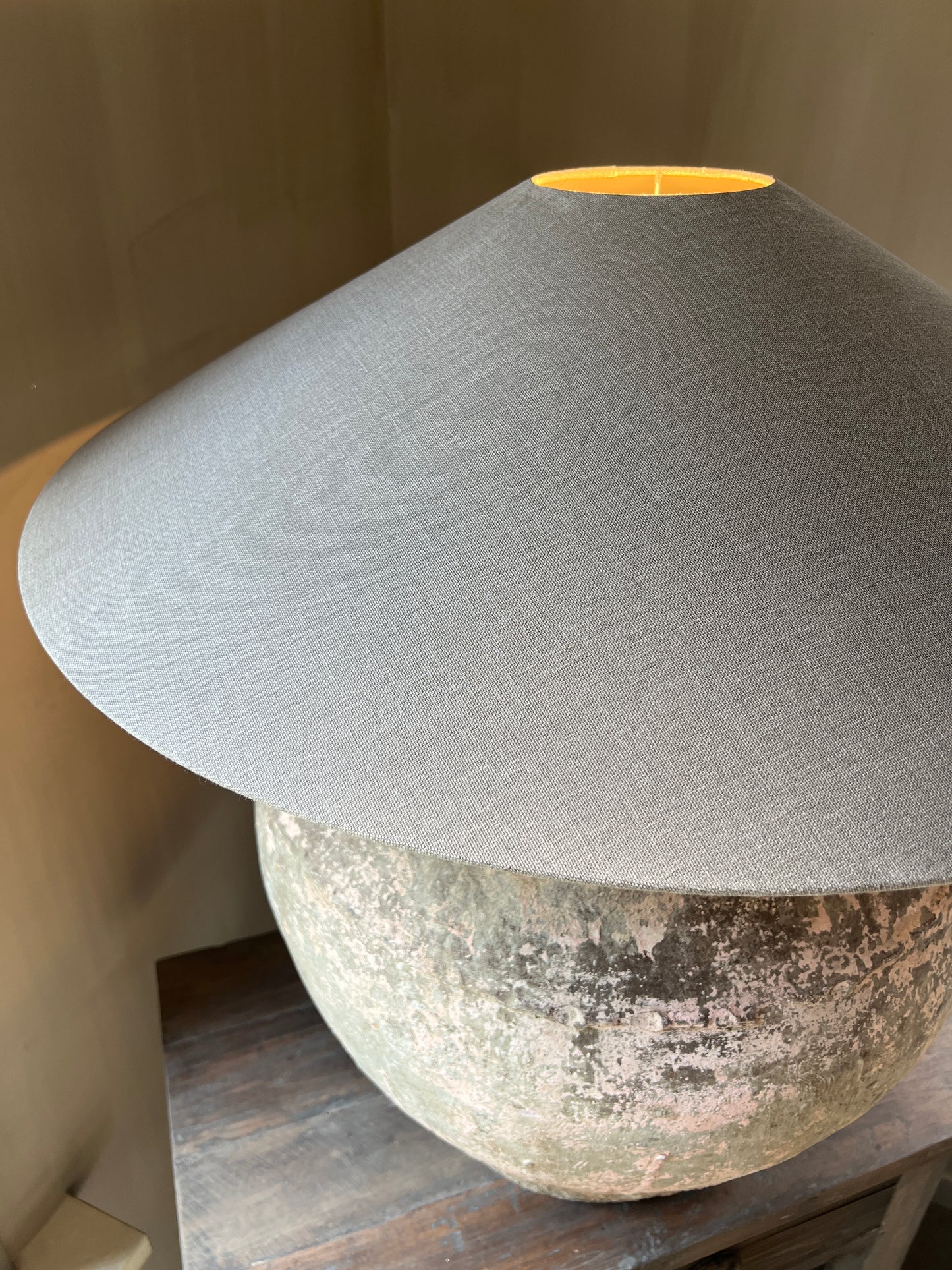 Dieser stilvolle chinesische Lampenschirm von Aura Peeperkorn ist in der warmen Farbe Polo Autumn (Taupe) erhältlich. Gefertigt aus hochwertigem Leinen, besticht er durch seinen authentischen, dezenten Look, der perfekt zu einer Kannenlampe oder einem rustikalen Interieur passt.