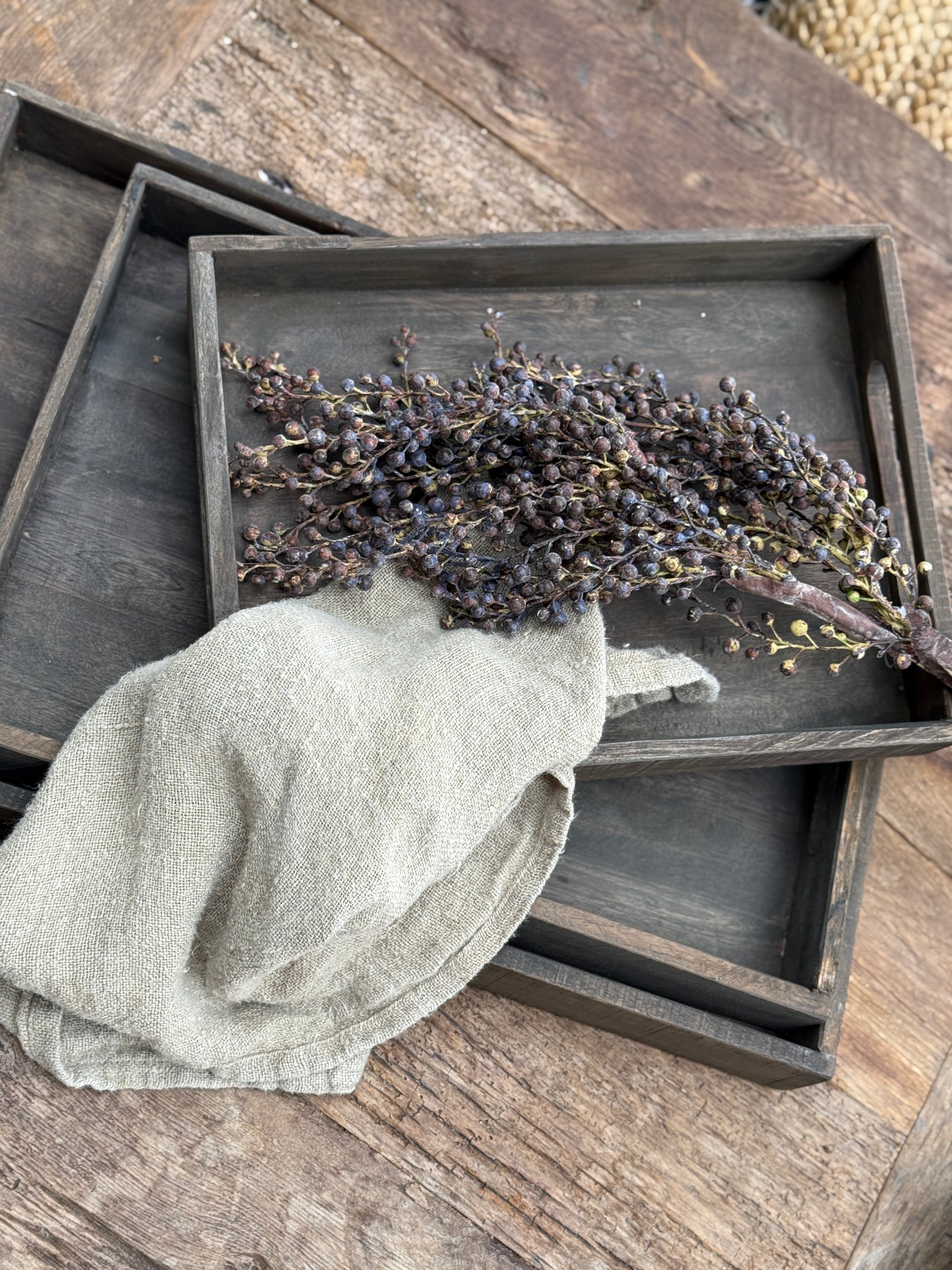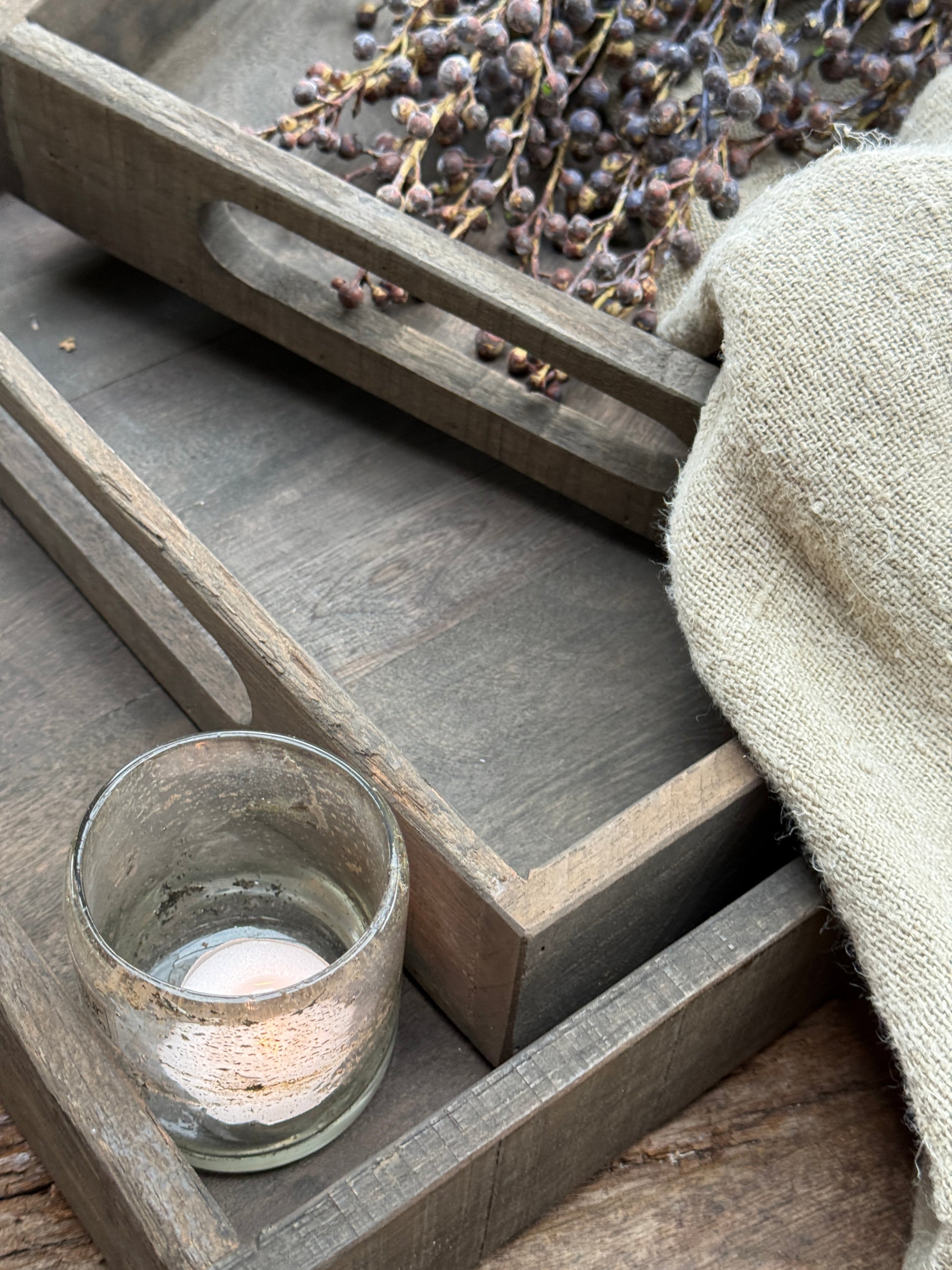 Robust, widerstandsfähig und stimmungsvoll – dieses wunderschöne Tablett aus Treibholz ist ein echter Hingucker in jedem rustikalen oder natürlichen Interieur. Das Tablett aus robustem Altholz mit seinem tiefen, dunklen Holzton und der verwitterten Optik ist ein echtes Statement.