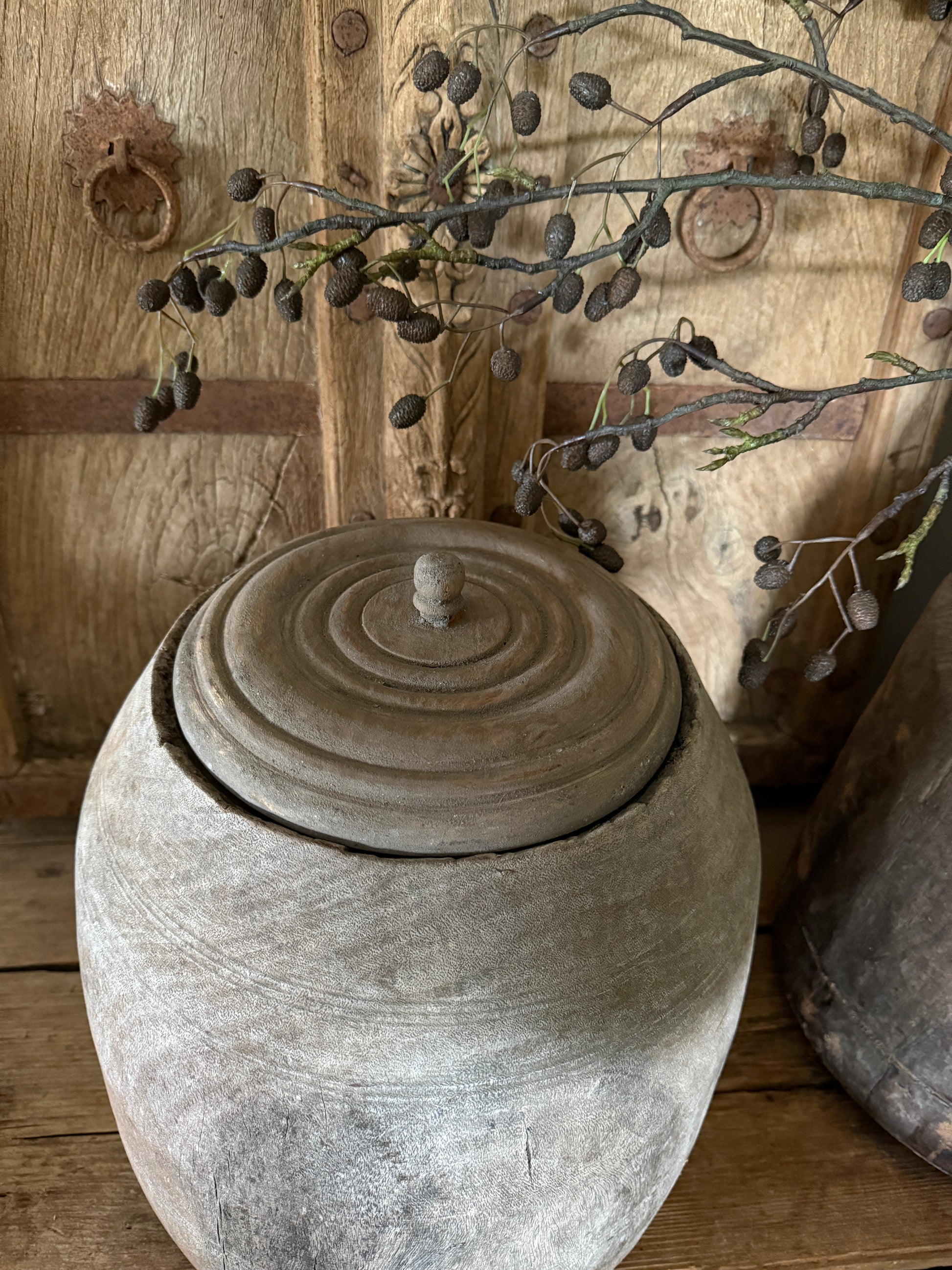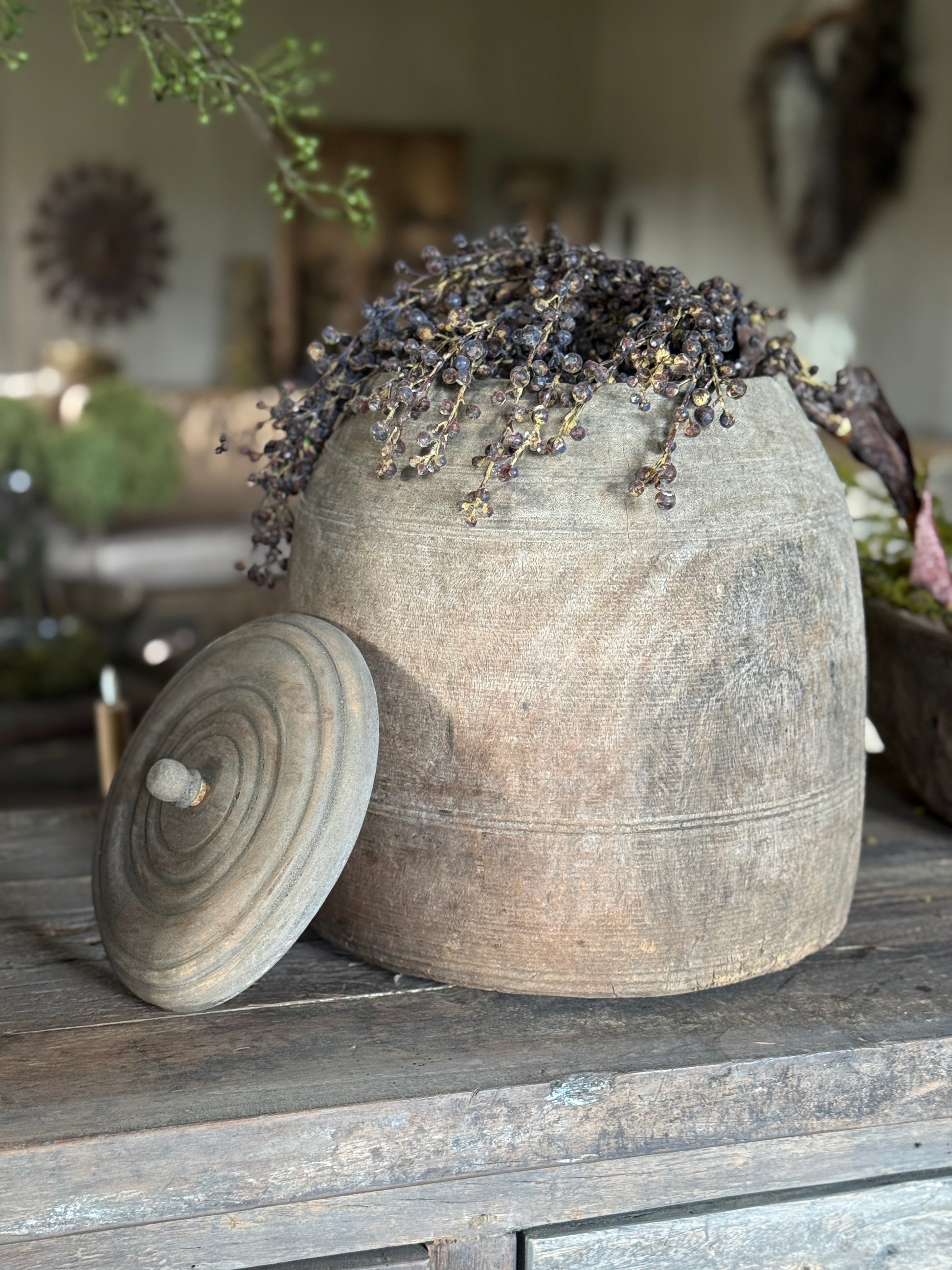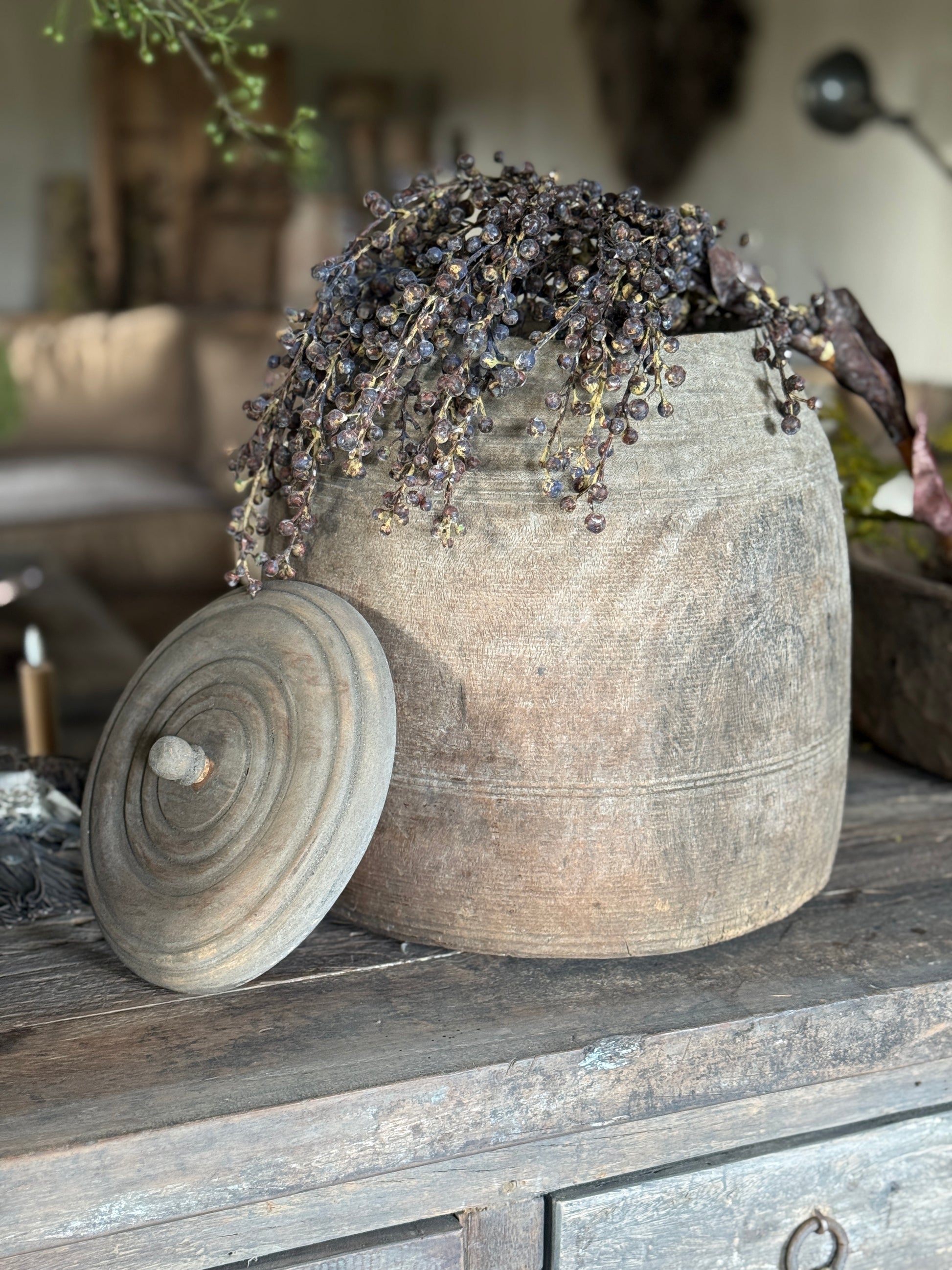 Ein einzigartiges und charaktervolles Stück mit rustikalem Charme. Dieser alte Holztopf aus Nepal verjüngt sich dezent und ist dank seiner Größe (H x D: 35 x 30 cm) ein echter Blickfang für Ihr Zuhause.