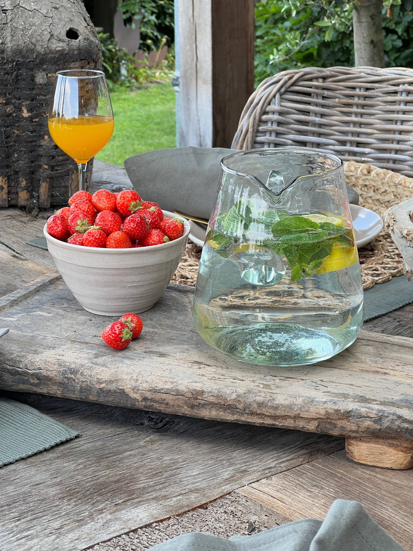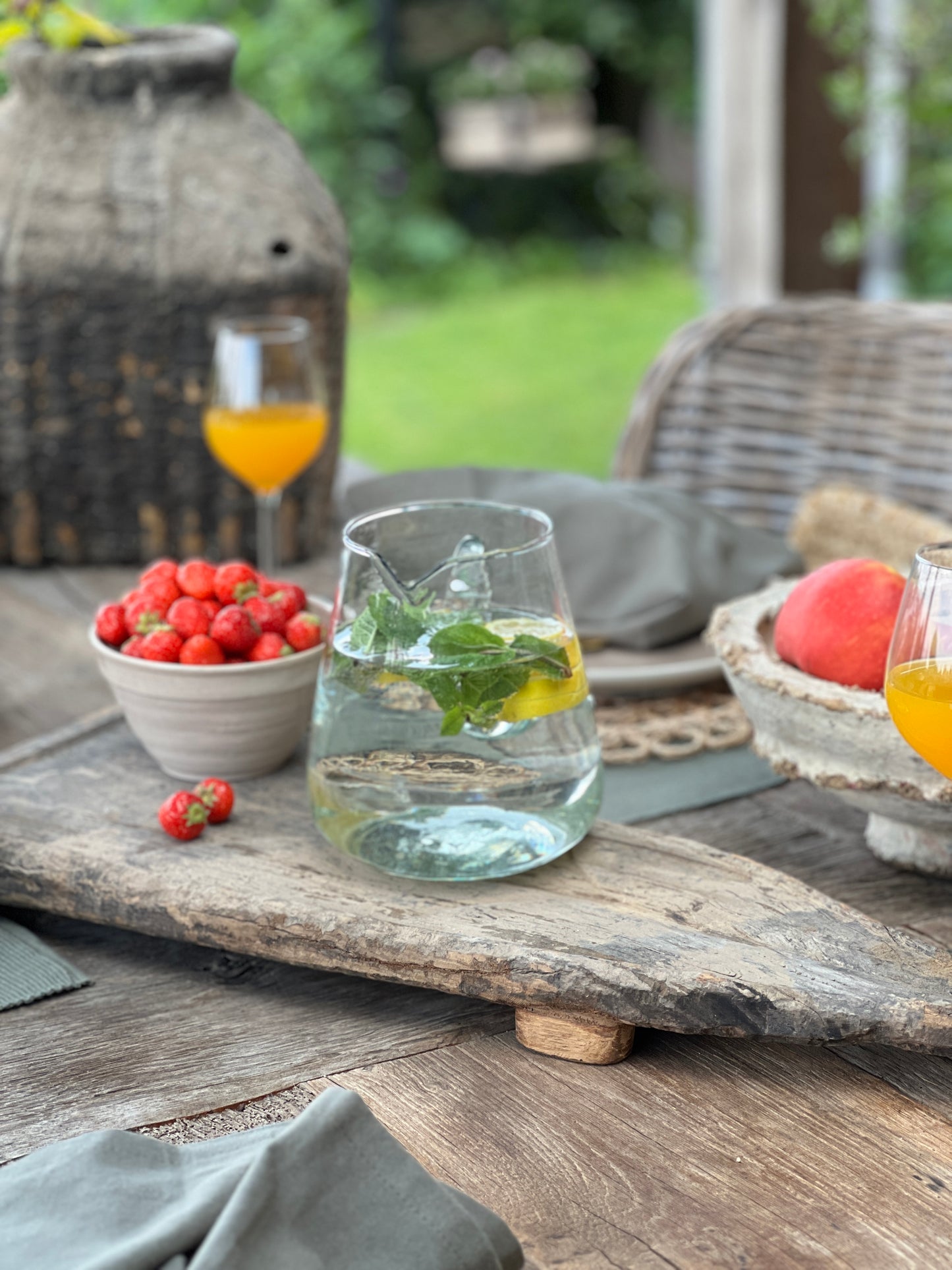 Seine besondere Form macht ihn zum Hingucker auf Ihrem Tisch. Hat unten 4 Beine.
