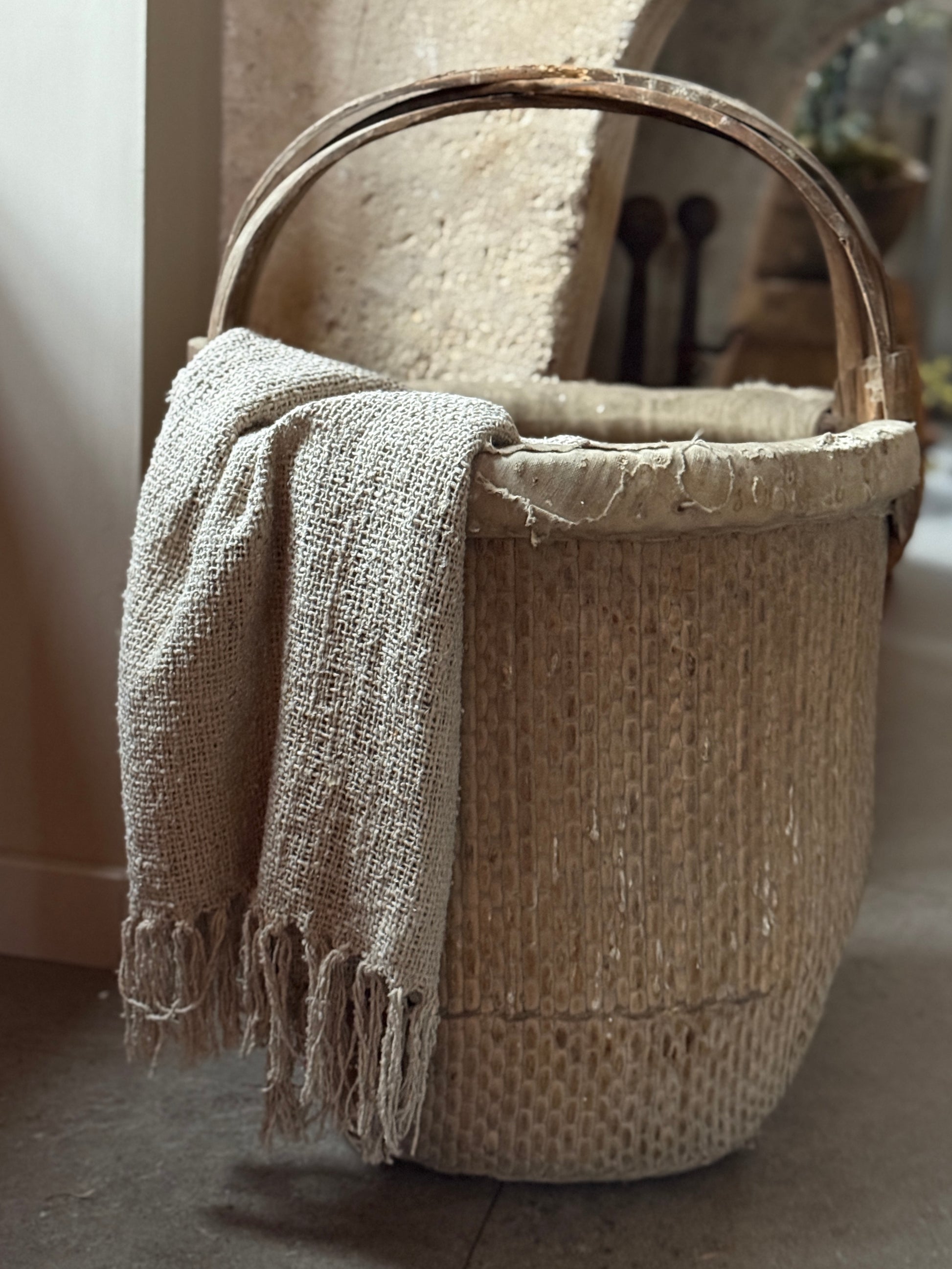 Mit großzügigen Abmessungen von 60 cm Höhe und 38 cm Durchmesser ist der Korb nicht nur ein schönes Dekorationsobjekt, sondern auch praktisch zur Aufbewahrung von Decken, Zeitschriften oder anderen Wohnaccessoires.