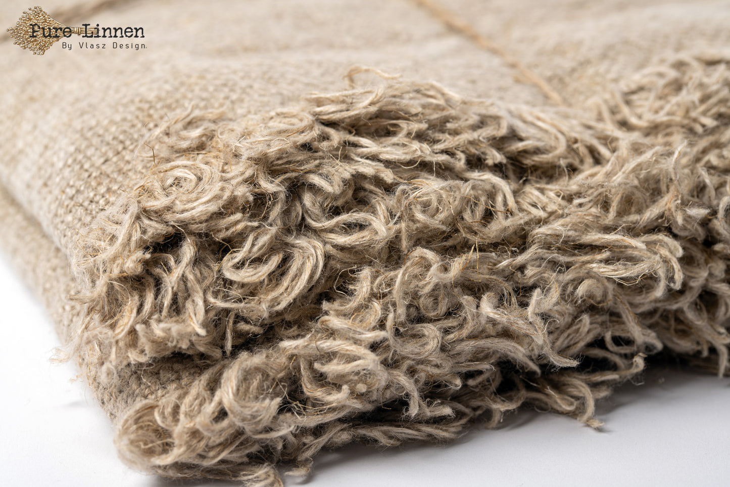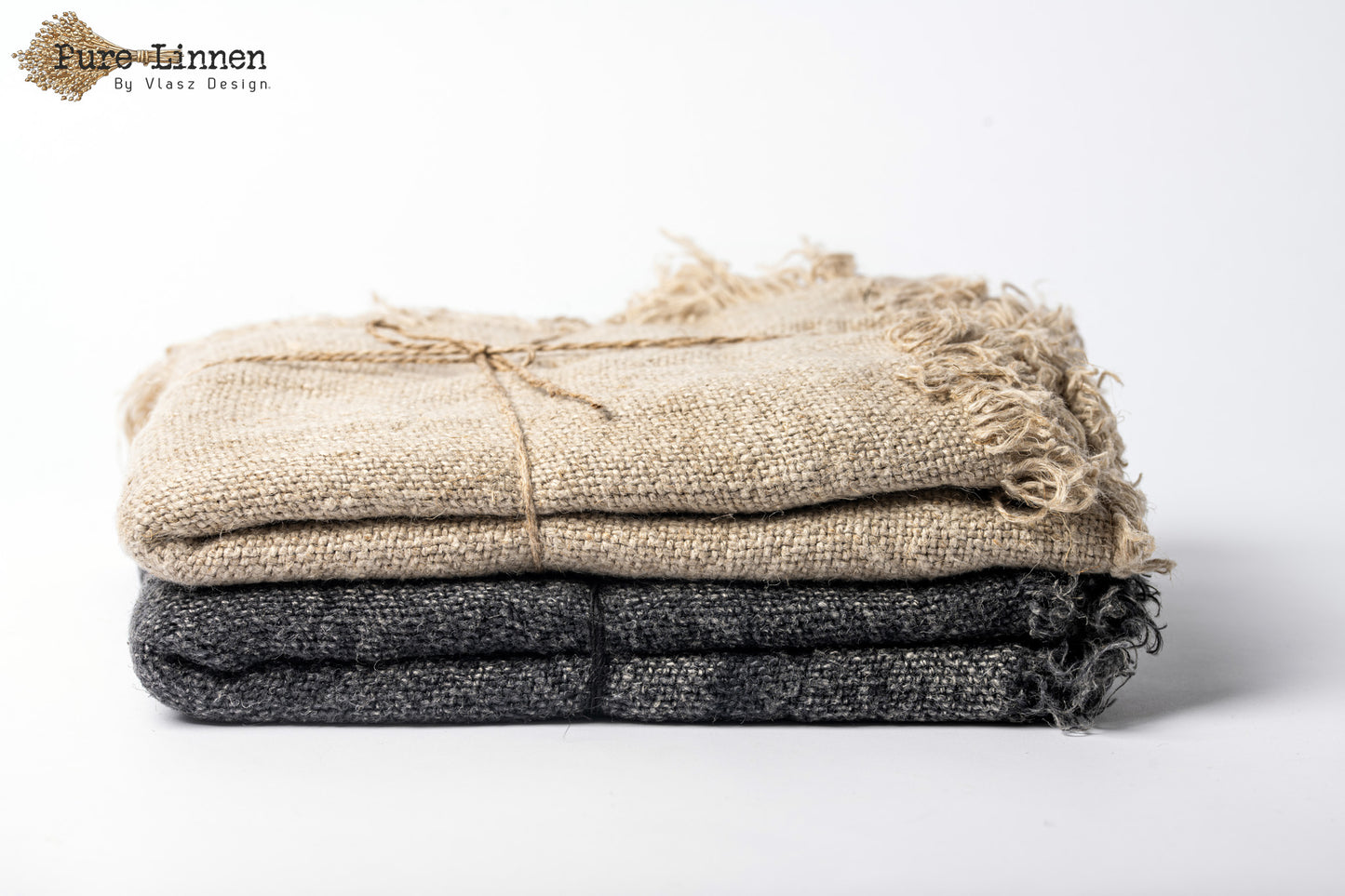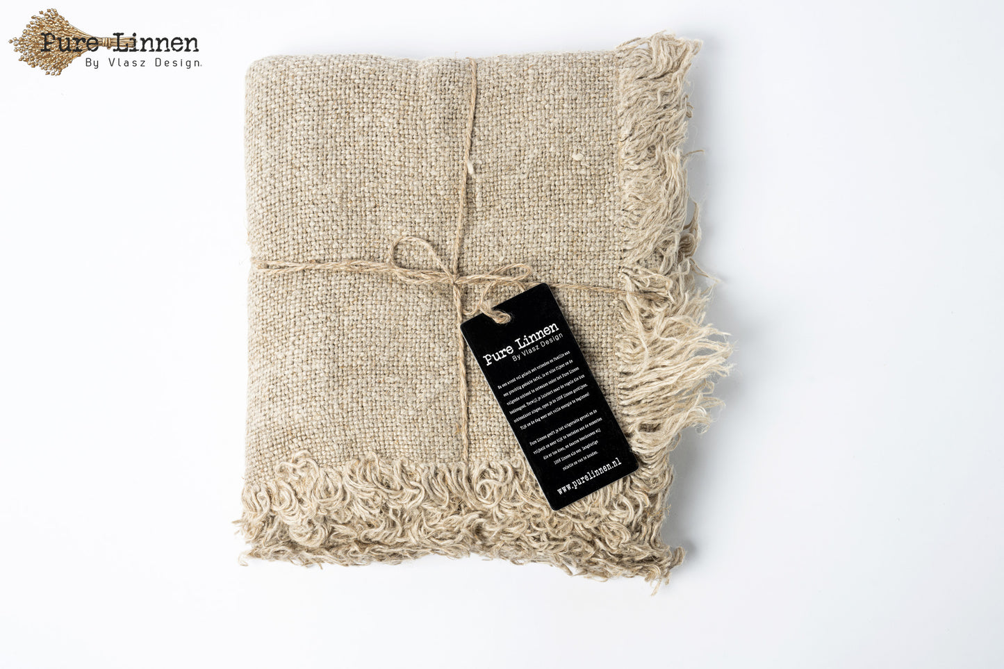 Aufgrund der speziellen Webmethode sind hier und da kleine Unebenheiten im Leinen vorhanden, die dem Produkt ein einzigartiges, abgenutztes Aussehen verleihen.