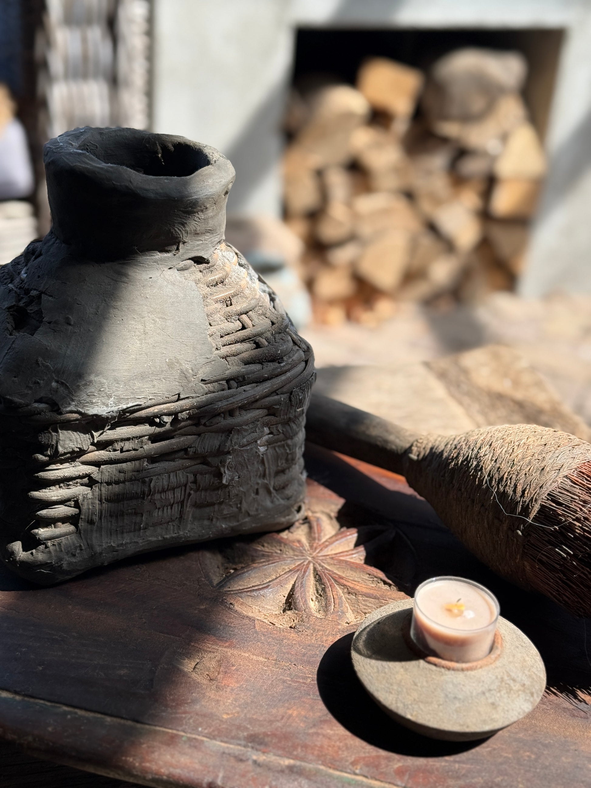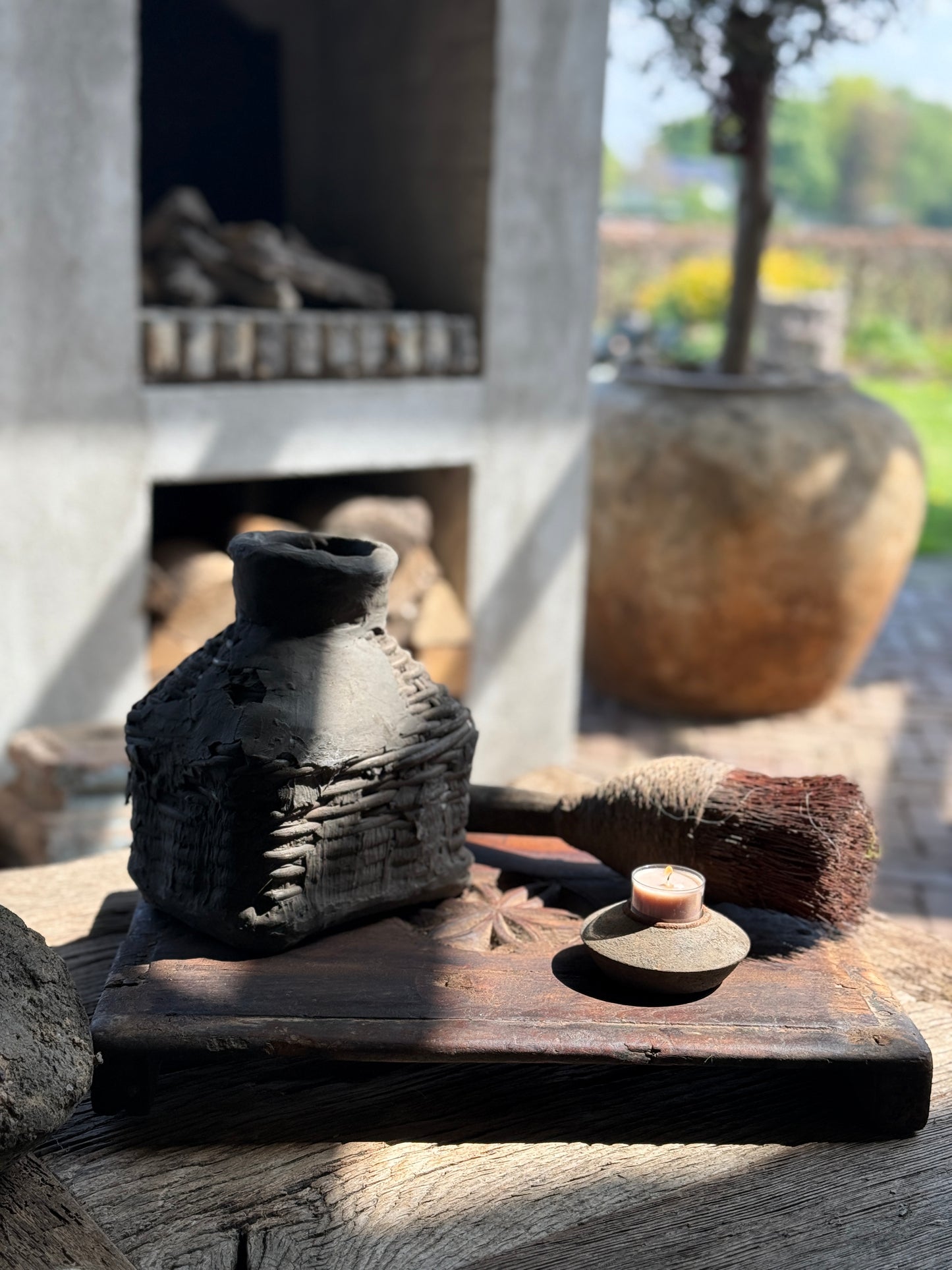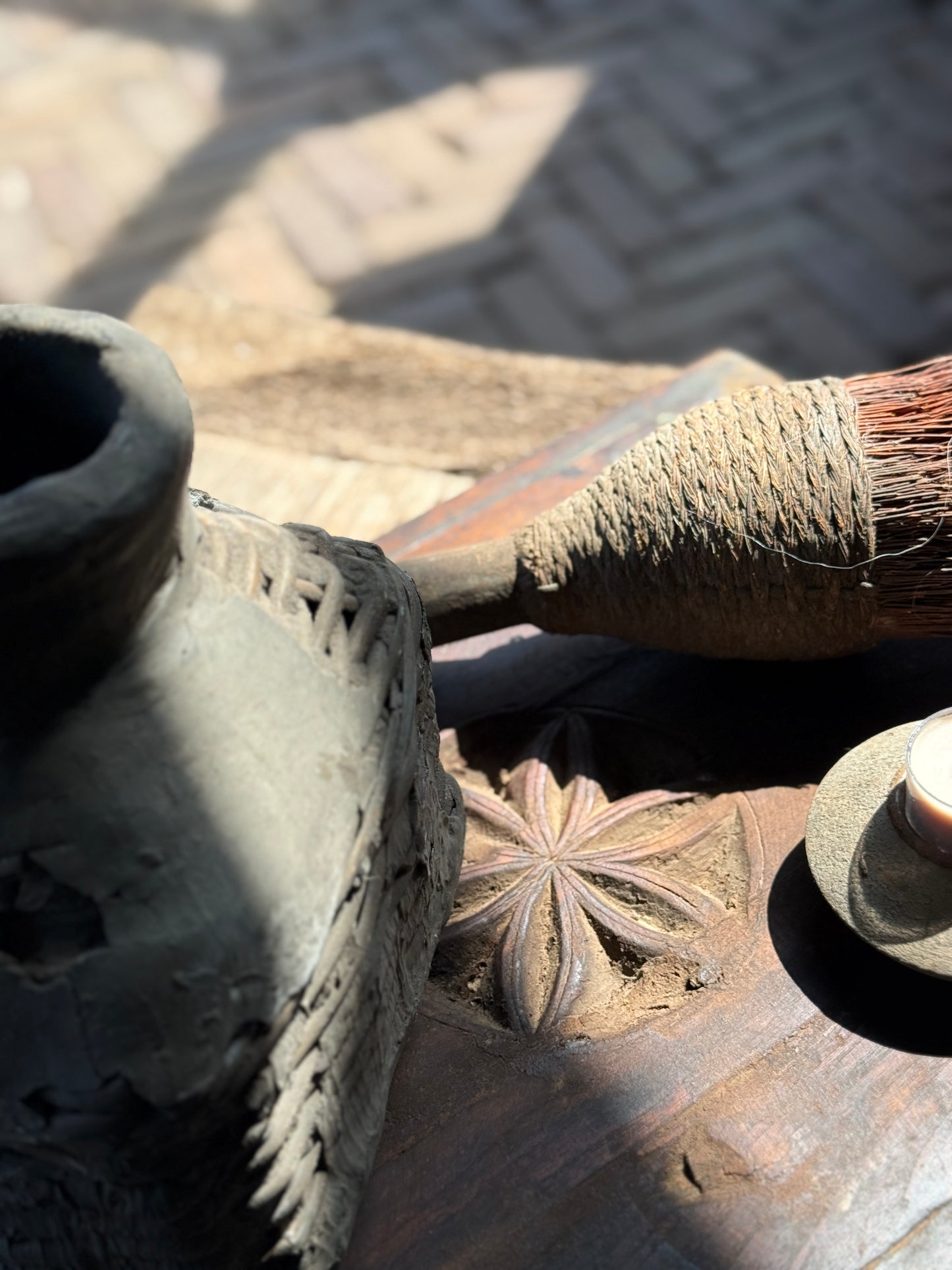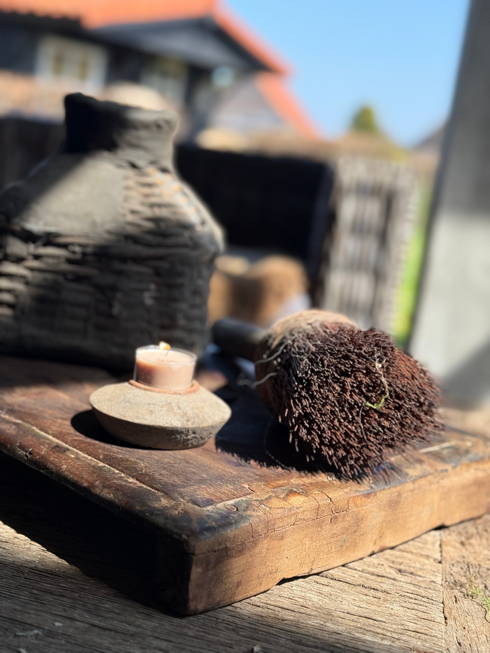 Dieses besondere alte Holzbajonett ist ein echter Hingucker in einem ländlichen Interieur. In die Mitte des verwitterten Holzes ist ein wunderschönes Blumenmotiv geschnitzt, das diesem Bajonett zusätzlichen Charakter und Charme verleiht. Durch seine großzügige Größe eignet er sich perfekt für die stilvolle Präsentation von Dekoartikeln wie Kerzen, Geschirr oder Wohnaccessoires. Die Kombination aus robustem Holz und raffinierten Schnitzereien macht dieses Stück zu einem Unikat mit warmer, authentischer Ausstrahlung.
