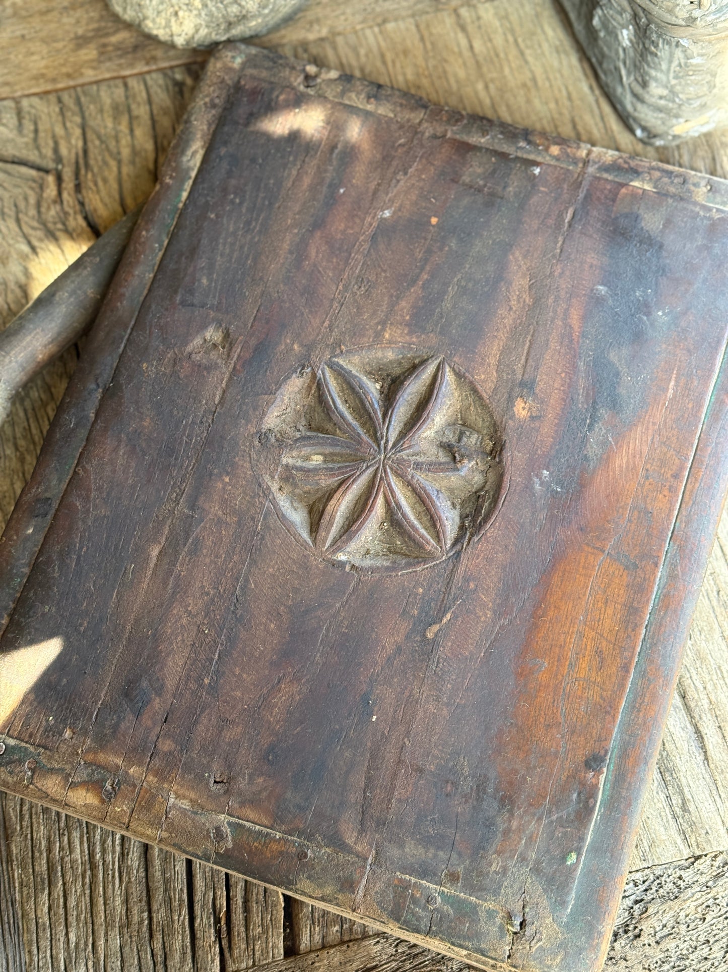 Altes Holzbajot mit Blumenholzschnitzerei – 43x35x5 cm