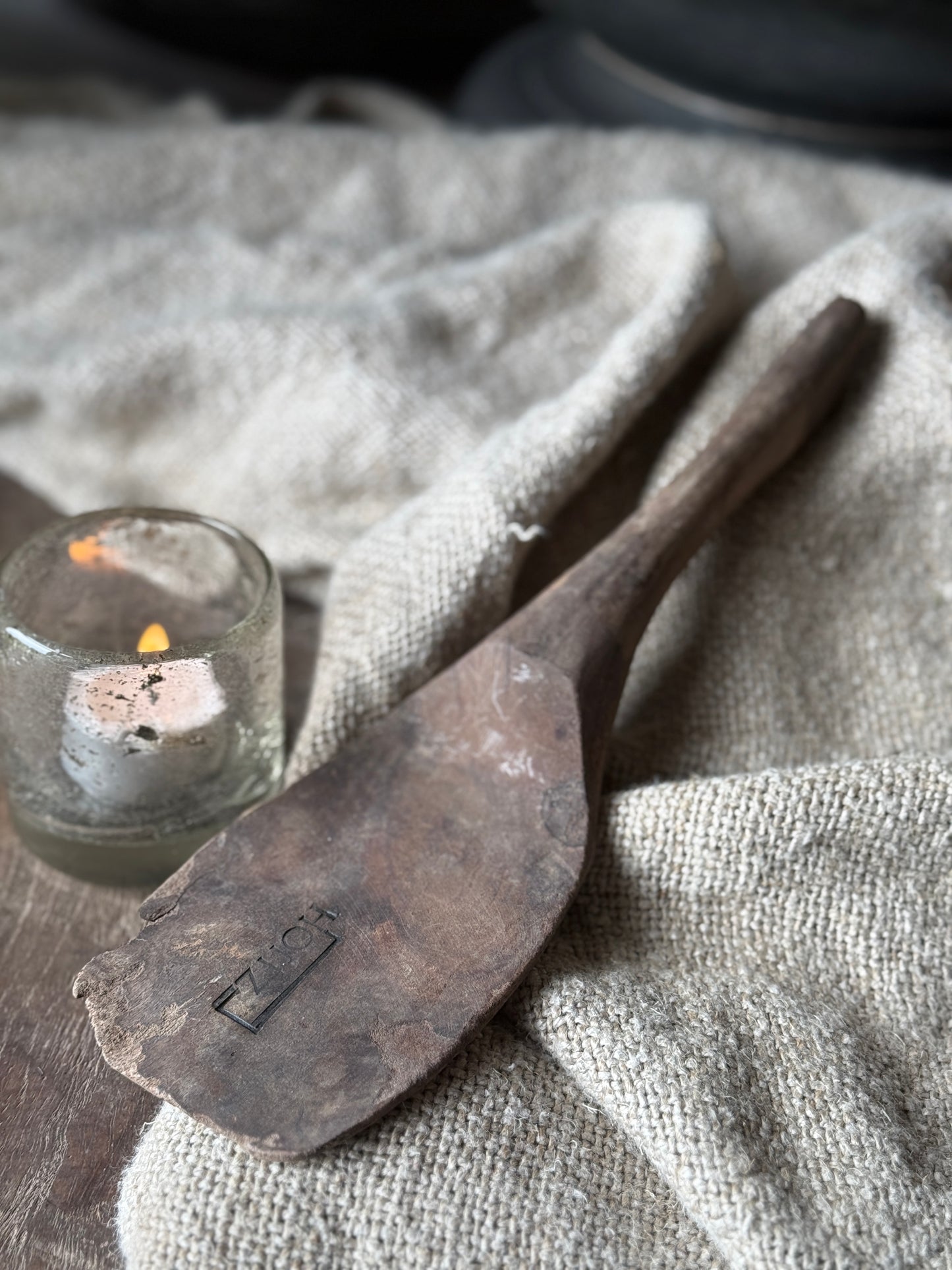 Dieser alte Holzspatel der Marke Hoffz ist ein stilvolles Dekorationsobjekt für die Landhausküche. Mit seinem verwitterten Aussehen und der robusten Verarbeitung strahlt es Charakter und Schlichtheit aus. Wunderschön zum Platzieren auf einem Regal, zum Kombinieren mit anderen Küchenutensilien aus Holz oder zum Aufstellen aufrecht in einem Topf in der Nähe des Herdes.