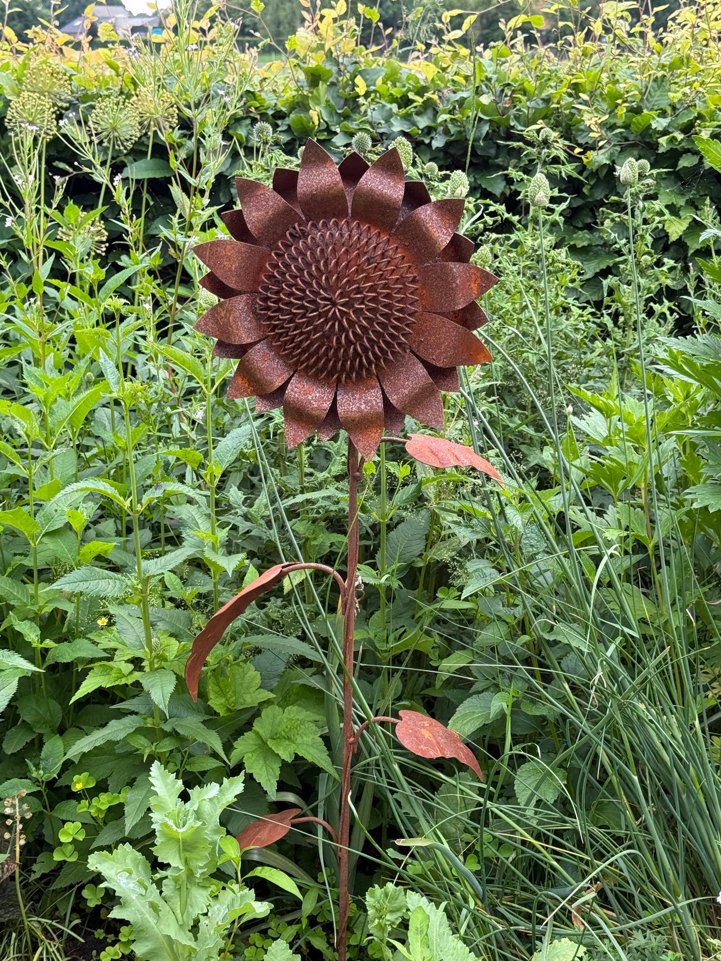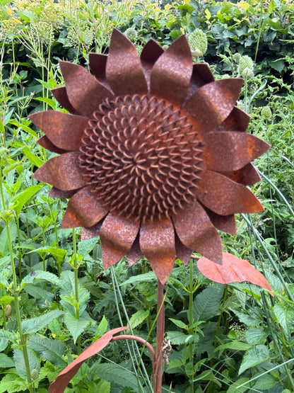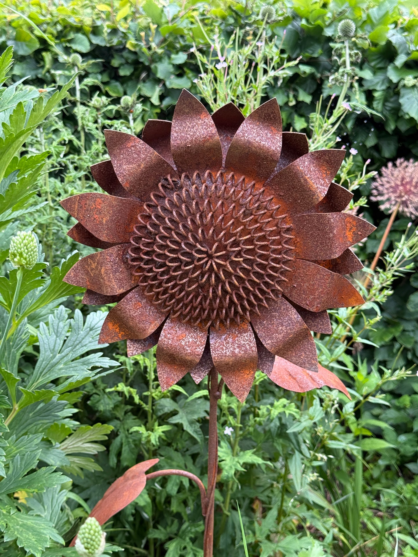 Rusted Metal Sunflower on Stick – Garden Decoration