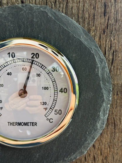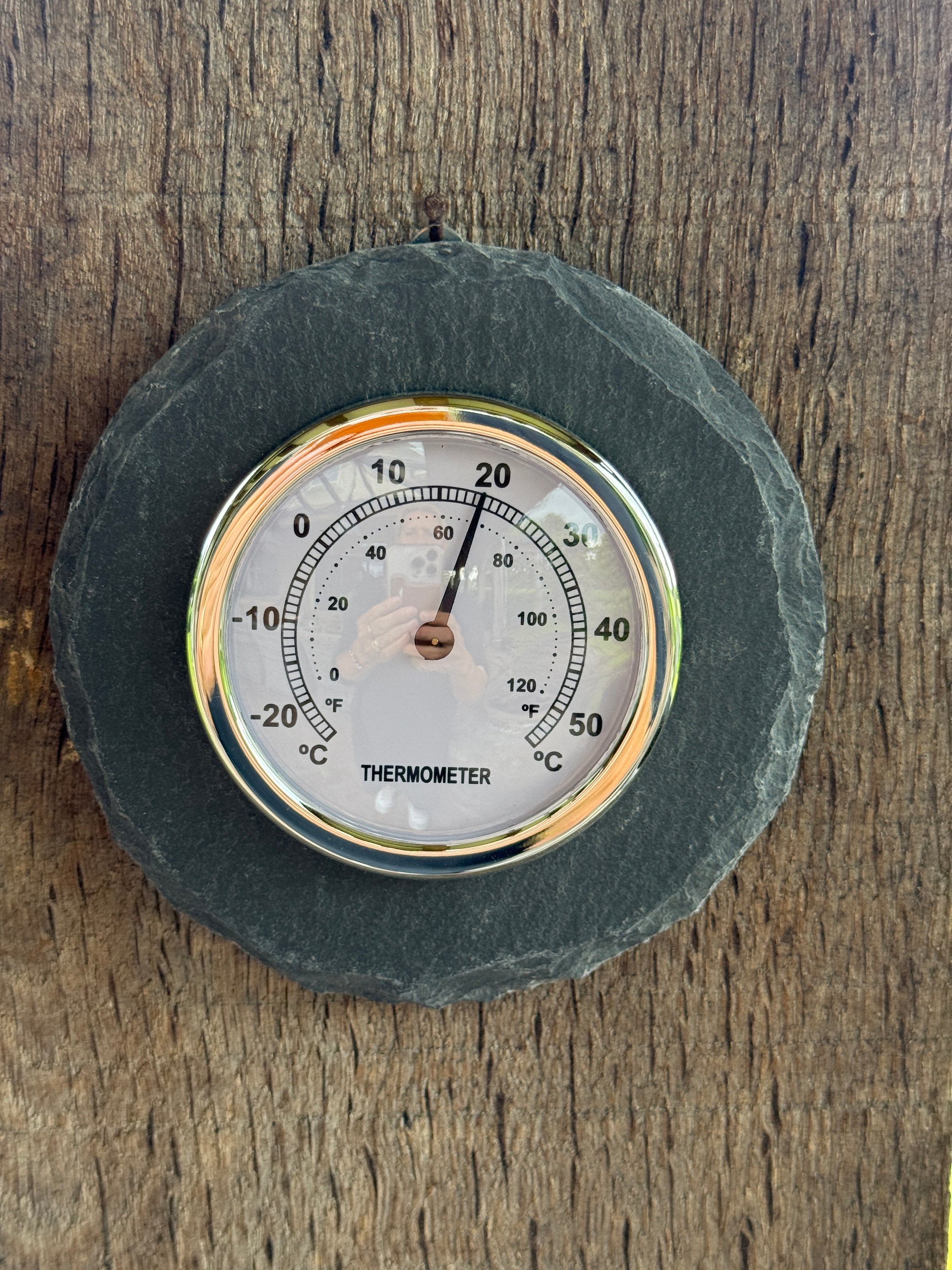This slate thermometer combines functionality with a natural look. In the middle is a clear thermometer , surrounded by a robust edge of real slate. The natural structure and color of the stone provide a timeless, rustic look that fits perfectly in any garden, on the balcony or on a garden shed.
