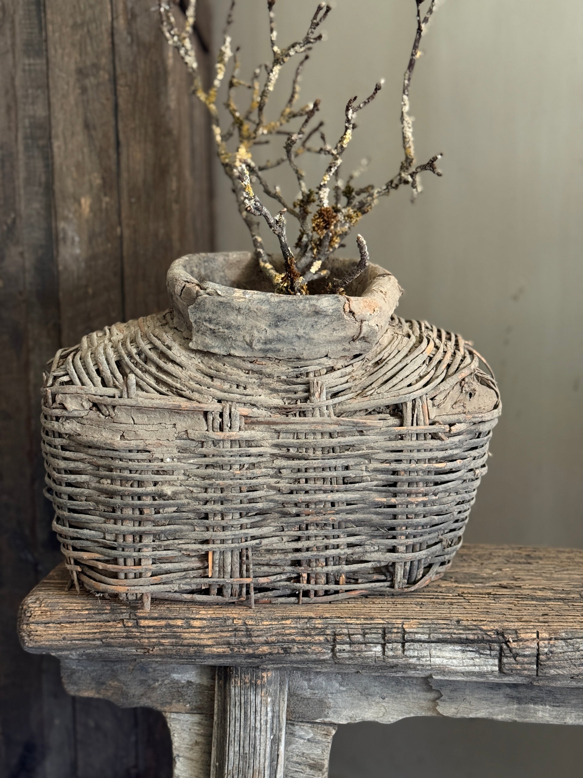 Unique Old Clay Basket – Authentic Eye-catcher for Rural Living