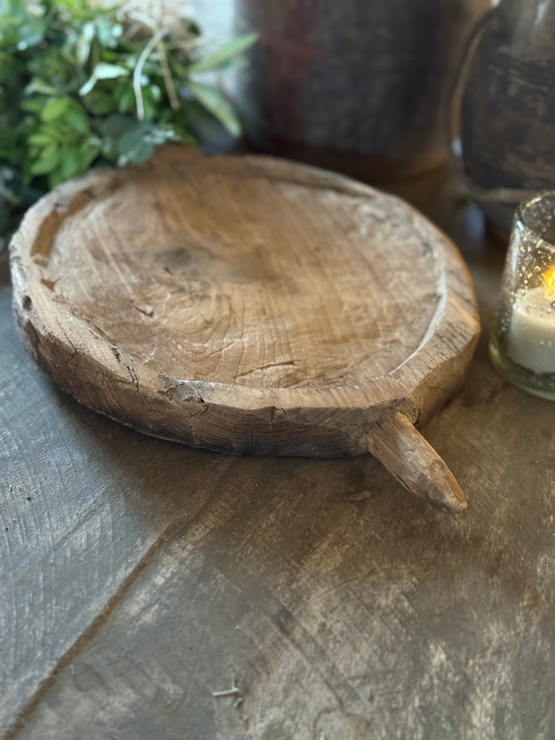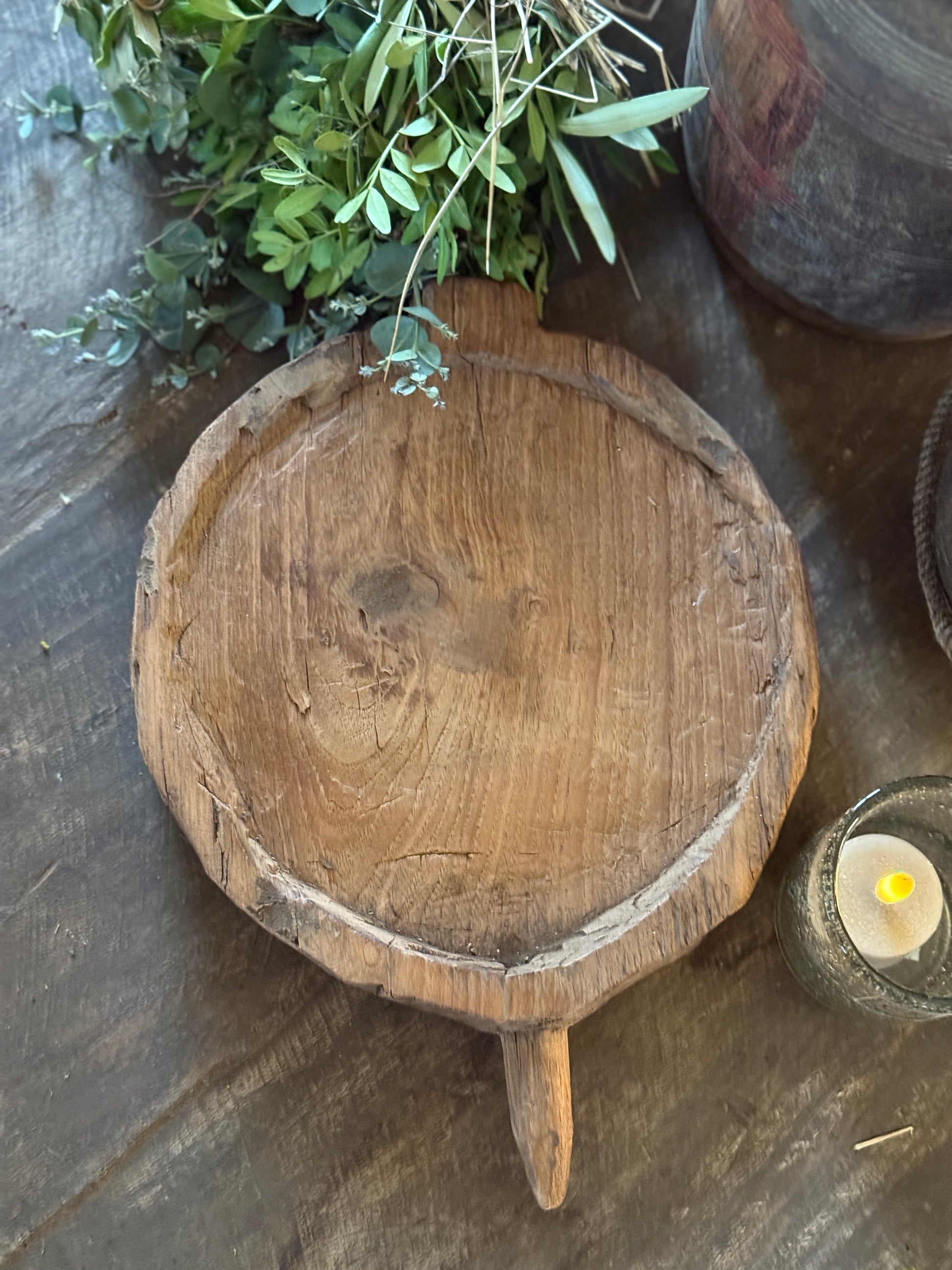 This old chapati board from India is a beautiful piece with character and history. Originally used in preparing traditional Indian chapatis, this item has now been given a second life as a stylish home decoration .