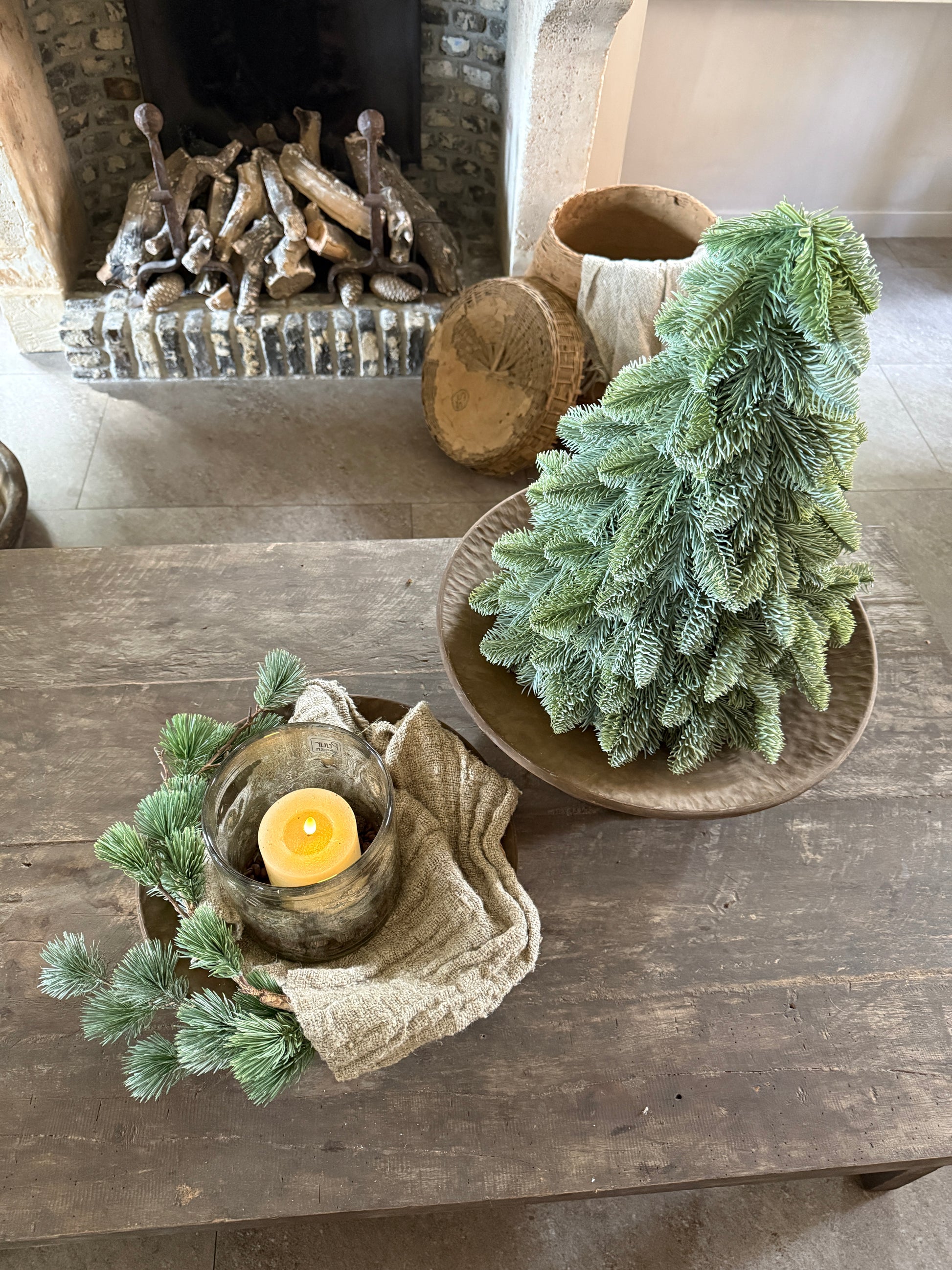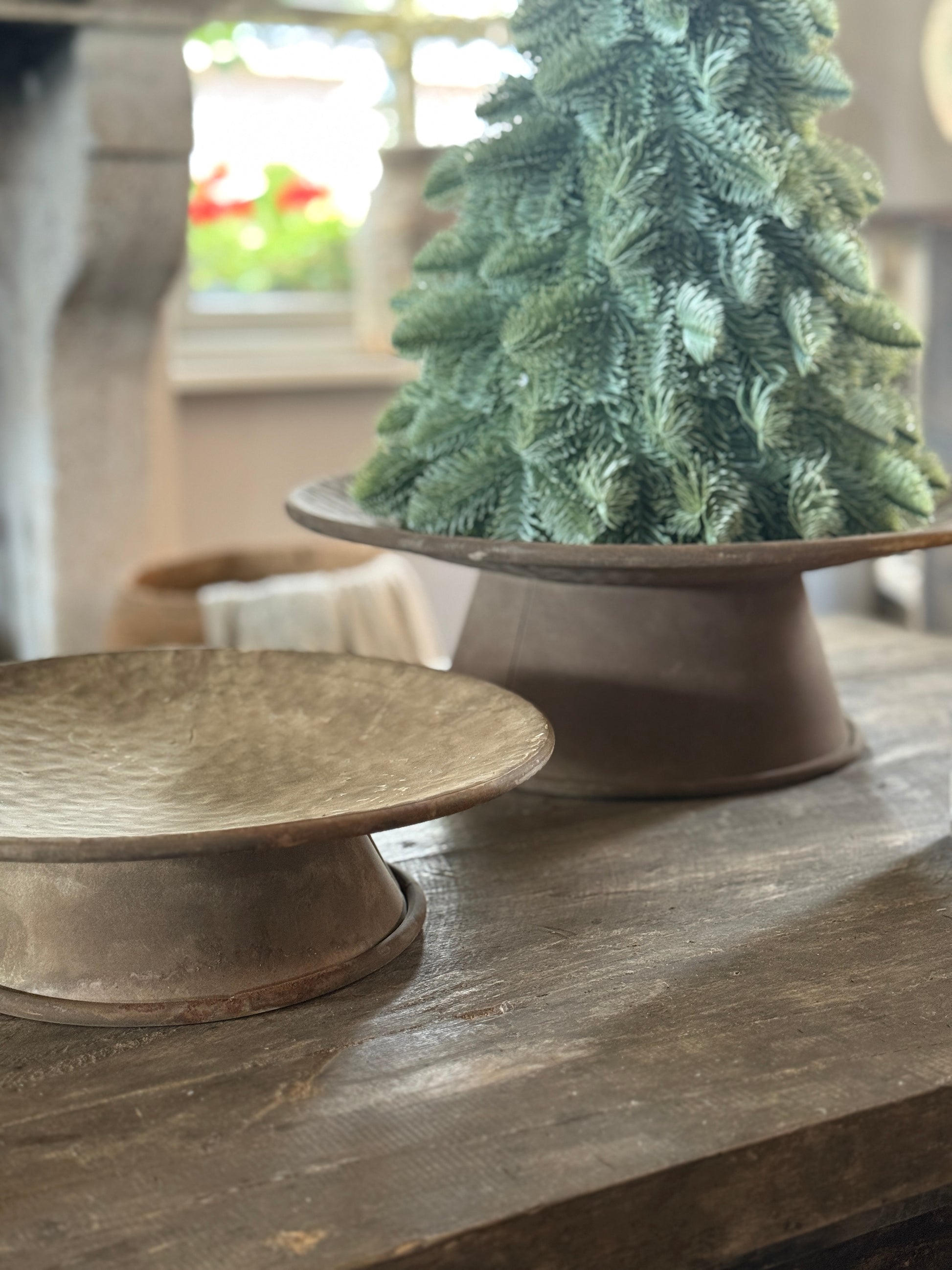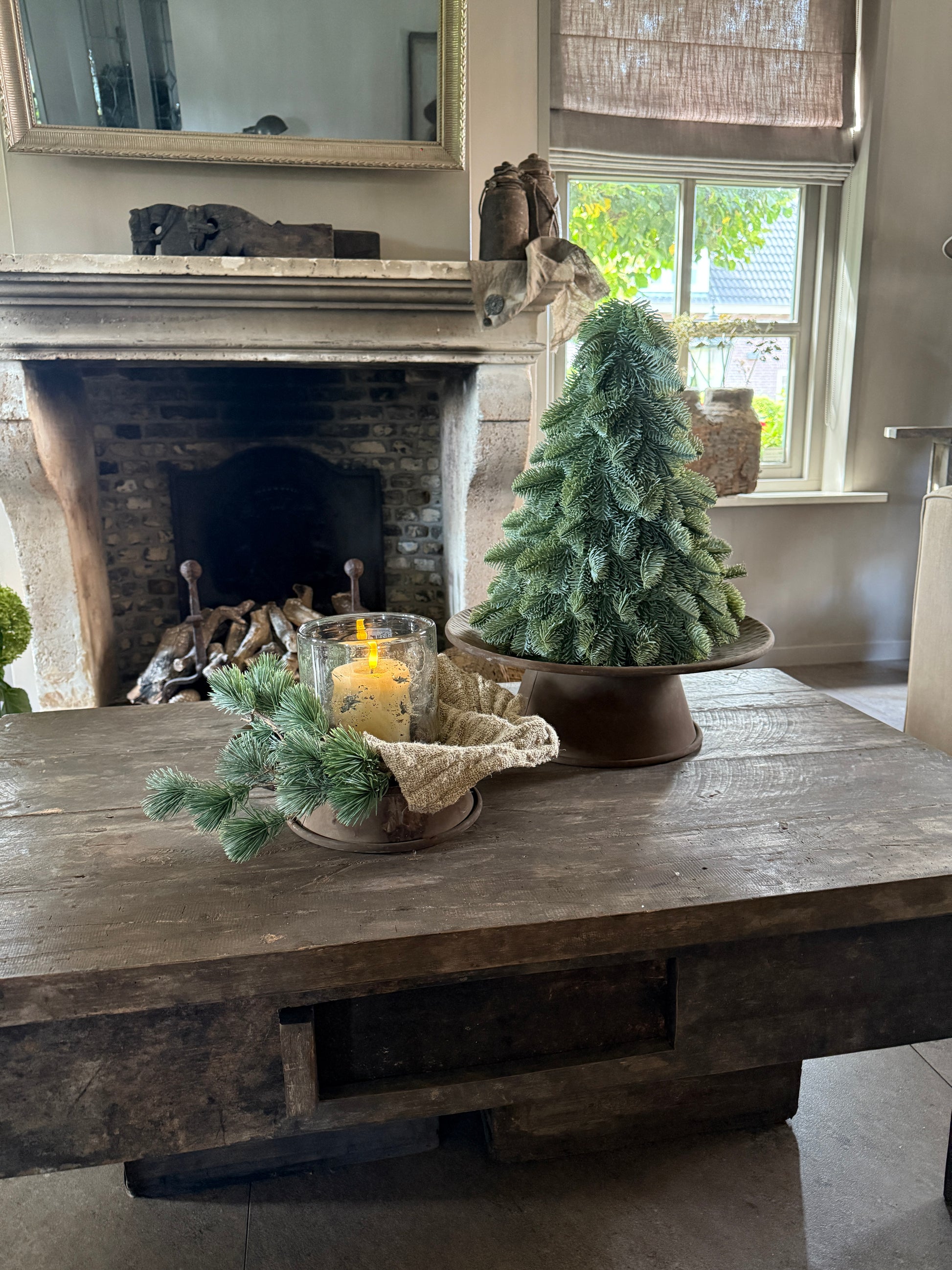 This rustic pedestal platter is a versatile and stylish foundation for your interior. The bowl has a subtle curve, making it perfect for displaying atmospheric decorations. Think of a lantern with some moss around it, a few decorative moss balls, or a small nobelis tree – you can instantly create a warm, rustic ambiance on your table, sideboard, or windowsill. The elevated base creates an elegant look and allows your decorations to truly shine.