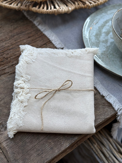 Bring warmth and atmosphere to the table with this rustic table runner, available in a soft grey-blue or neutral beige shade. The runner is made of 80% cotton and 20% viscose, and finished all around with a subtle frayed edge for a natural, casual look.