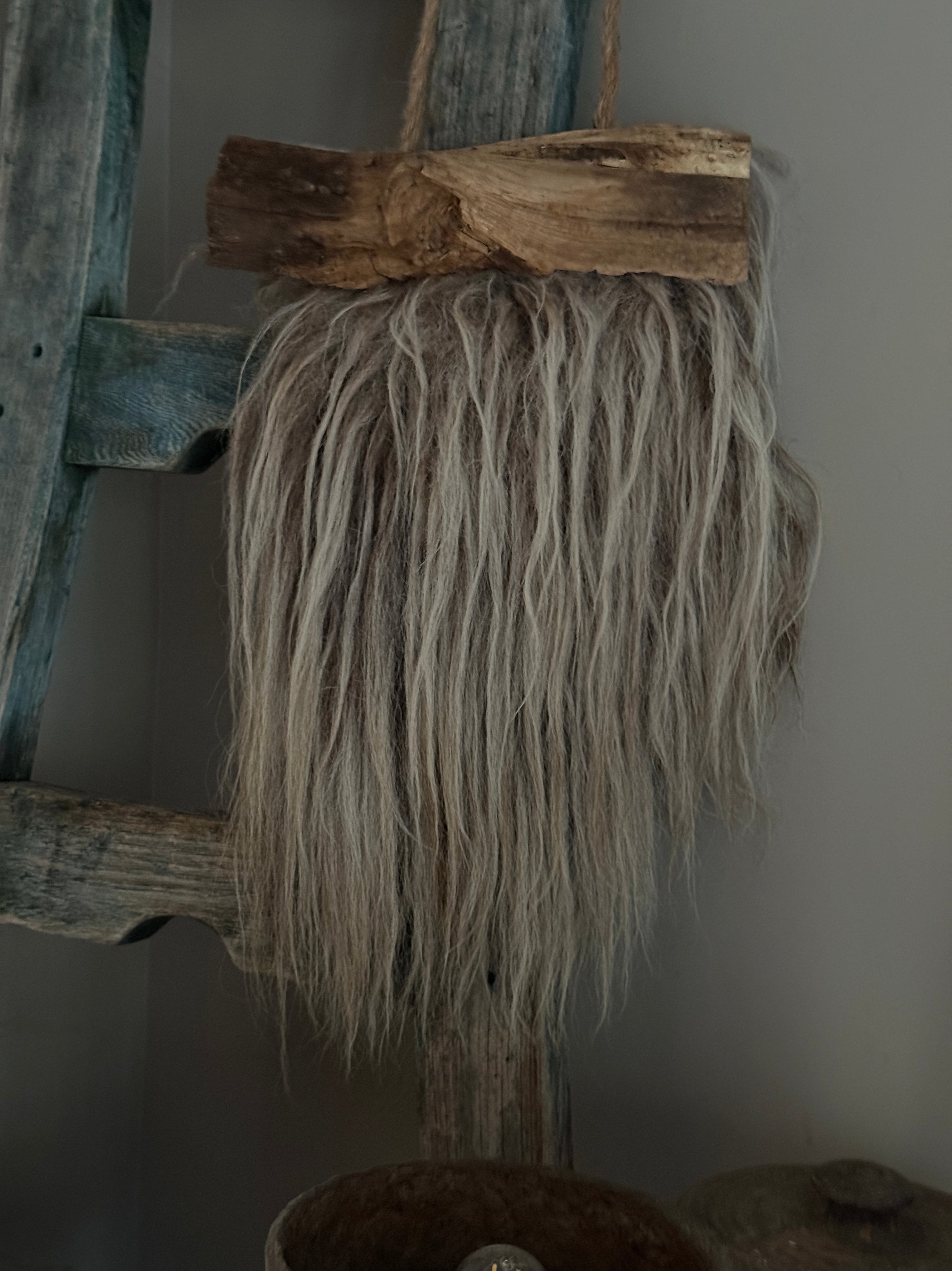 This mini wall collar is hand -felted from pure sheep's wool and has a robust, natural look. The mix of warm brown tones and the handcrafted character make this a unique and atmospheric statement piece for your interior. Its compact size allows it to fit effortlessly anywhere without being overwhelming.