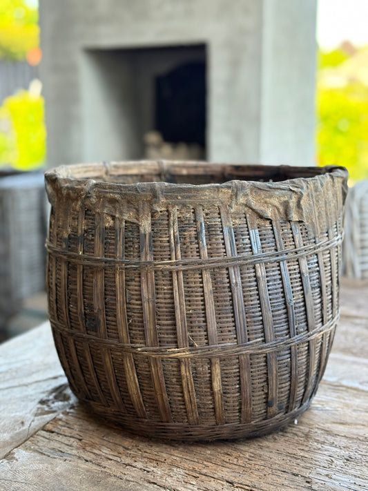 Old Chinese Picking Basket – Ø x H cm (incl. handle)
