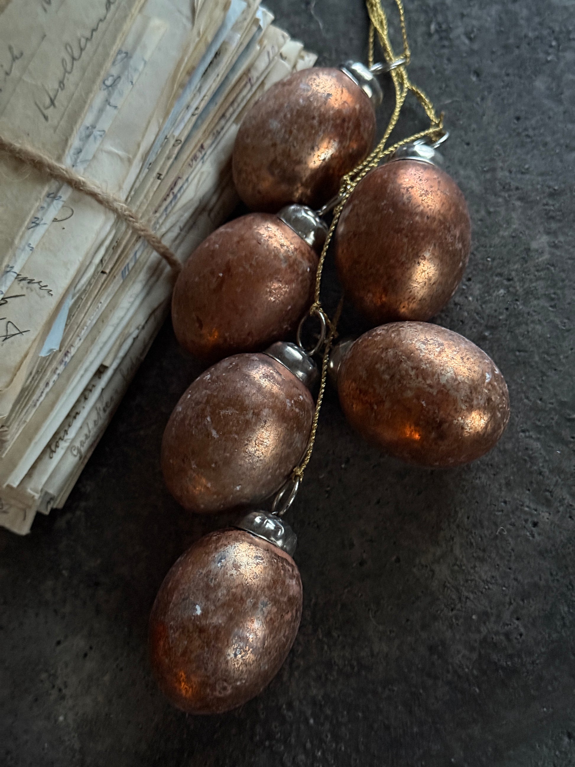 Add a luxurious and festive touch to your Easter decorations with these elegant copper-colored Easter eggs. This set consists of six dazzling eggs, each with a subtle sheen that creates a warm, refined look. The Easter eggs are attached to gold-colored strings, making them easy to hang from branches, wreaths, or other decorative elements in your home. Perfect for a stylish Easter table, an atmospheric Easter tree, or as a finishing touch to your interior.