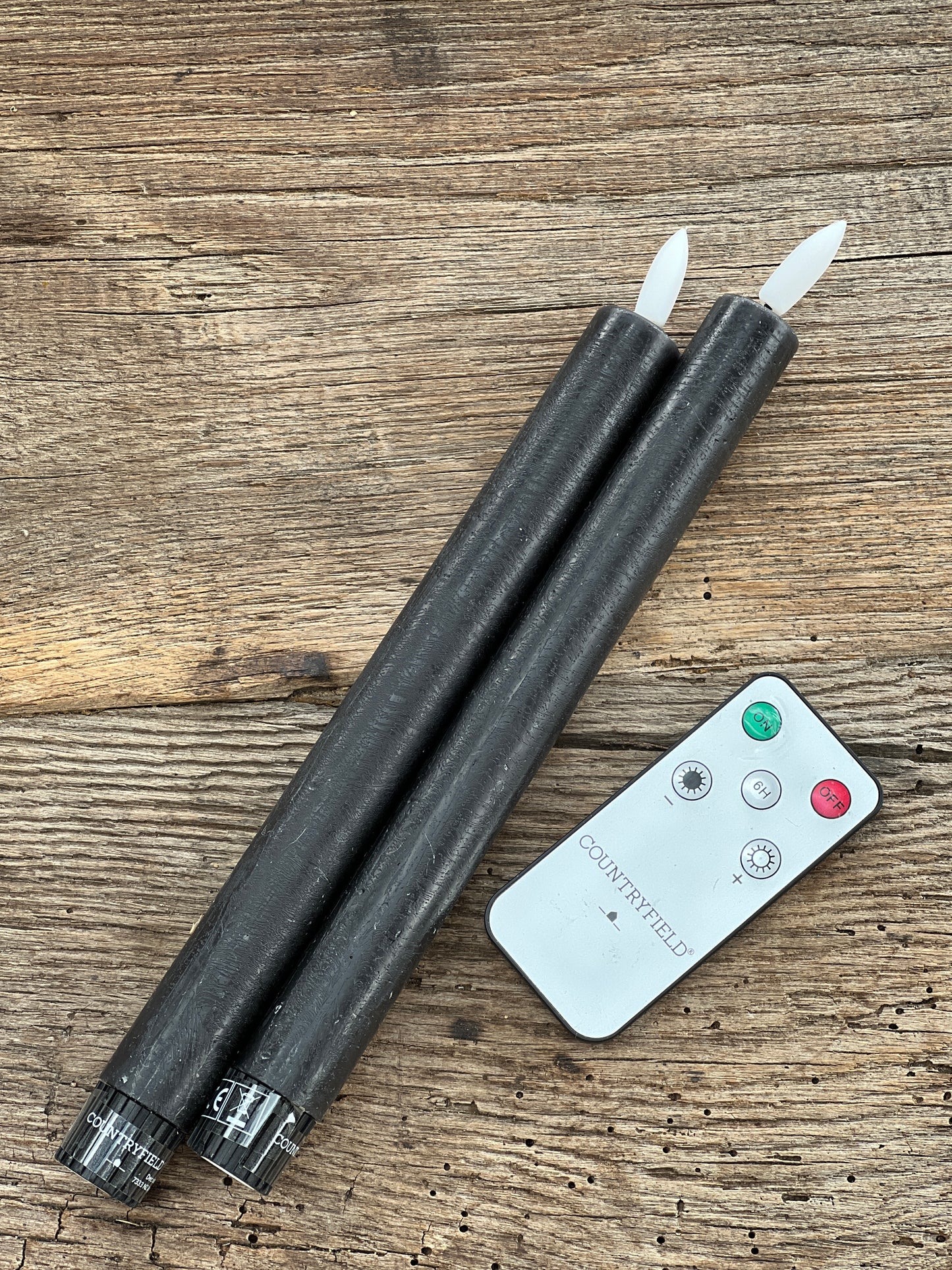 Countryfield 24 cm Black LED Dinner Candle. Set of 2, including remote control.