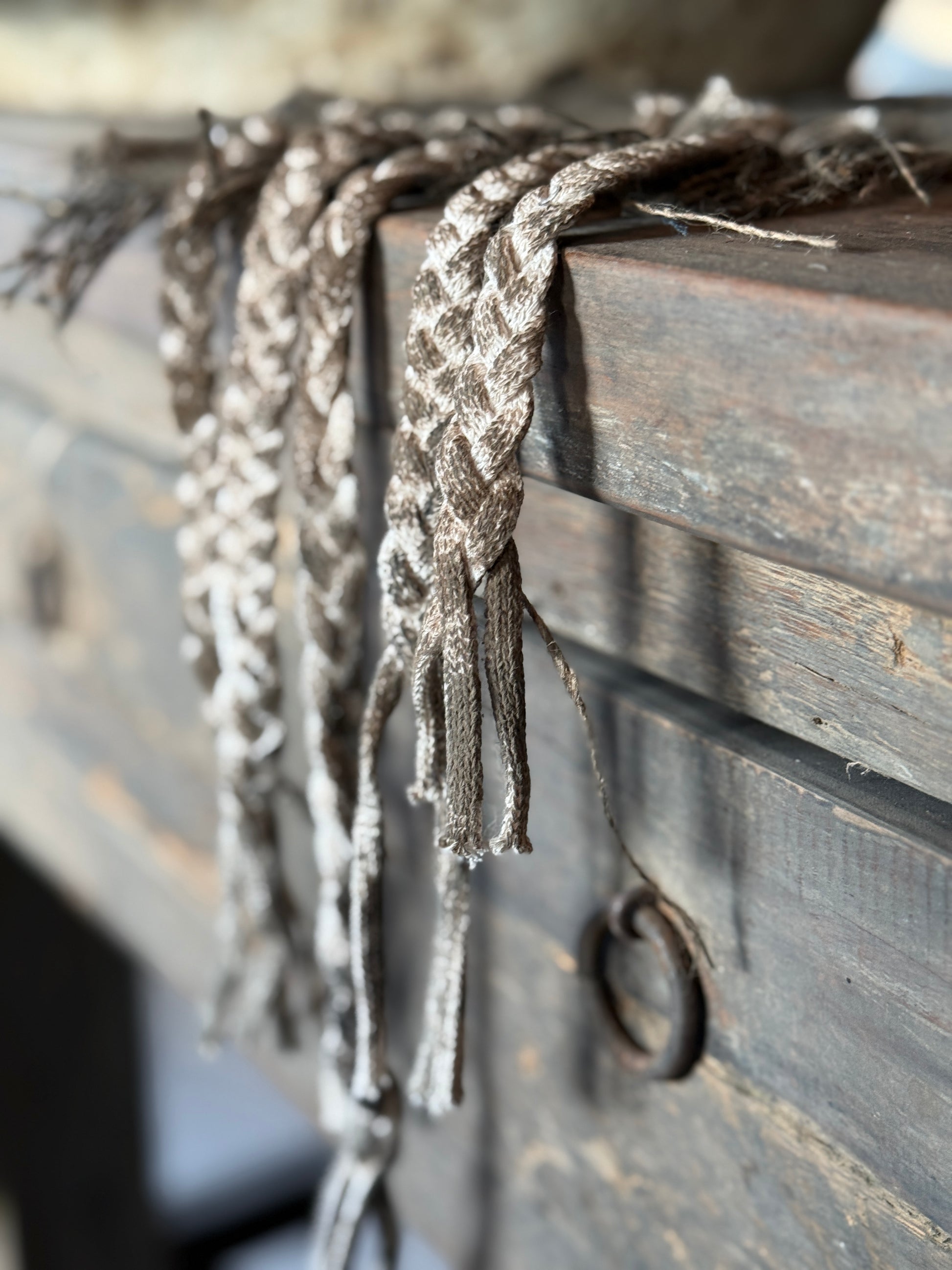 Material consists of kilim fabric, rope, ribbon, jute and lime paint.