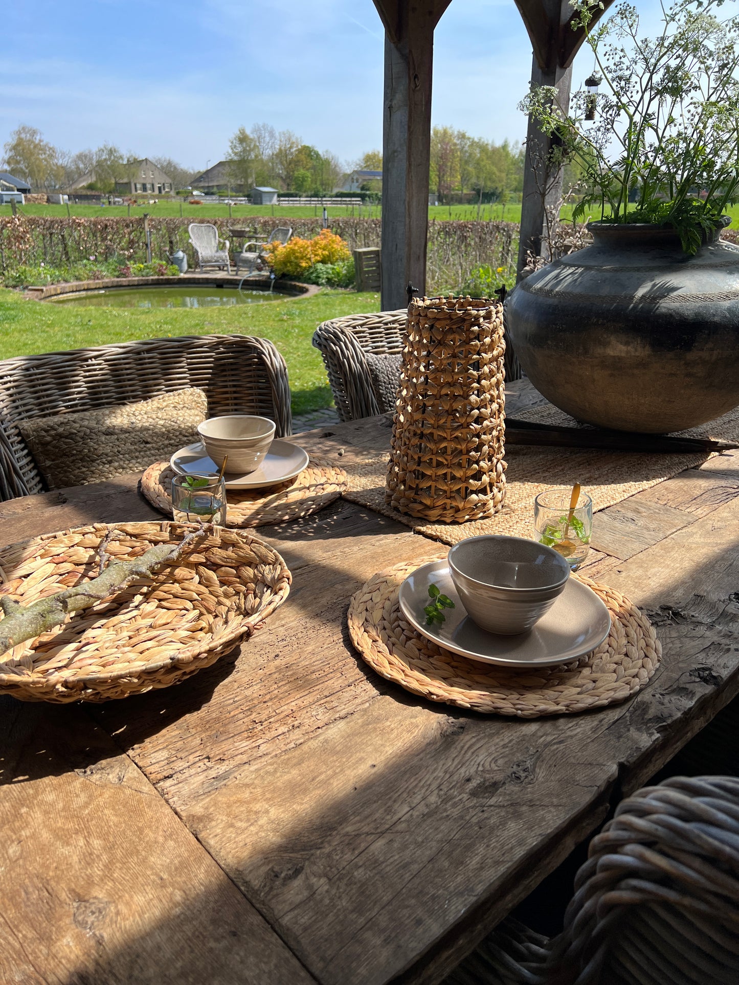 These rural placemats are made of banana leaf.
