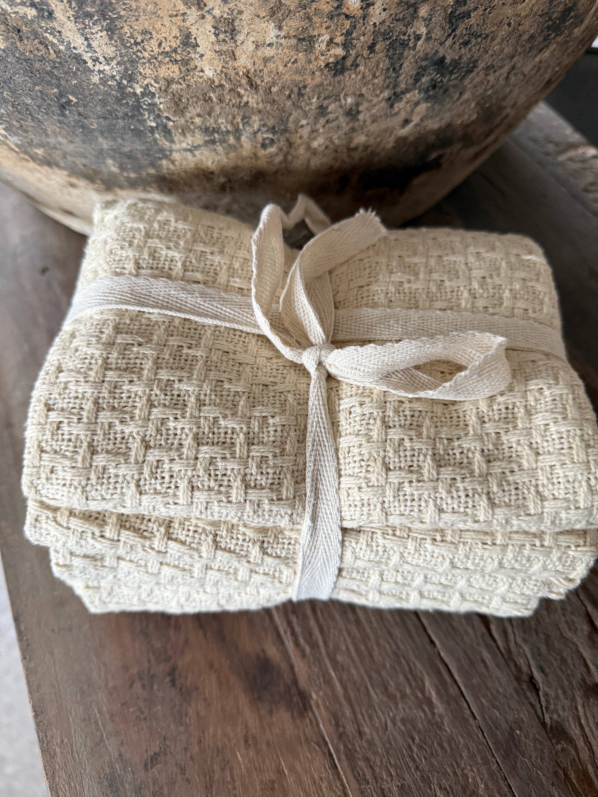 Geweven theedoeken – set van 3 stuks- warm wit