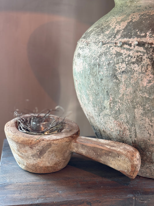 Sold outOld Wooden Mortar with Handle