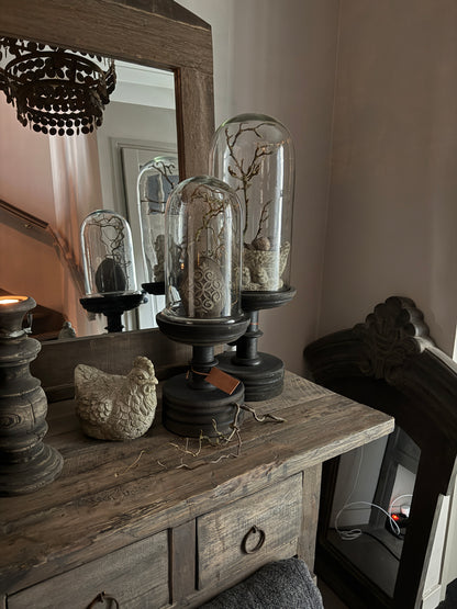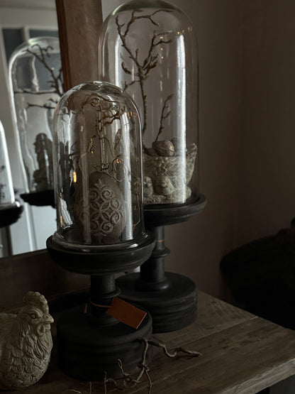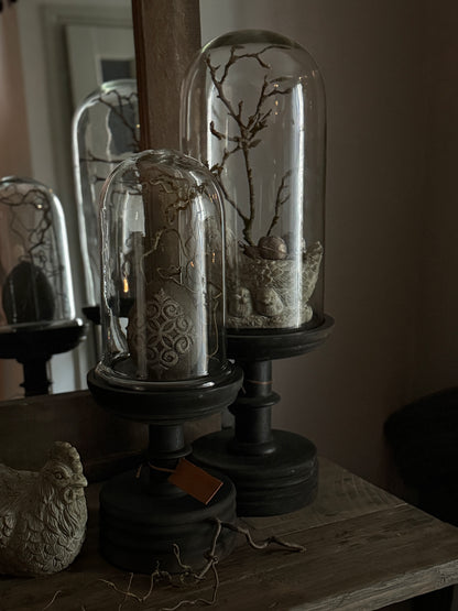 This elegant glass dome on a wooden base by Aura Peeperkorn is the perfect decoration to give any interior a subtle and natural look. Available in two sizes: