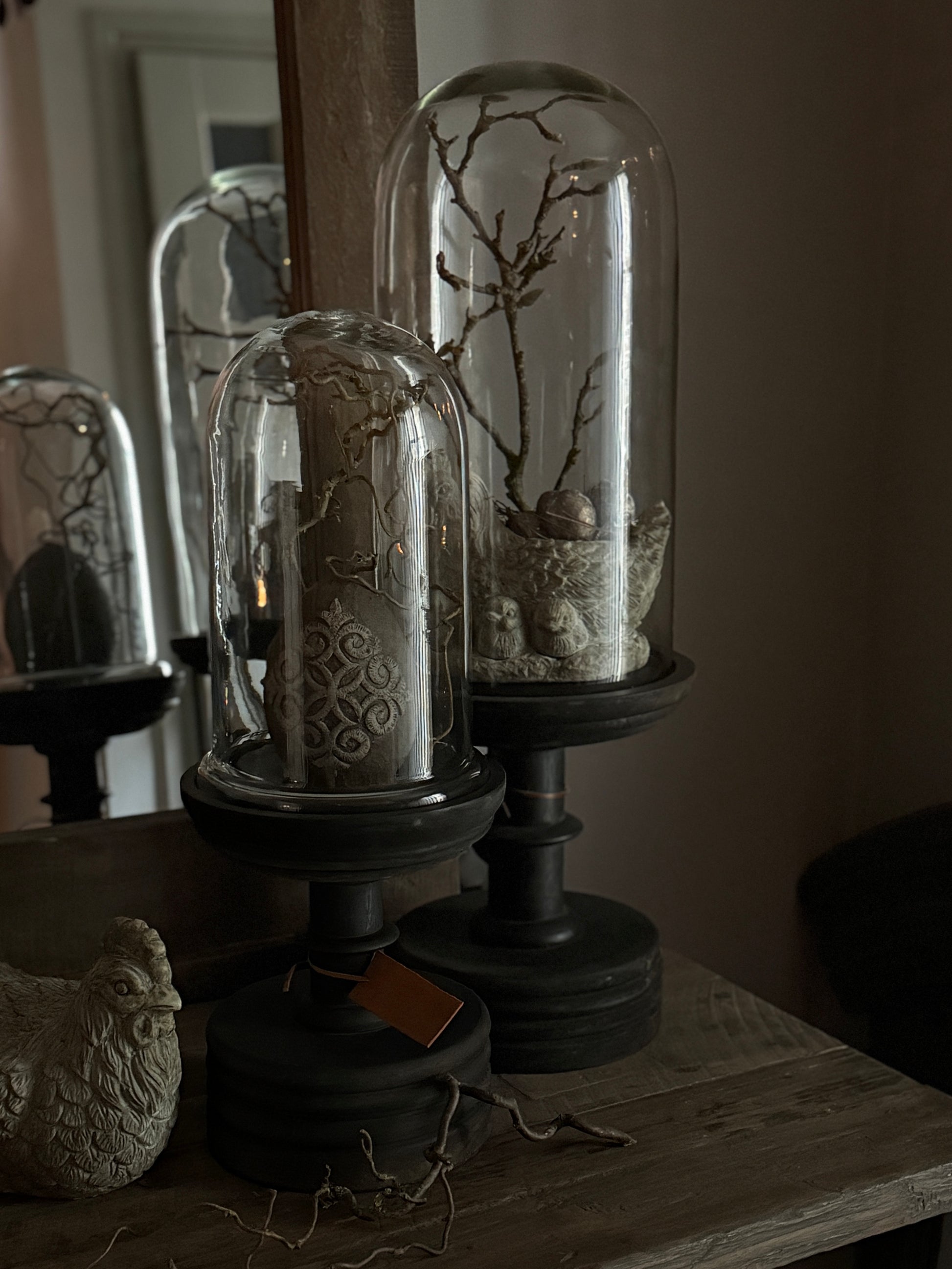 Combine the dome with matching ornaments from Aura Peeperkorn or use creative accessories such as jars, branches and other natural elements for an atmospheric styling. This versatile decoration adds a refined touch to living rooms, display cabinets and shop windows.