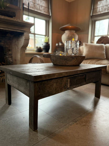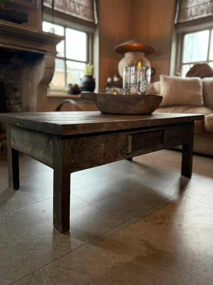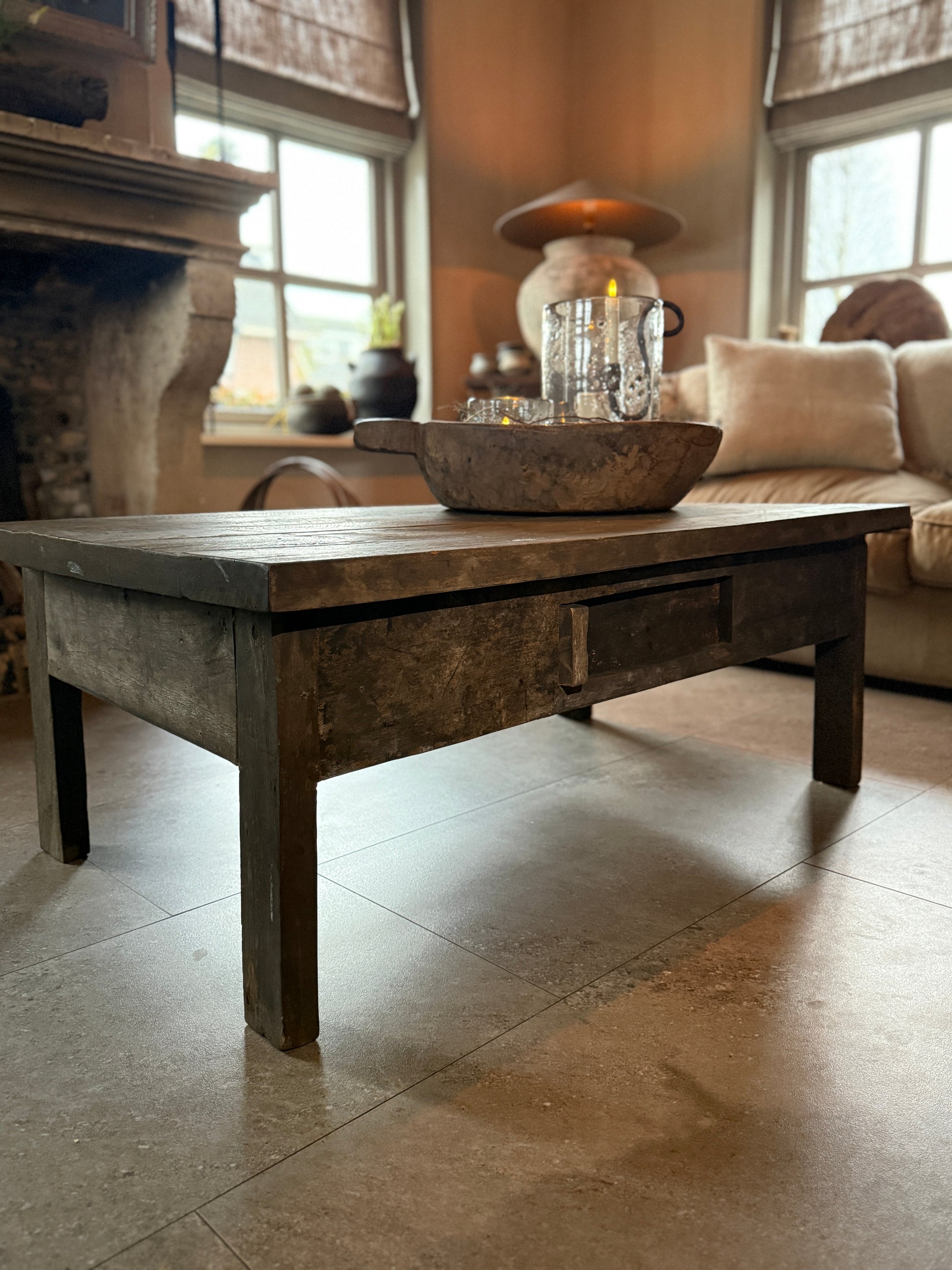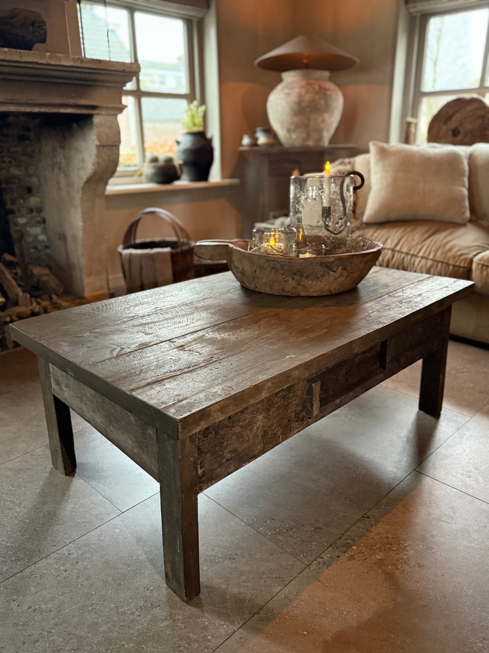 This driftwood coffee table exudes pure robustness and character. Made of sturdy, natural wood with a weathered look, this table fits perfectly into a country interior . Thanks to the practical sliding drawer on one side, the table offers extra storage space for small items, such as remote controls, coasters or magazines.