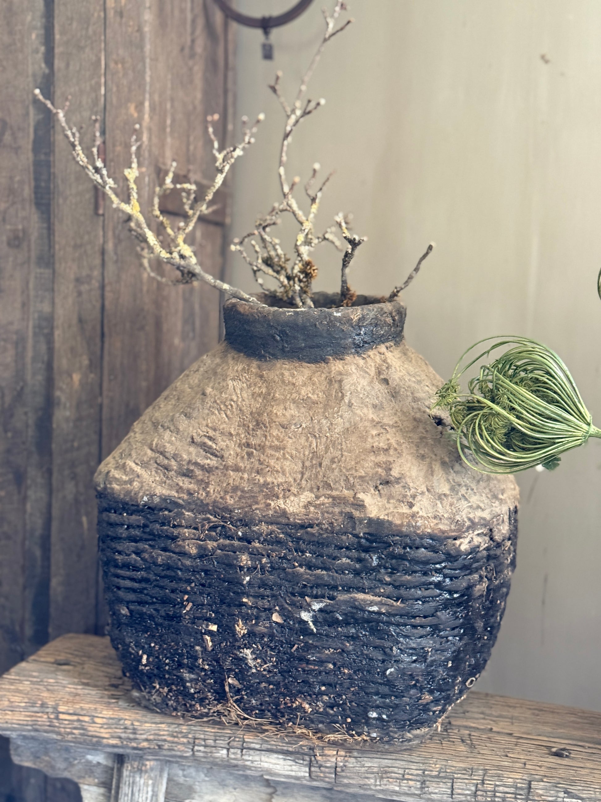 Bring atmosphere and character to your interior with this beautiful old clay basket. This unique basket breathes history and fits perfectly into a rustic, warm and stylish interior.
