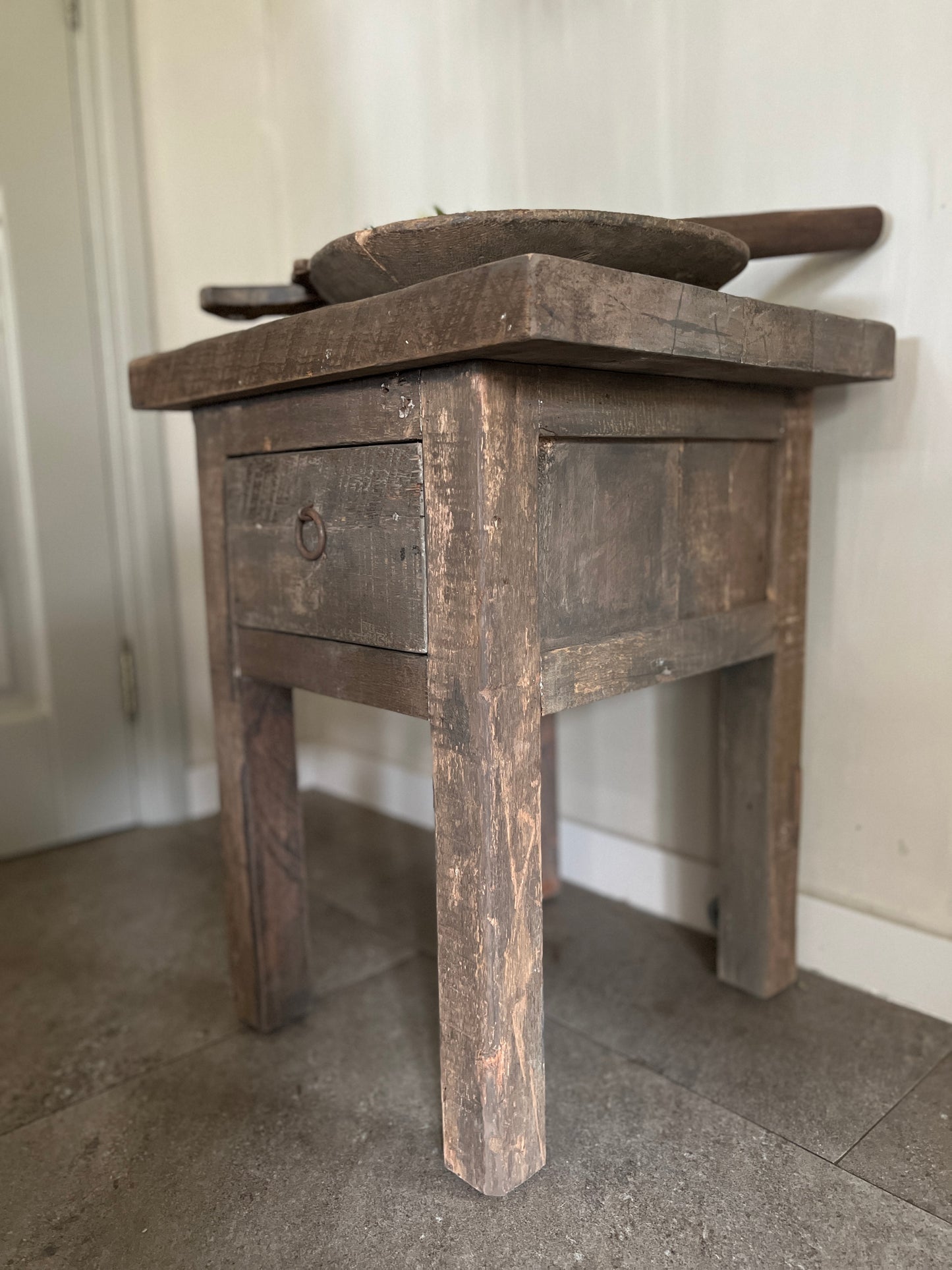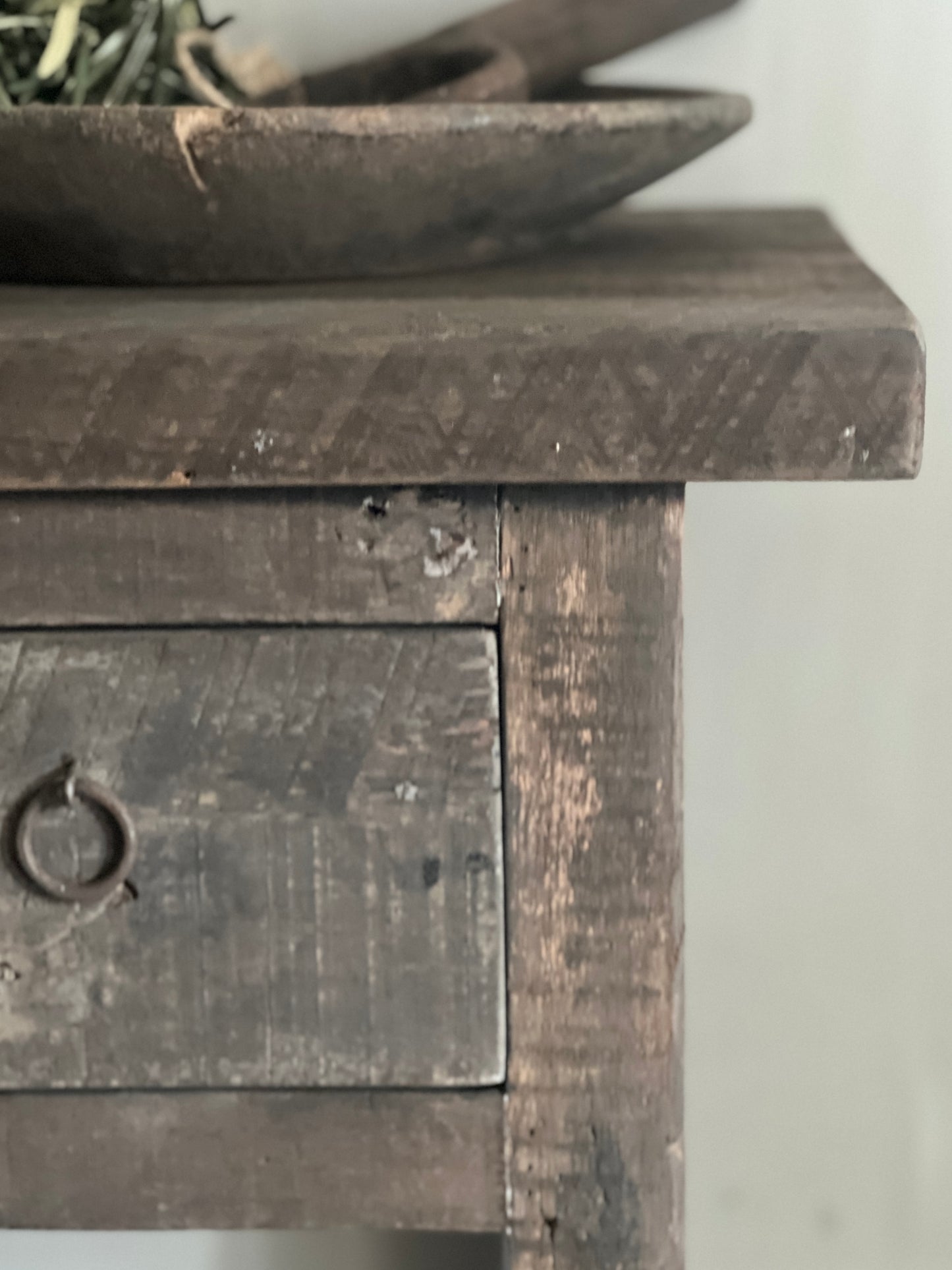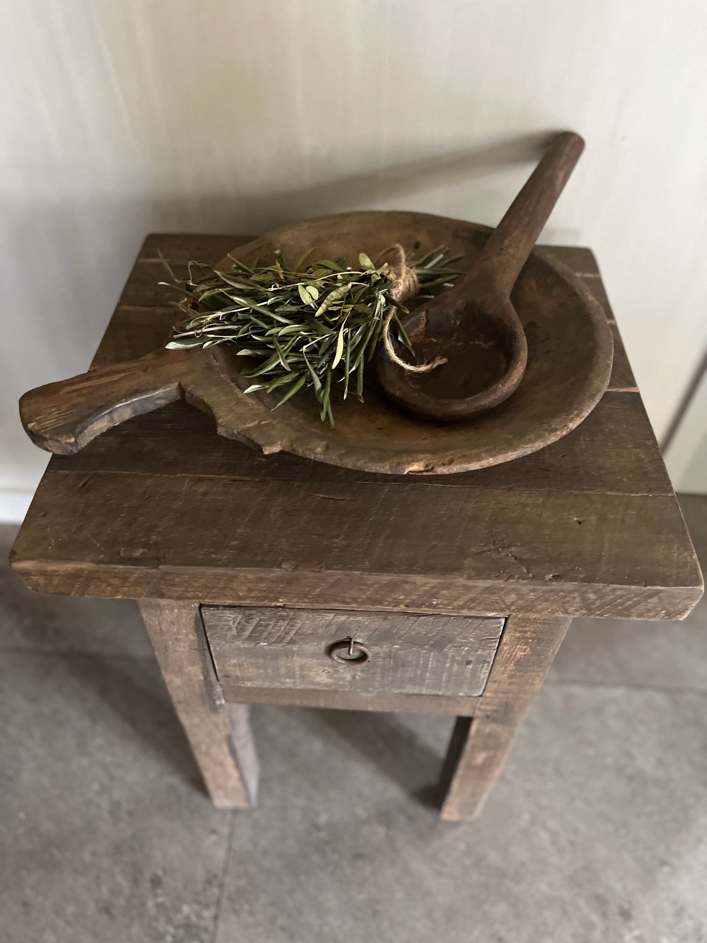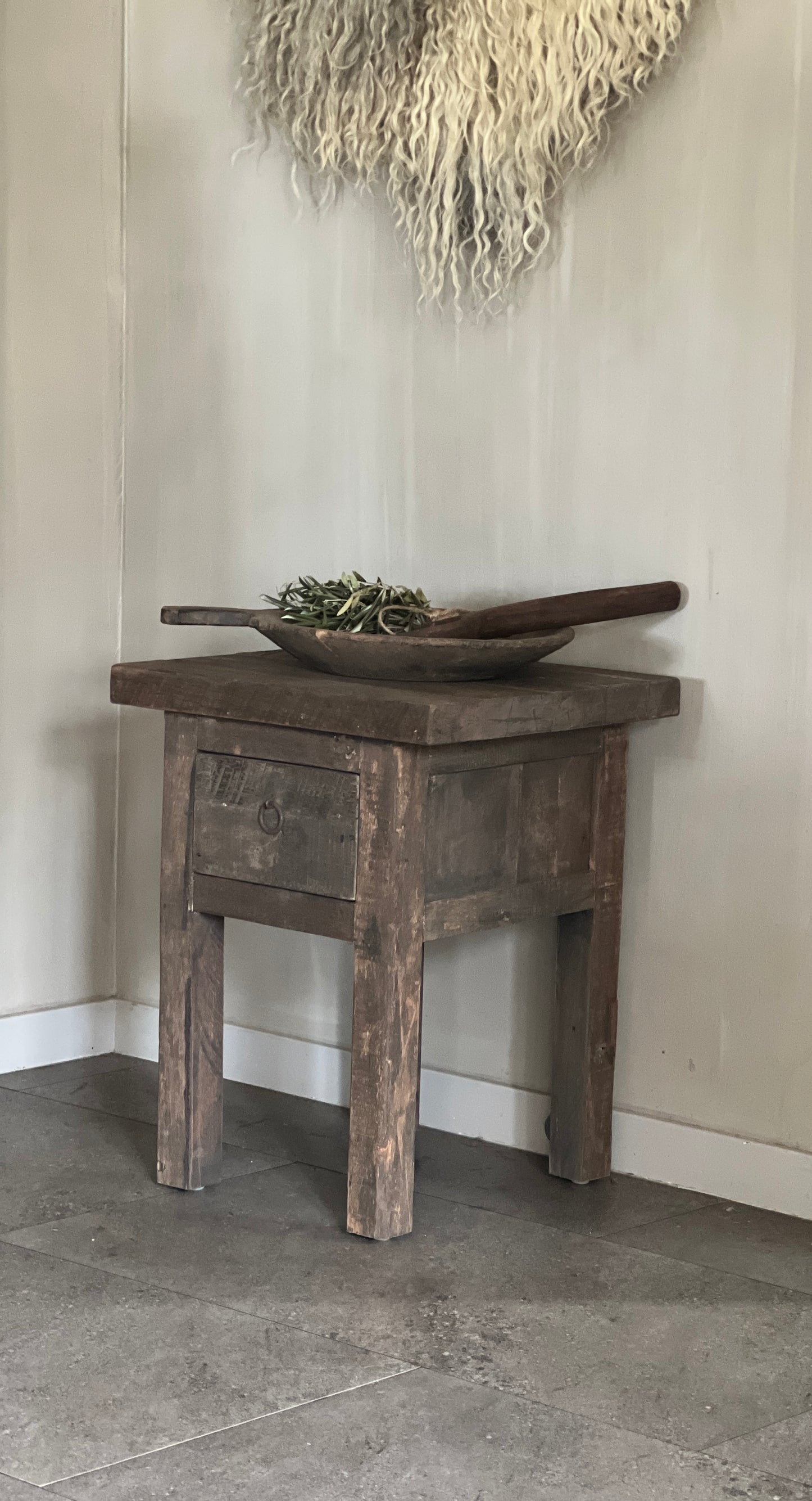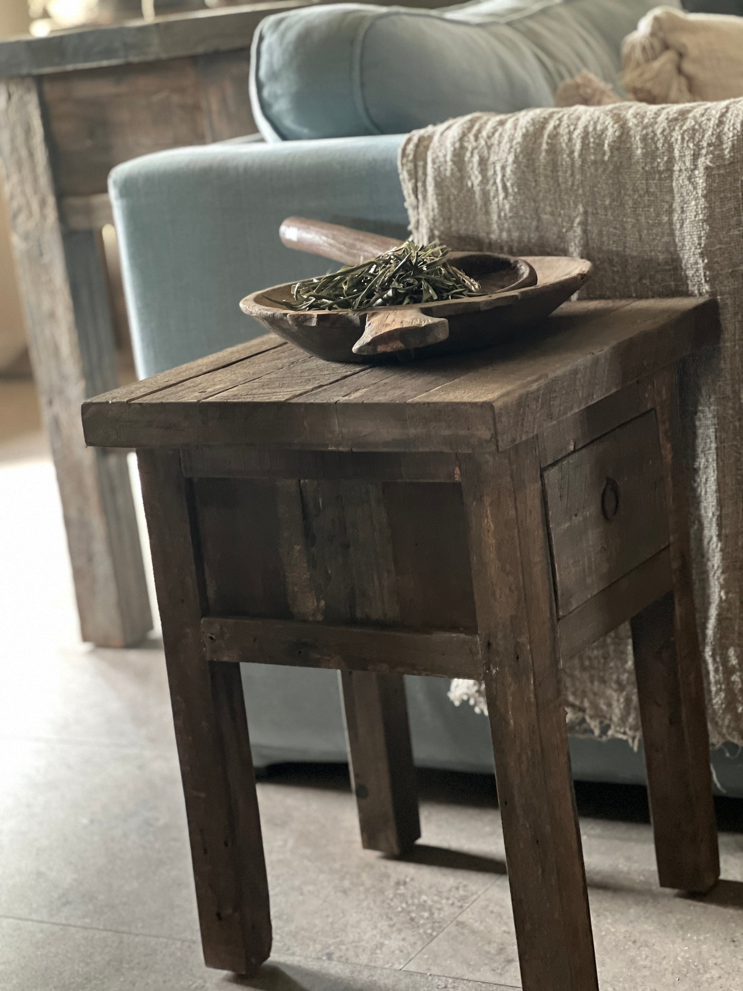 Dit bijzettafeltje  uit onze driftwood collectie staat sfeervol in een landelijk interieur.