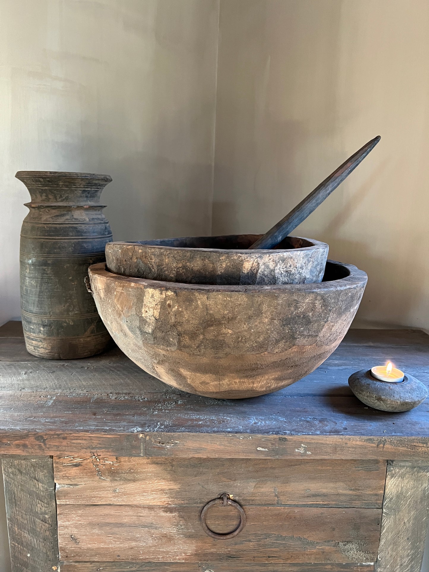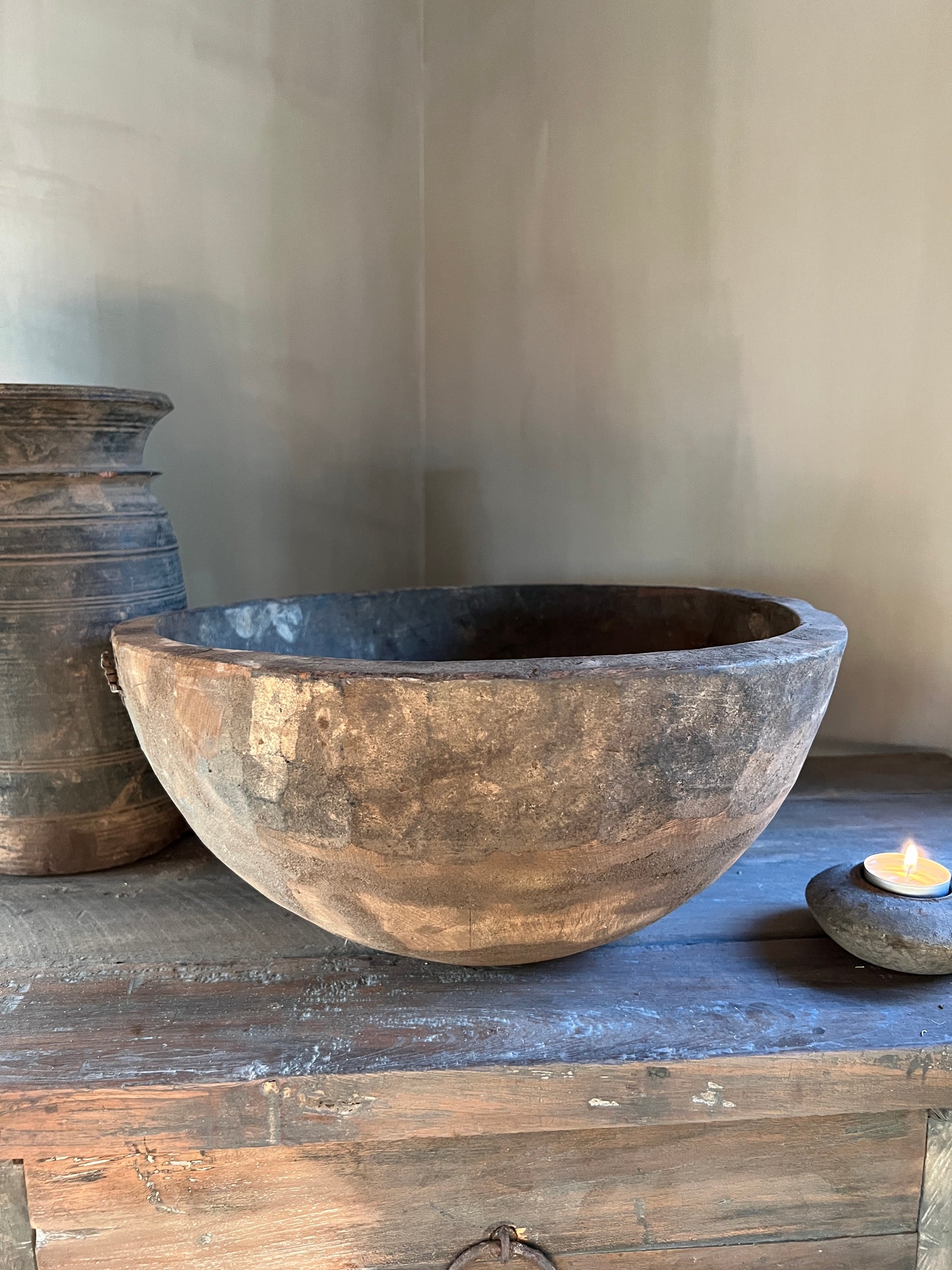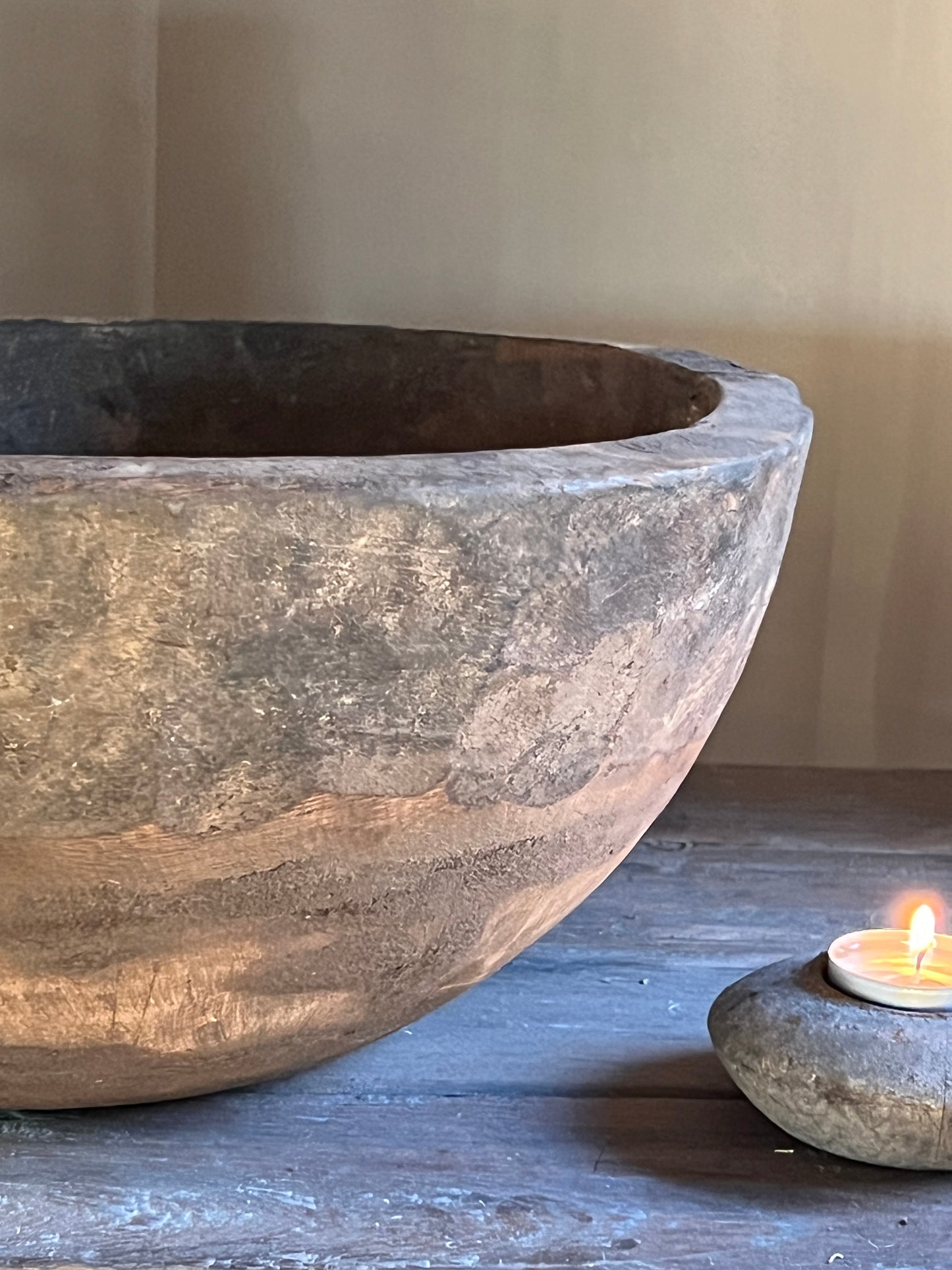 Deze oude bolle schaal is op vele manieren te decoreren.