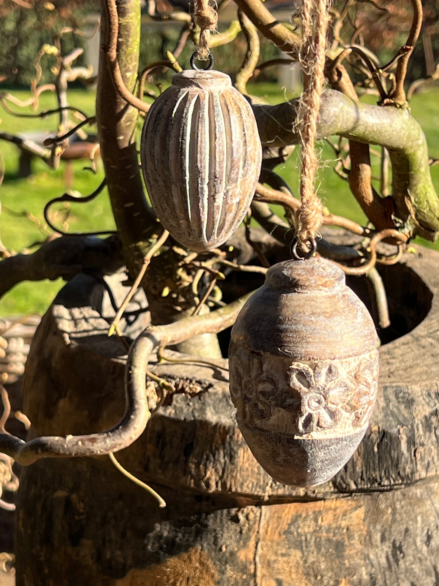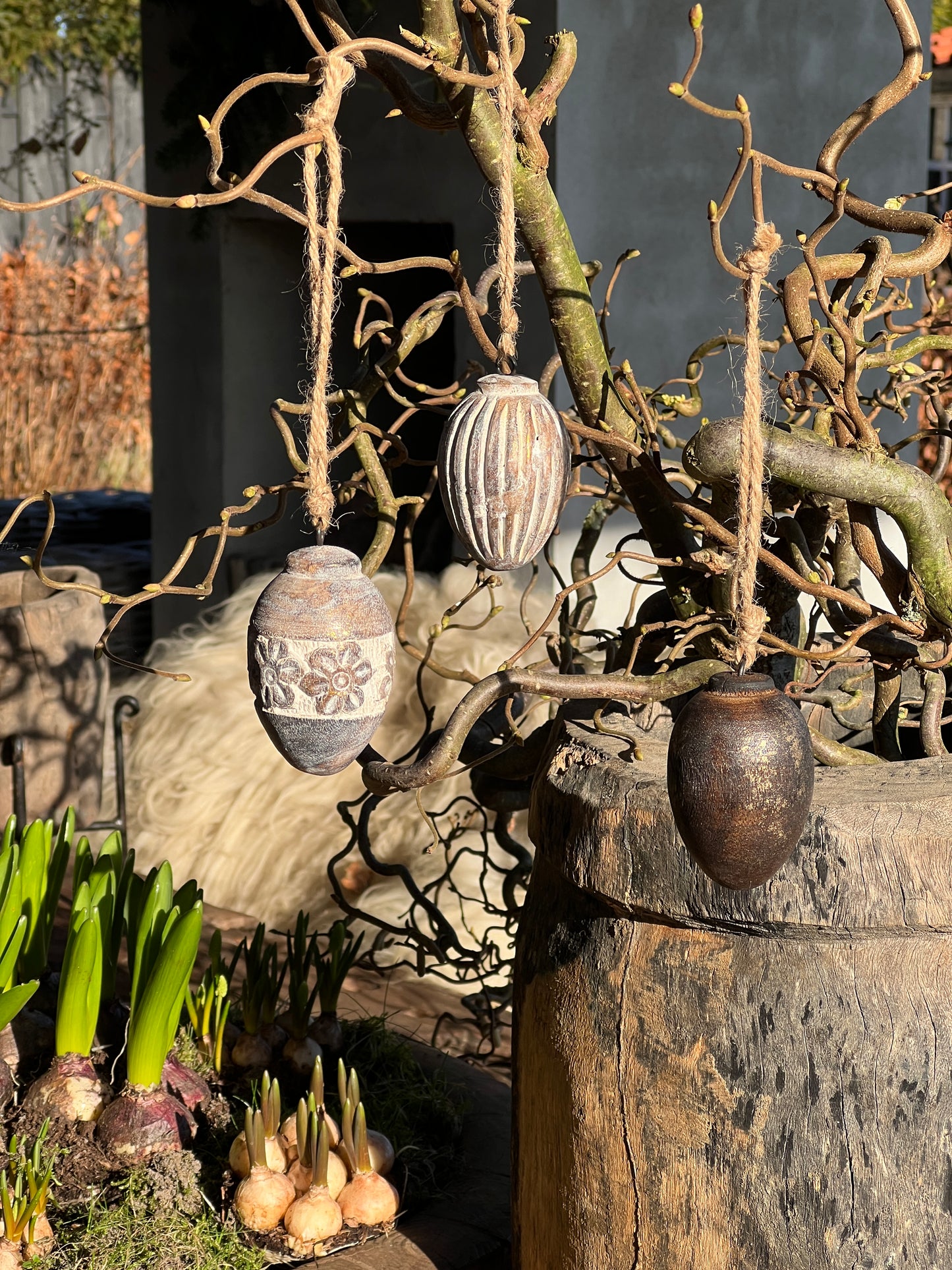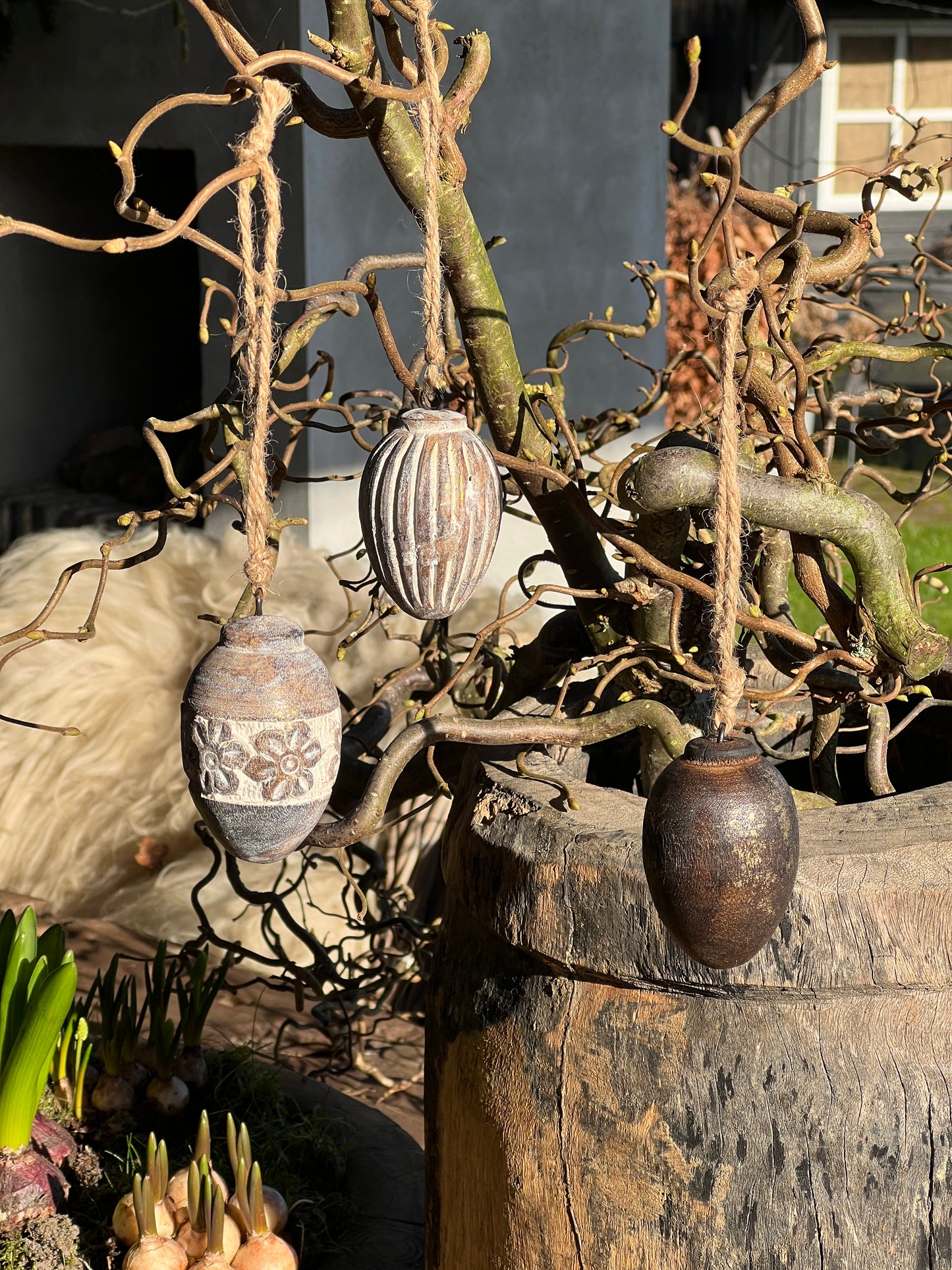 Het ei heeft een white wash laag met een vleugje goud er overheen.