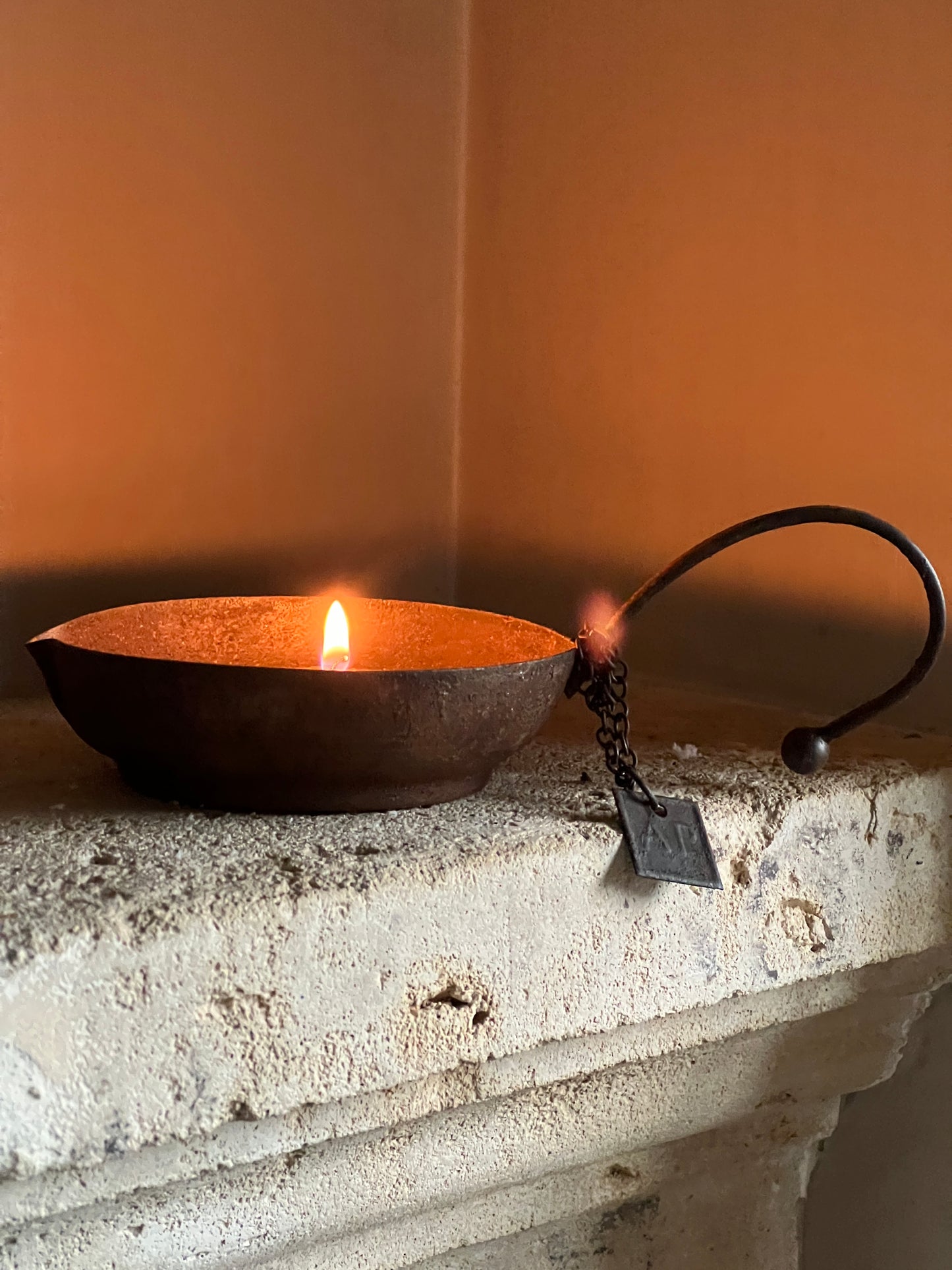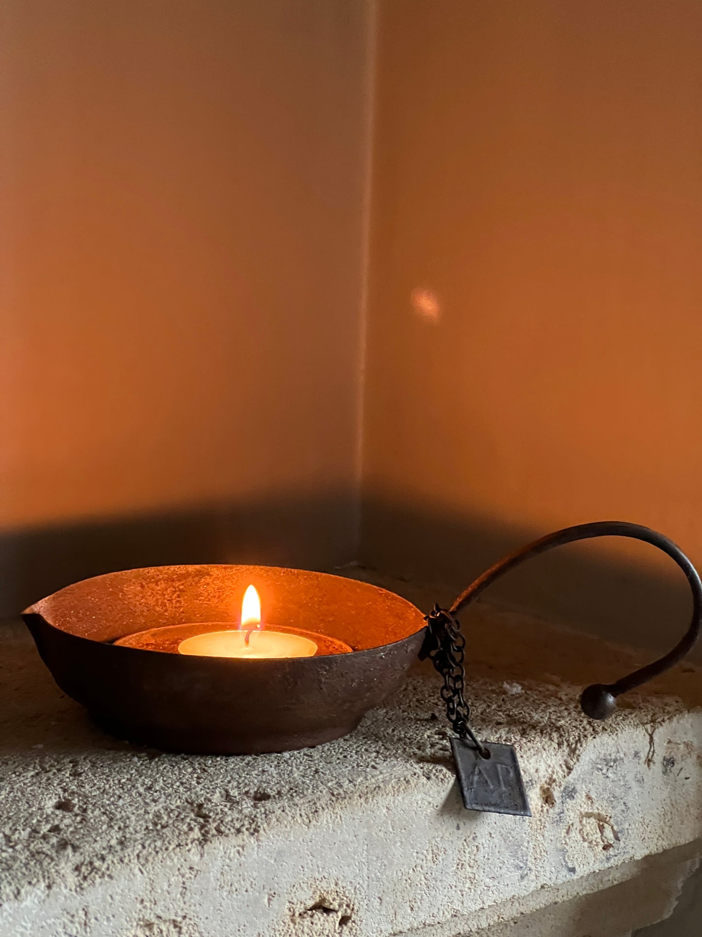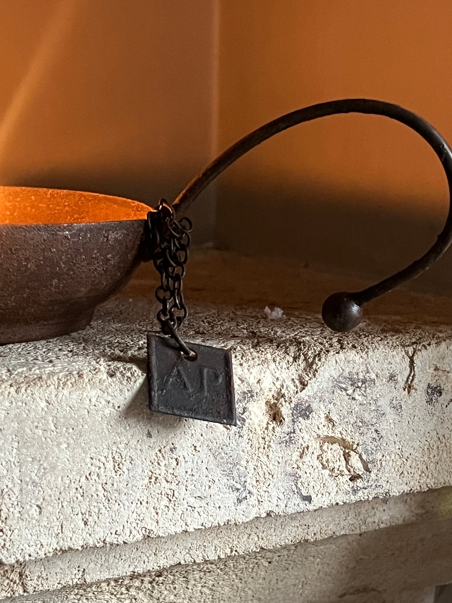 Een metalen blakertje in hele gave verweerde roest uitvoering, afgewerkt met een hangertje van Aura Peeperkorn.
