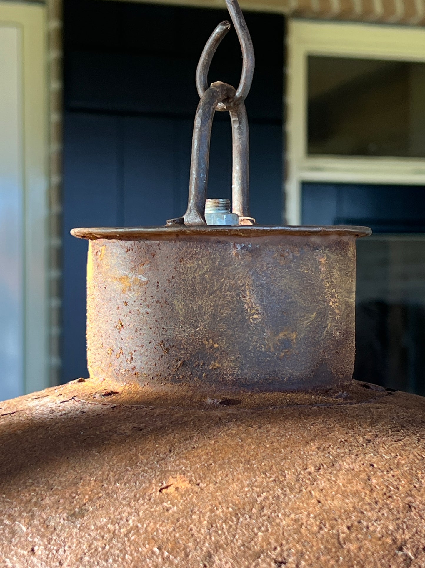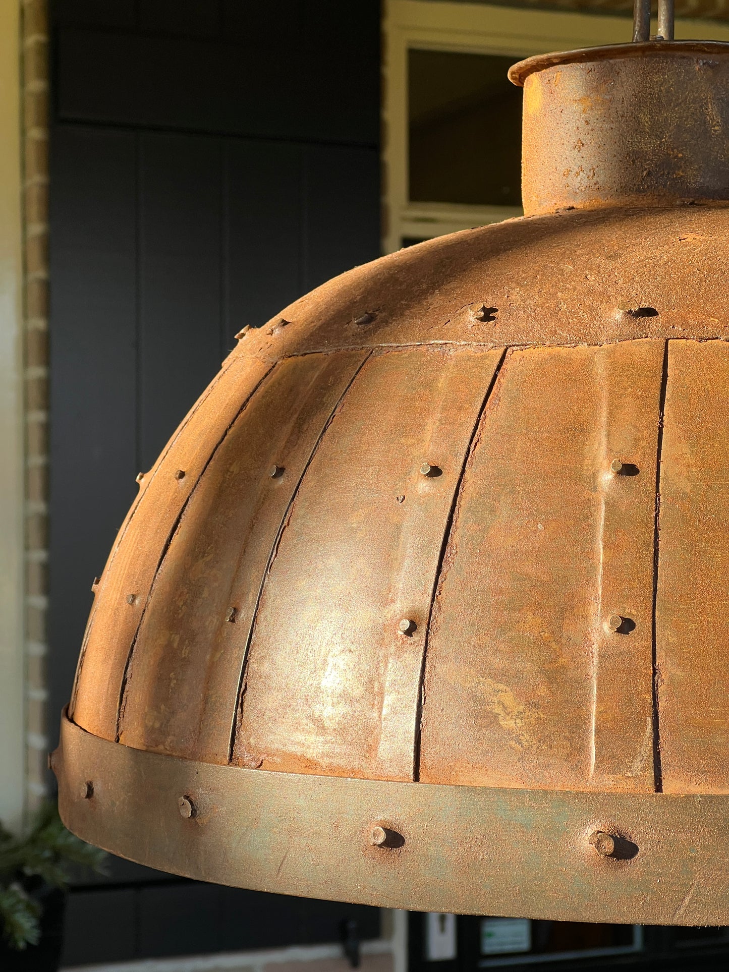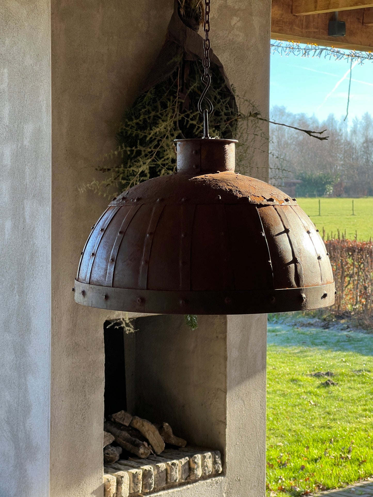 Deze stoere lamp past perfect in een landelijk stoer interieur.