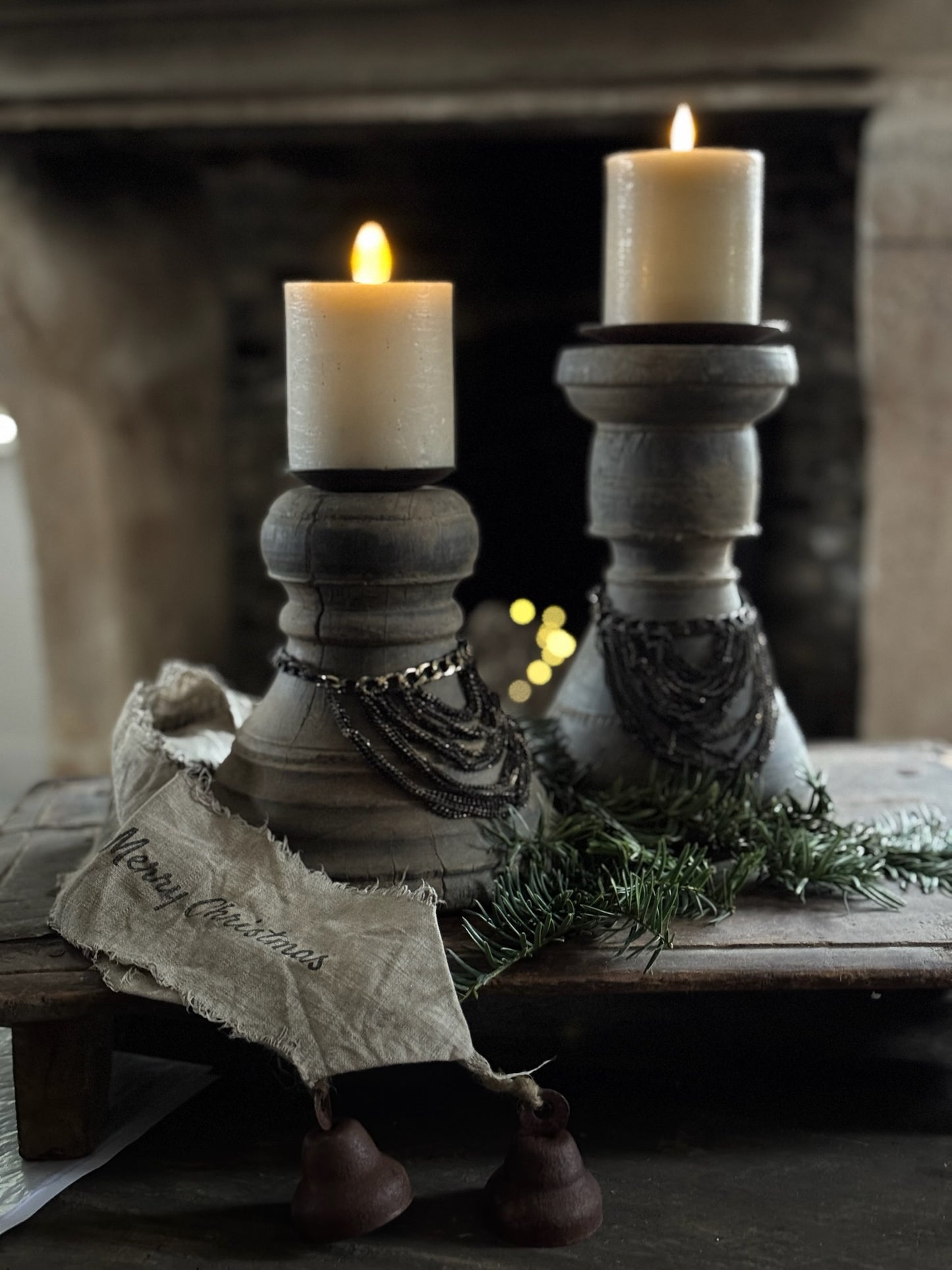 Houten Kandelaar met Sierlijke Ketting – Authentieke Landelijke Sfeer