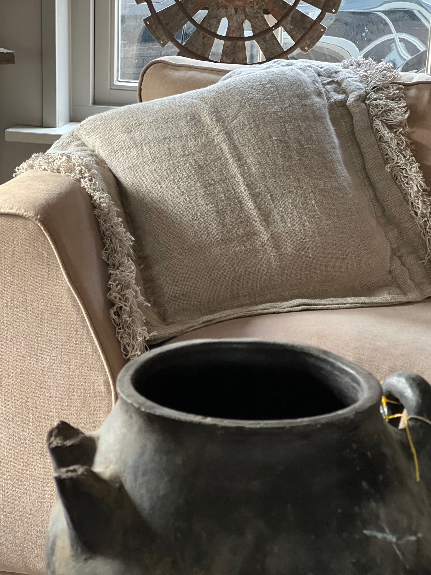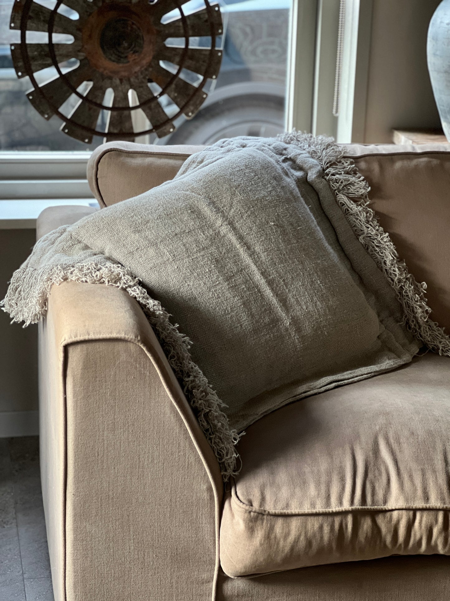 Sierkussen Esther naturel is een stoer linnen kussen van de Vlasz collectie.