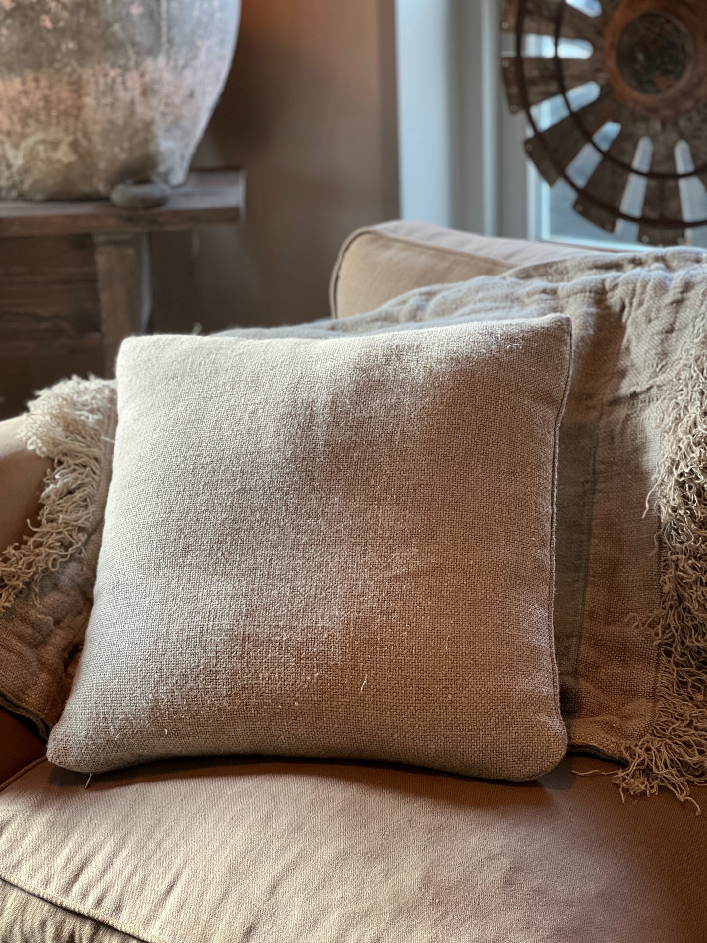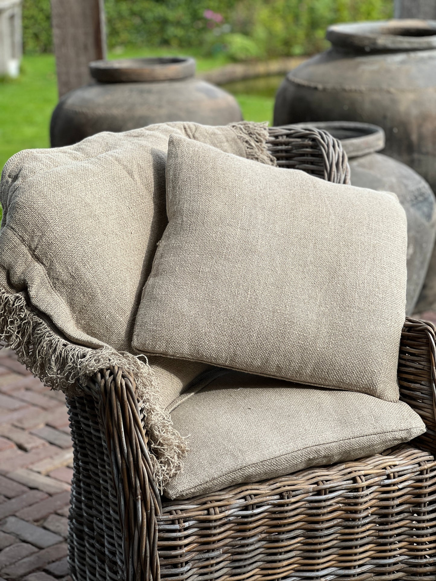 Sierkussen Rachel naturel is een stoer linnen kussen van de Vlasz collectie.