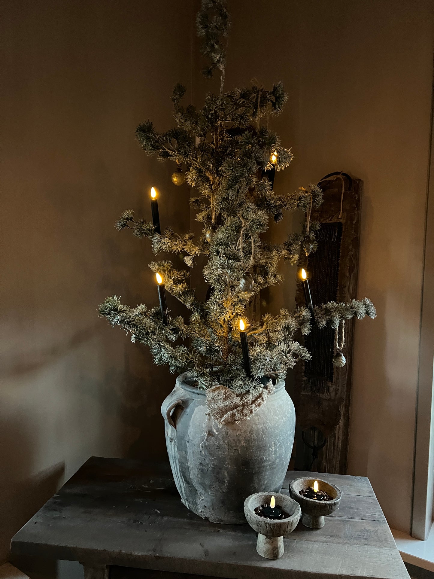 Je kunt de kaarsjes met een knijpertje aan de tak bevestigen.