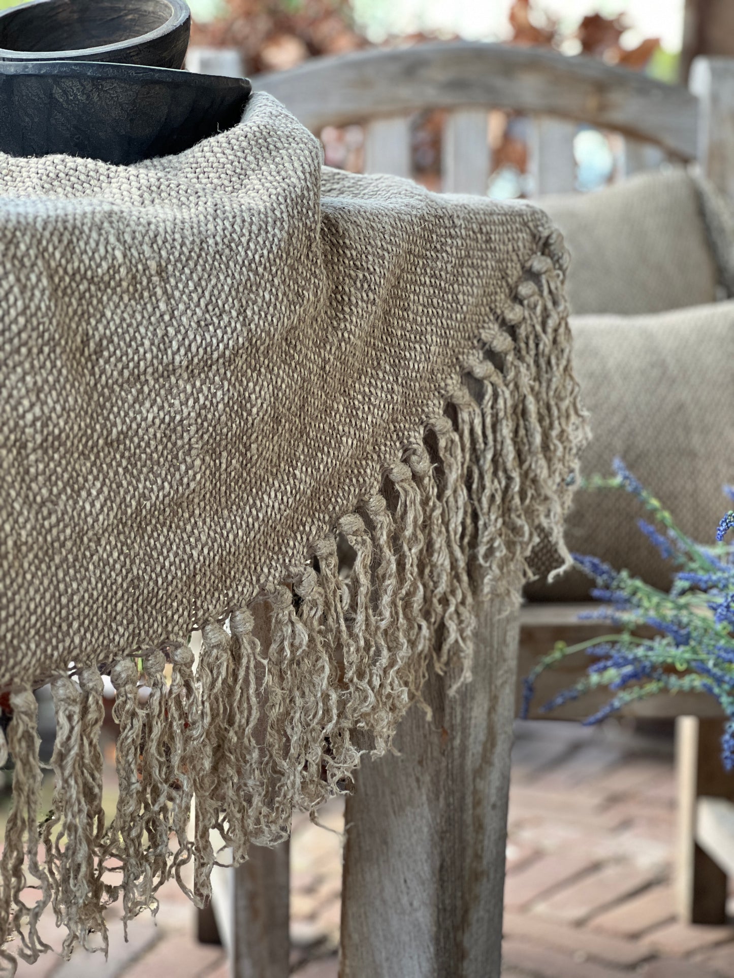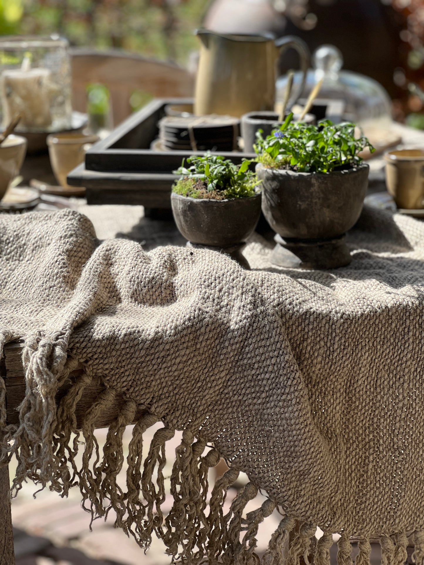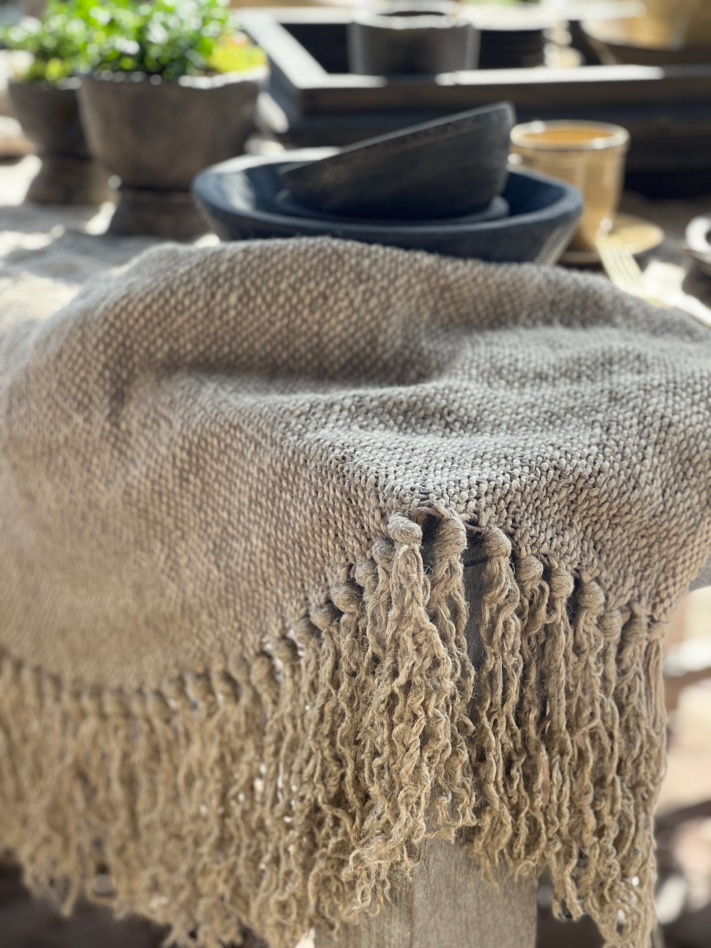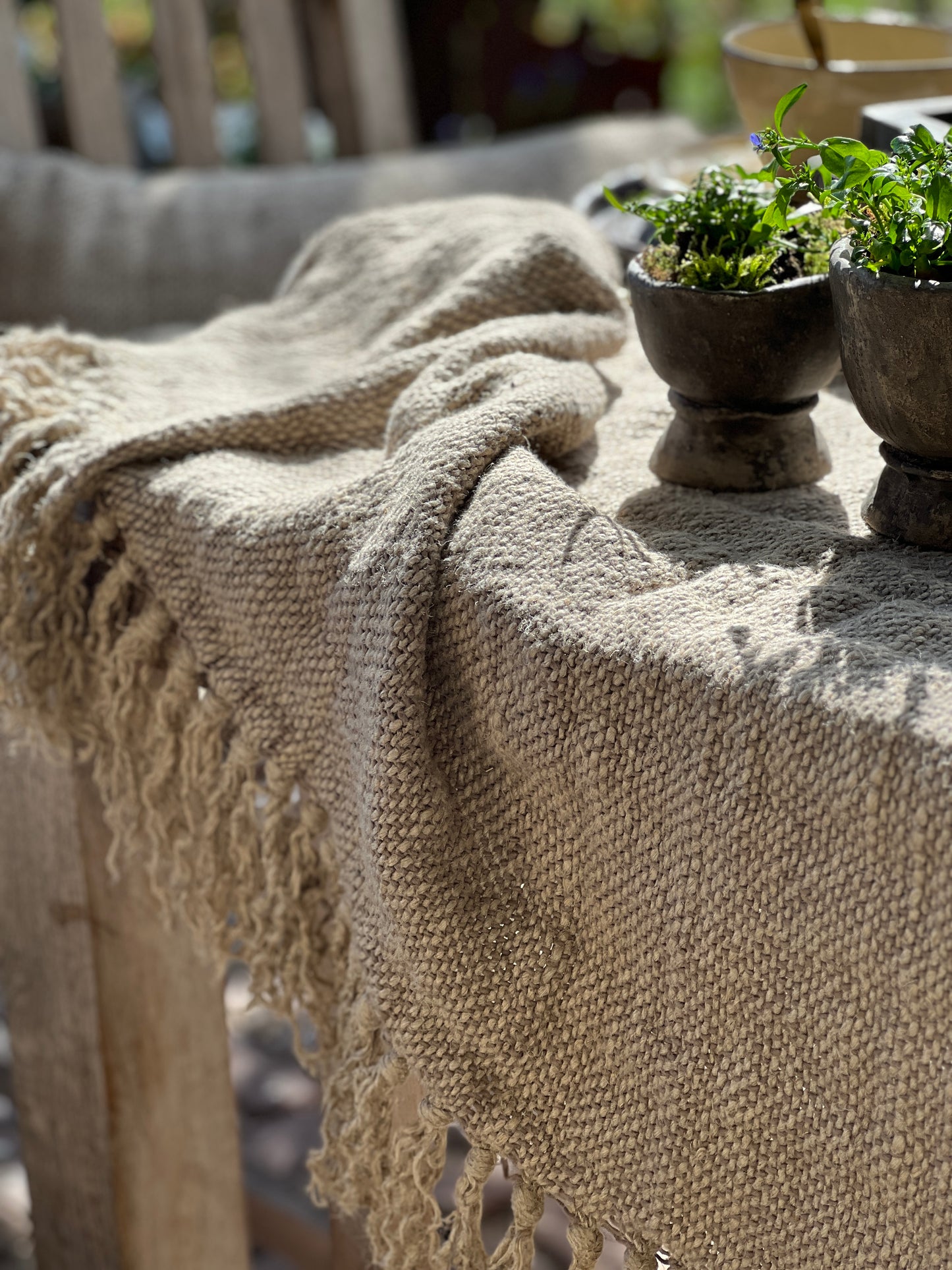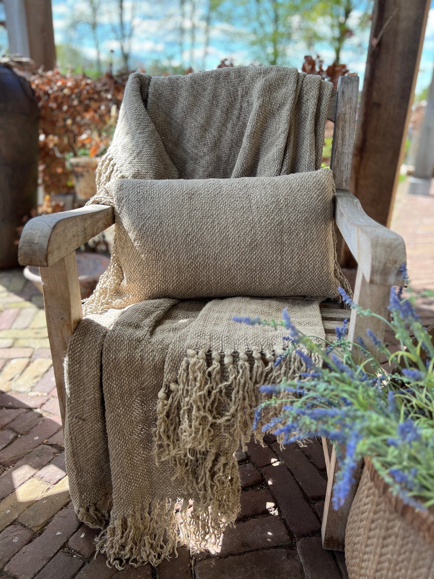 Dit plaid is heel goed geschikt voor over een ladder, bank of fauteuil. Maar voor een landelijke sfeer is hij uitermate geschikt om je tafel mee te stylen als tafelkleed of loper.