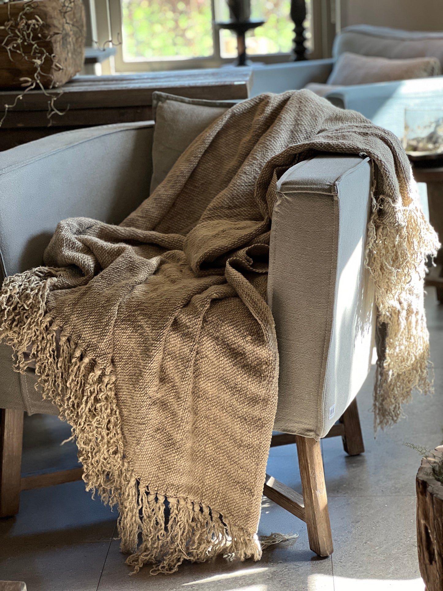 Een linnen plaid om verliefd op te worden met franjes van zware kwaliteit uit de serie Lynn van Aura Peeperkorn.