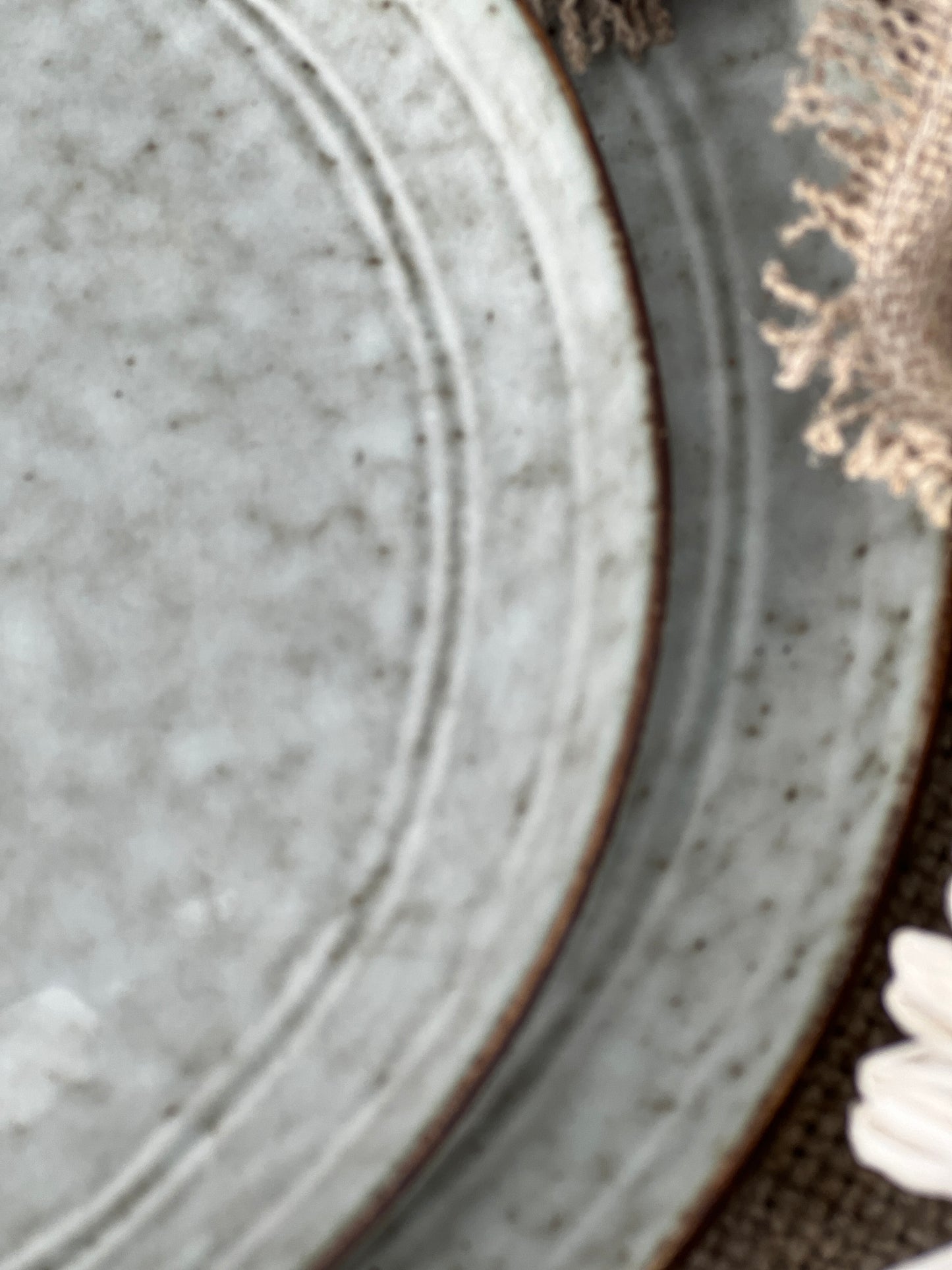 Voeg tijdloze charme toe aan je serviescollectie met dit prachtige ontbijt bord van hoogwaardig aardewerk. De unieke groen-grijs-blauwe tinten met een fijn wit streepje, gecombineerd met een verfijnde bruine afwerking langs de randen, maken dit servies een perfecte keuze voor een landelijk interieur. Ideaal voor het genieten van je favoriete ontbijtje in stijl.