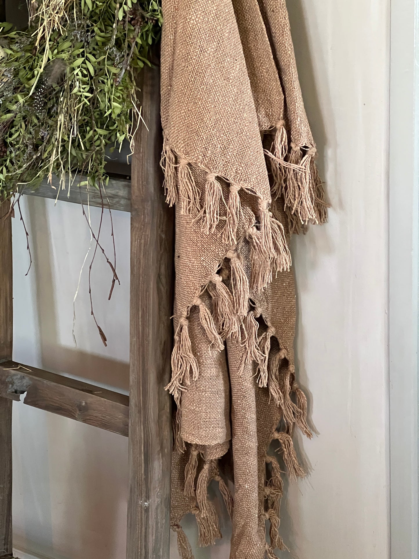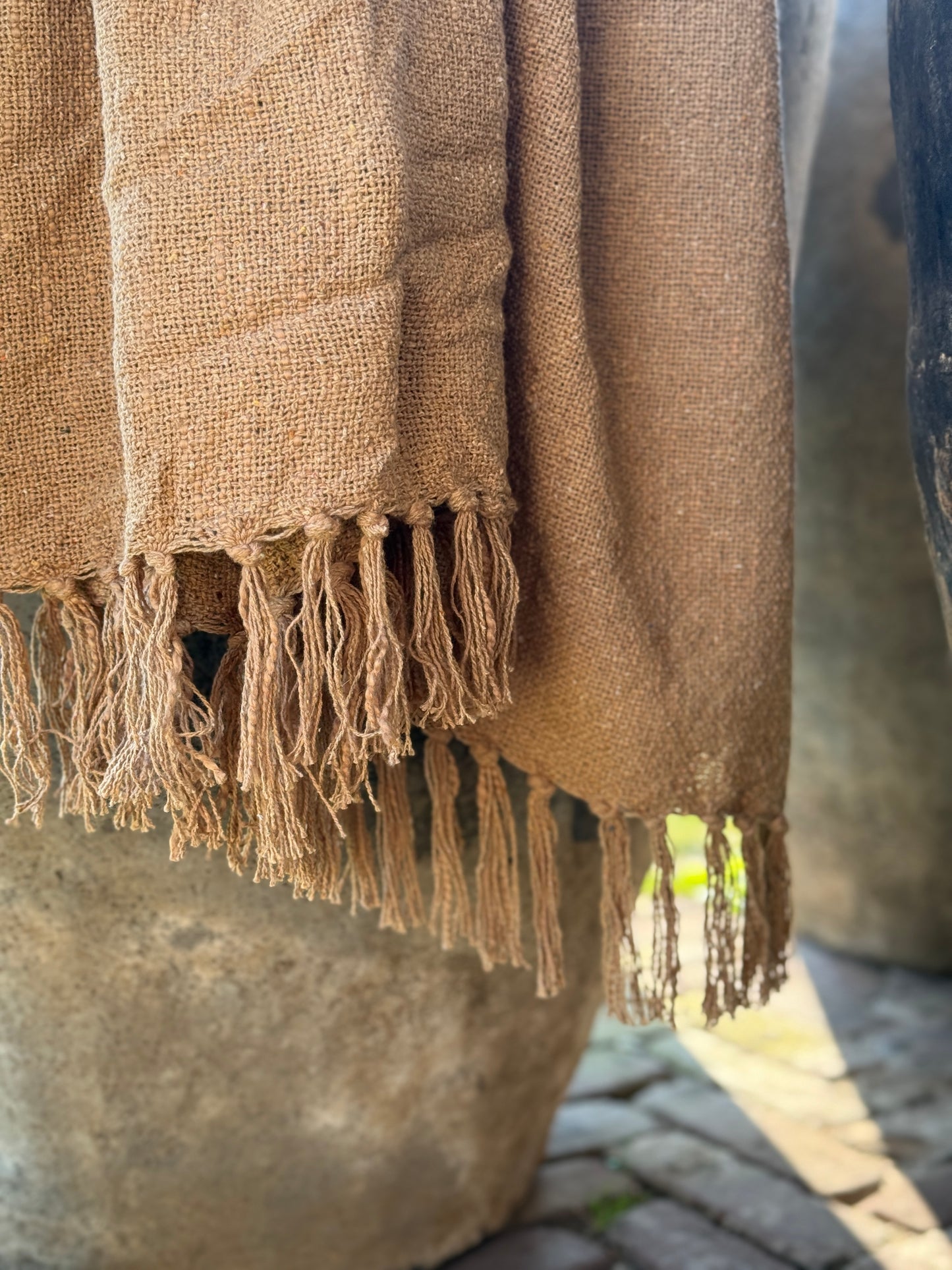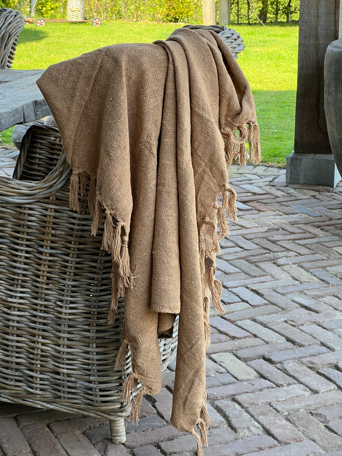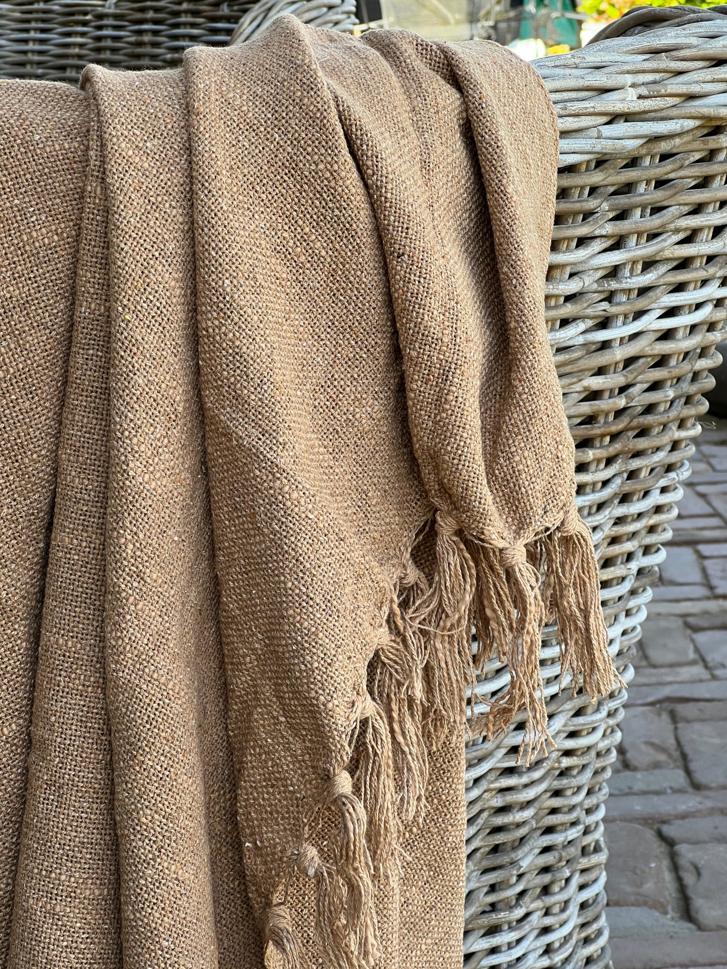Katoenen plaid met franje – Kokosnoot – 130x160 cm