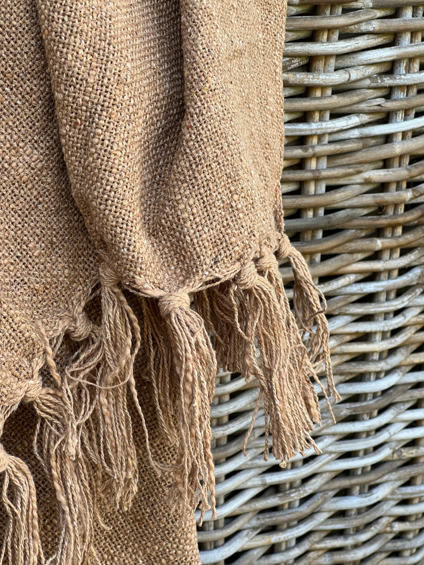De franjes aan twee zijden geven de plaid een speelse, nonchalante look – ideaal voor de zomer. De natuurlijke kleur laat zich makkelijk combineren met andere tinten en materialen.