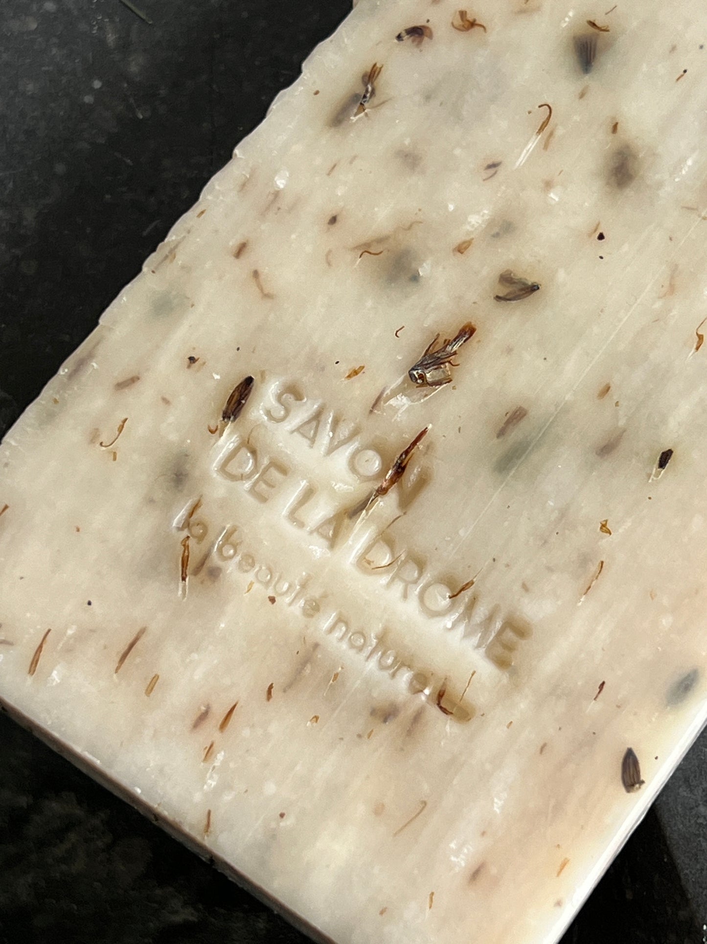In de zeep zitten lavendel blaadjes.
