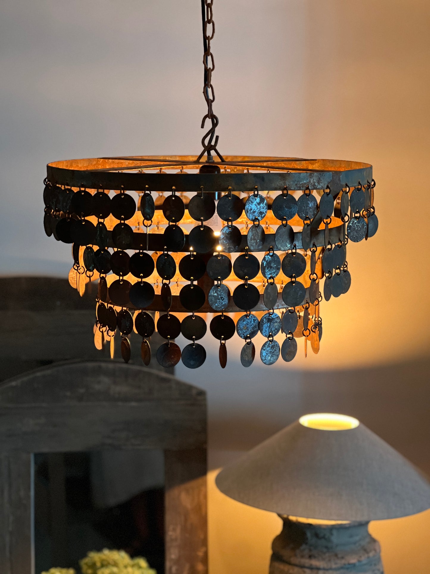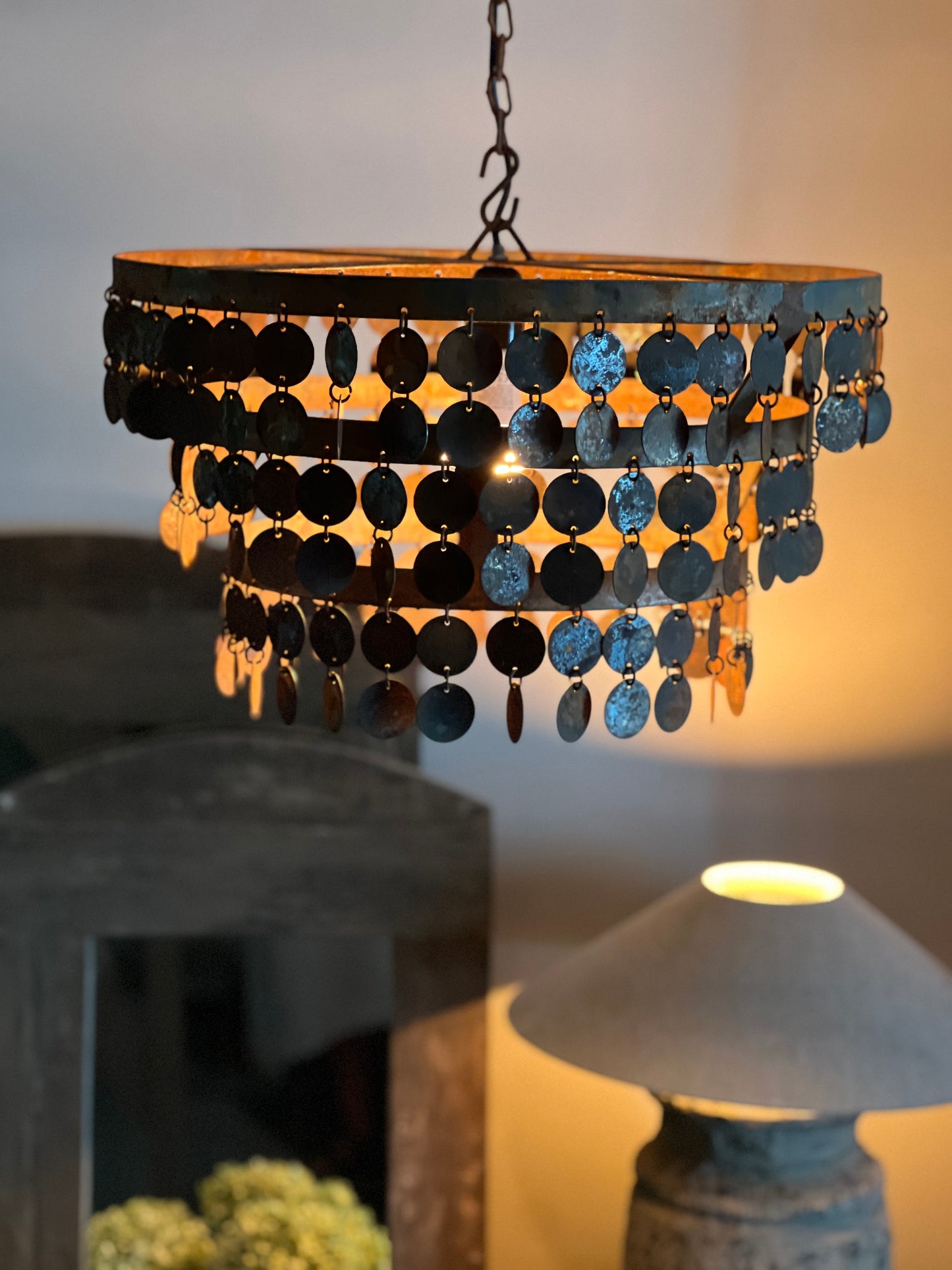 Stoere geroest metalen schijfjeslamp.