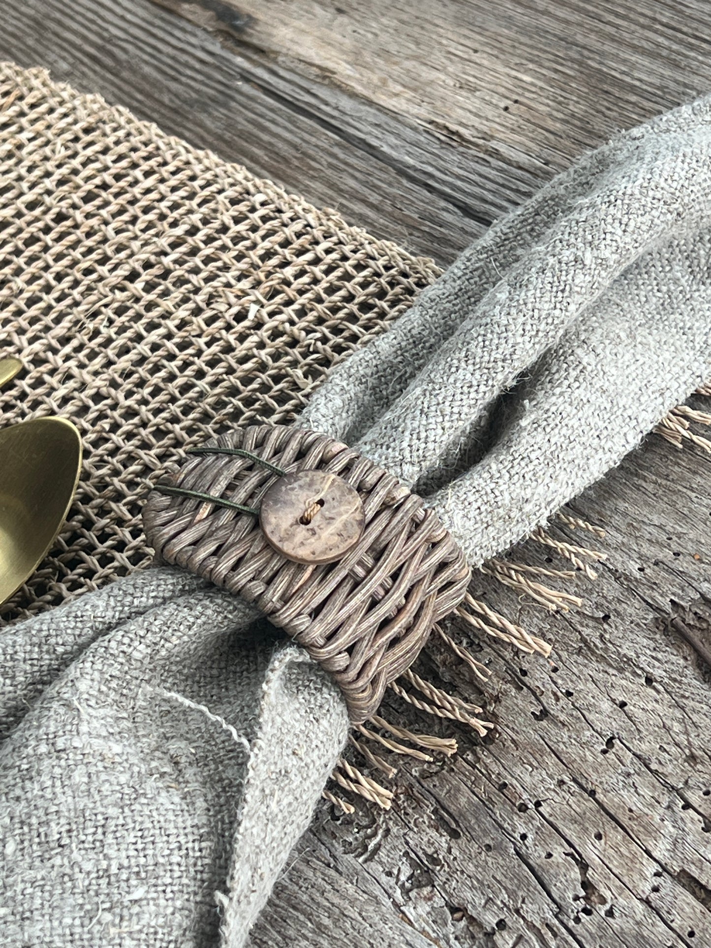 Deze servet ringen zijn gemaakt van riet en afgewerkt met een knoop.