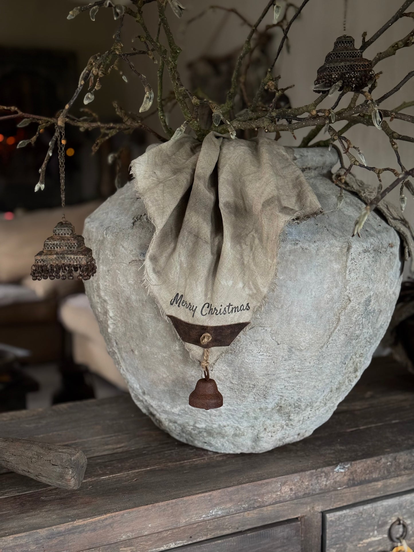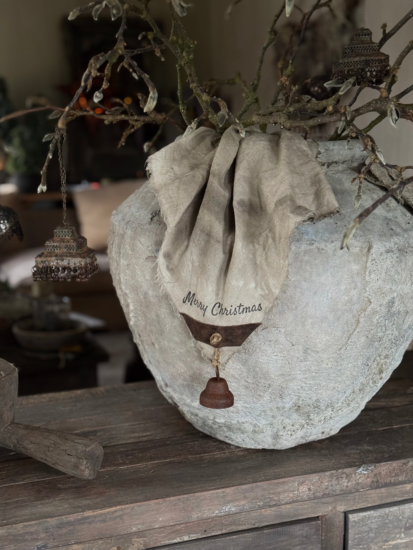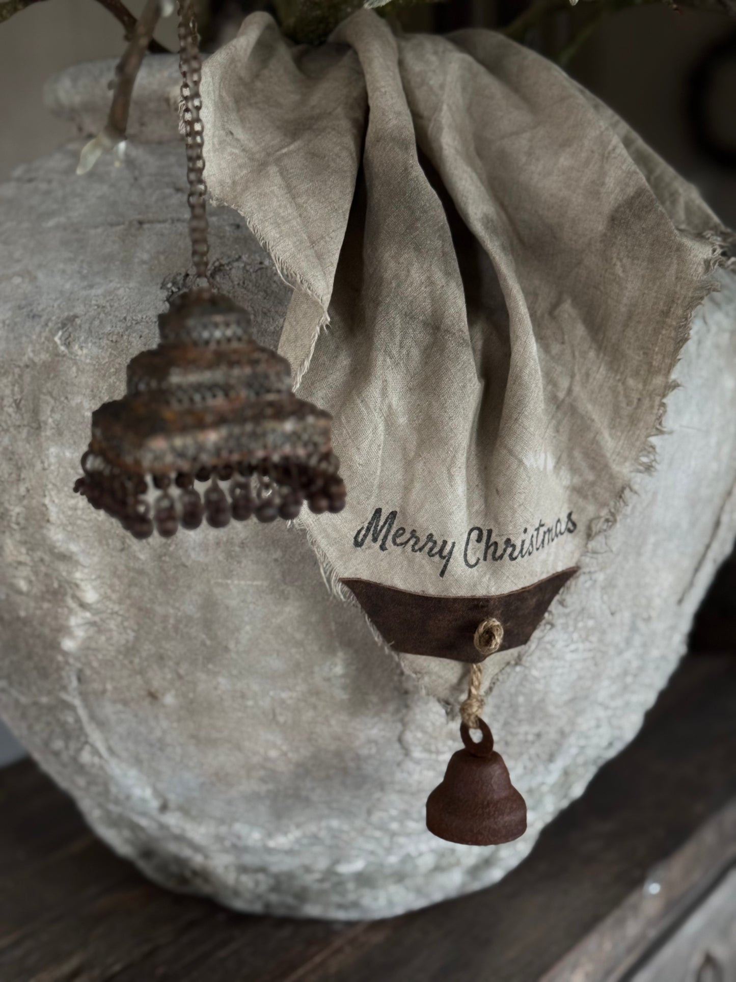 Beschrijving: Deze unieke shabby doek, ontworpen door San7, brengt een warme, vintage kerstsfeer in huis. Met de feestelijke tekst “Merry Christmas” en een stijlvolle bel straalt het karakter en charme uit. Mooi om aan een pot, vaas of deur te hangen voor een landelijke uitstraling.