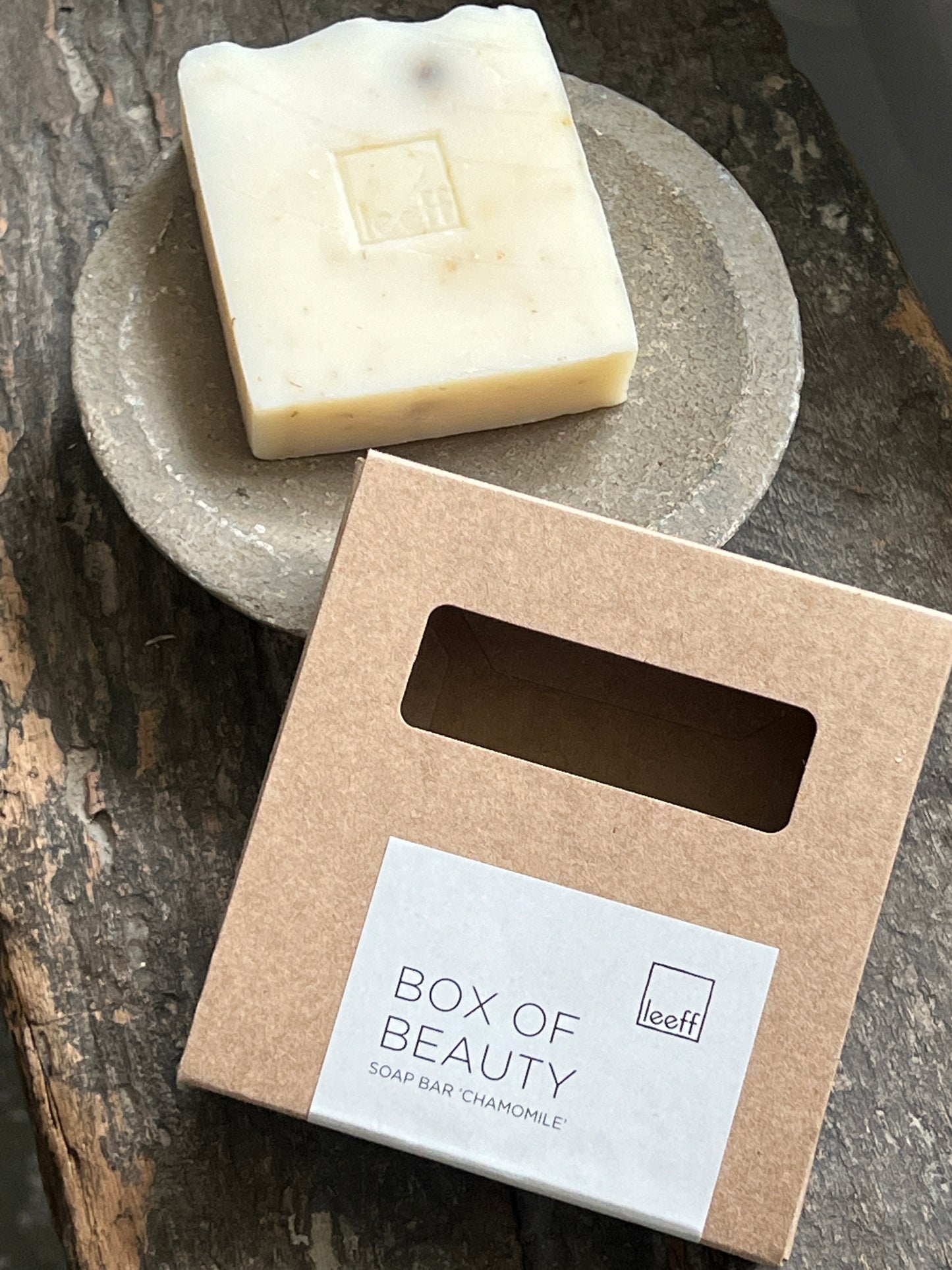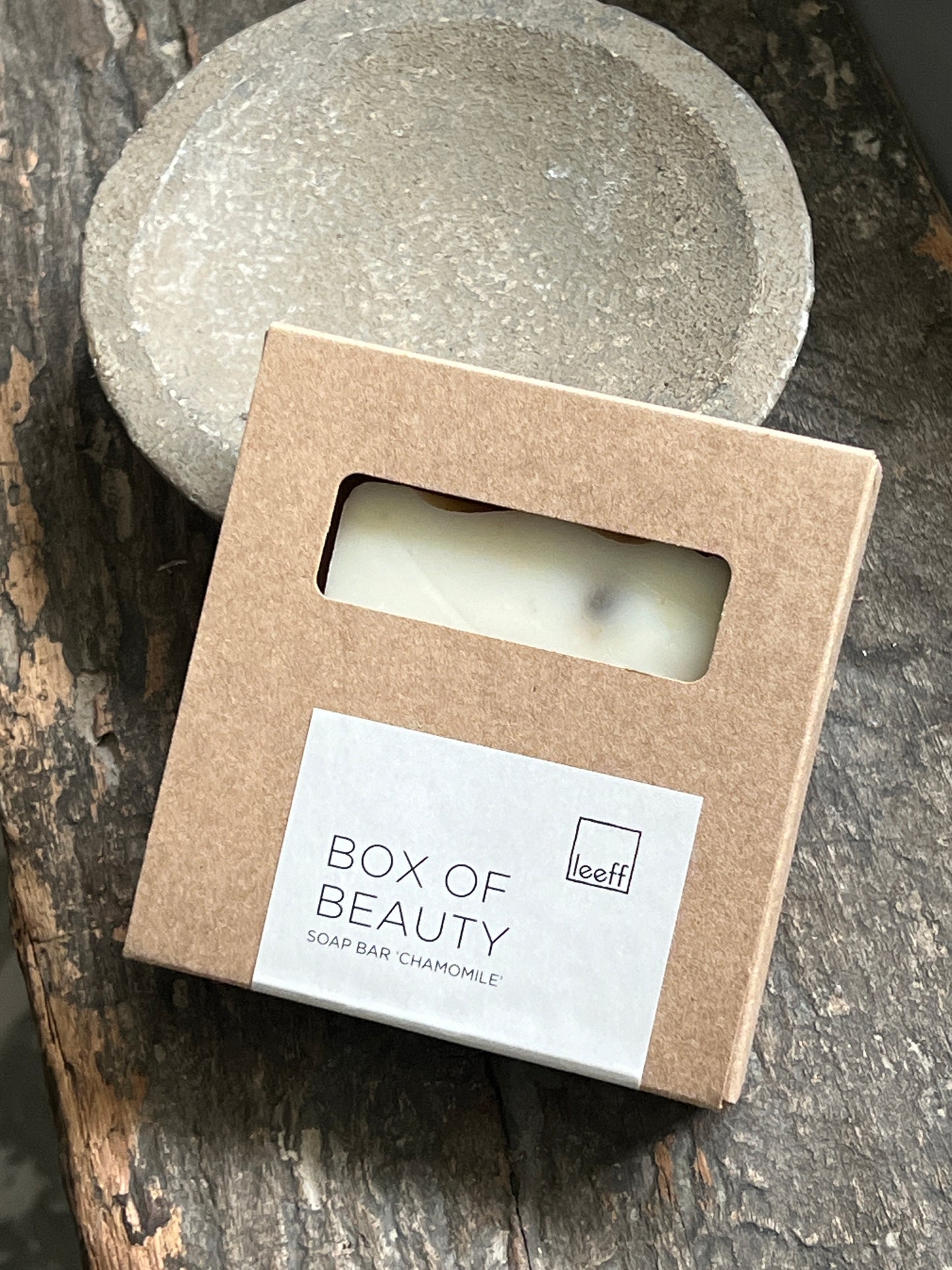 Deze heerlijke blok zeep is verpakt in een mooie box. "Box of Beauty"