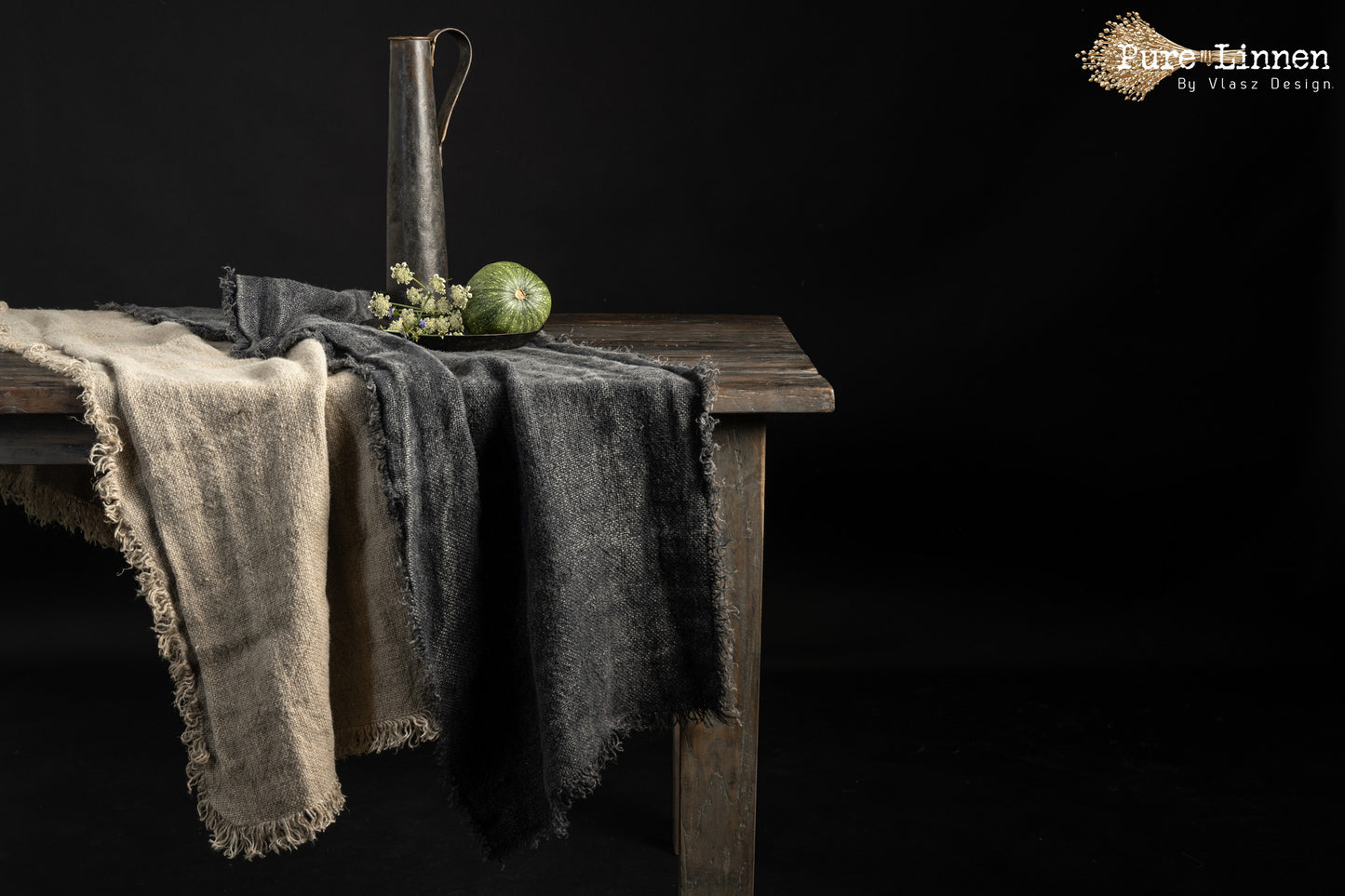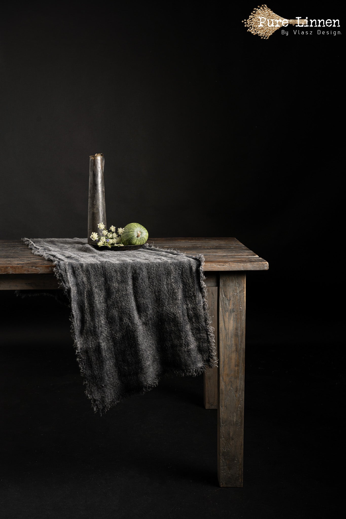 De hand geweven tafelloper Sifra heeft een stonewash behandeling ondergaan, waardoor het linnen een bijzondere, oneven structuur krijgt en er mooie kleurschakeringen ontstaan.