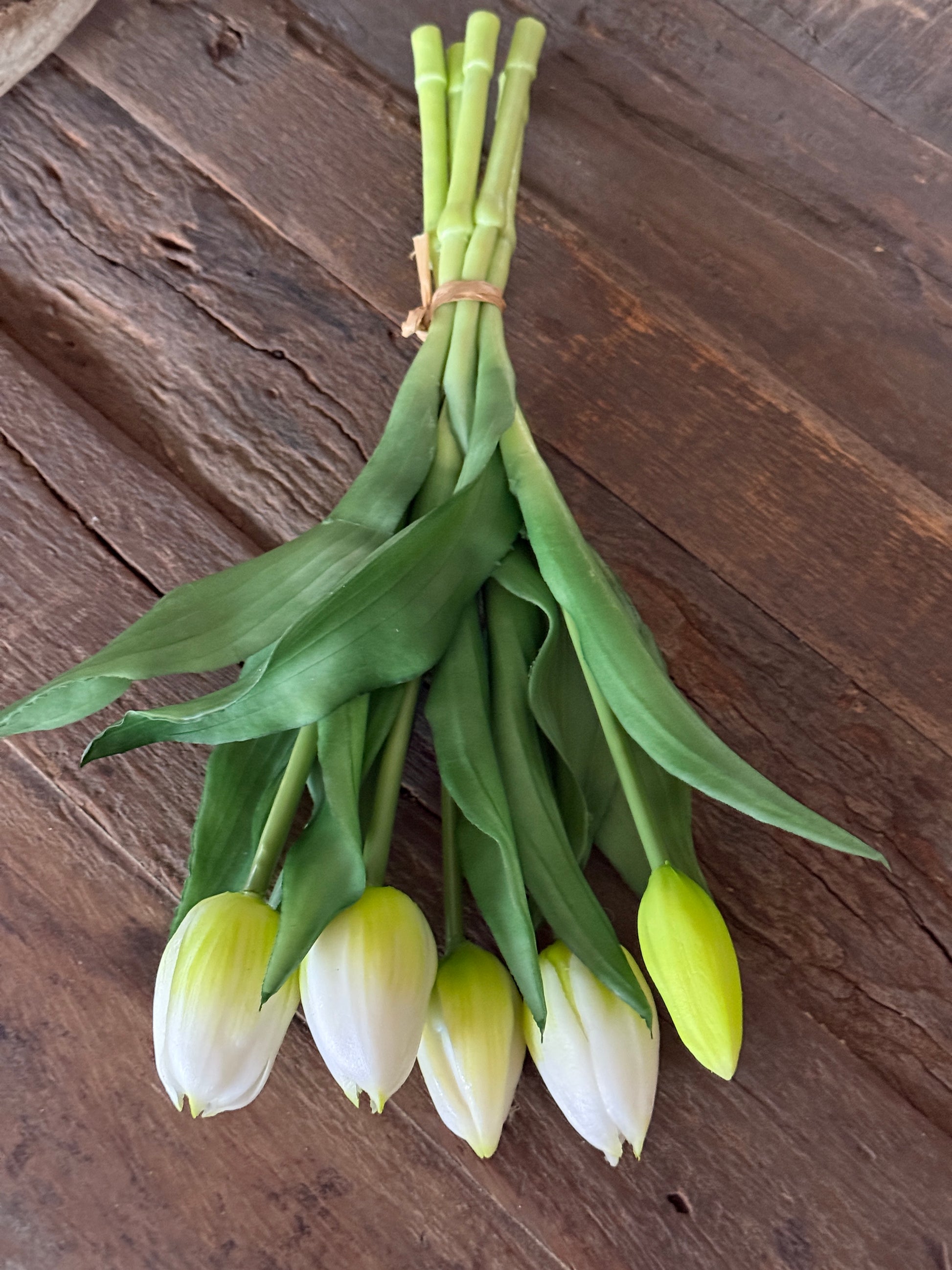 Deze elegante bos witte kunst tulpen brengt rust en frisheid in elk interieur. De tulpen hebben een natuurlijke uitstraling en zijn zorgvuldig vormgegeven, waardoor ze nauwelijks van echte bloemen te onderscheiden zijn. Ideaal voor wie het hele jaar door wil genieten van bloemen, zonder onderhoud.