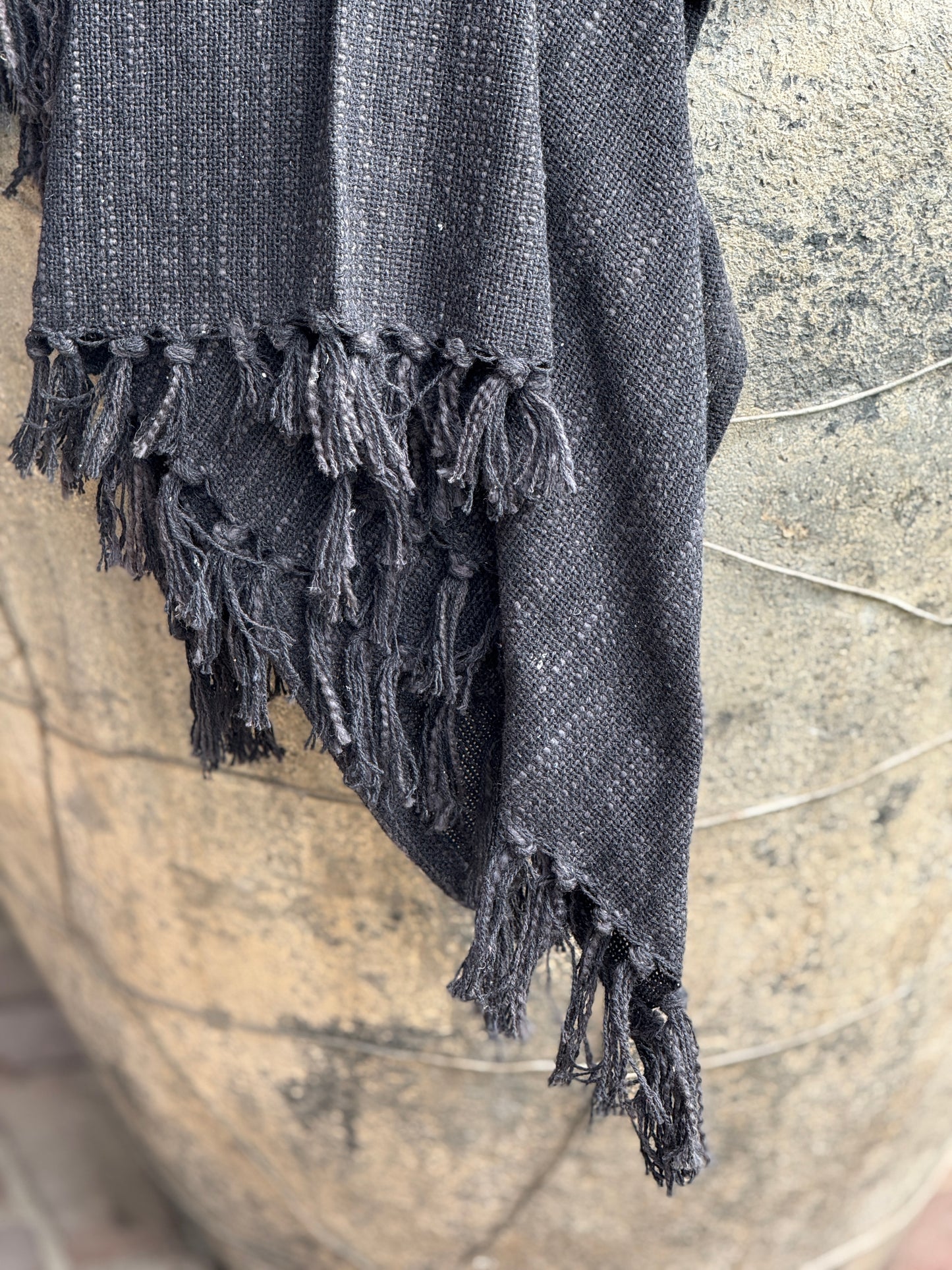 Katoenen Plaid met franje – Zwart– 130x160 cm