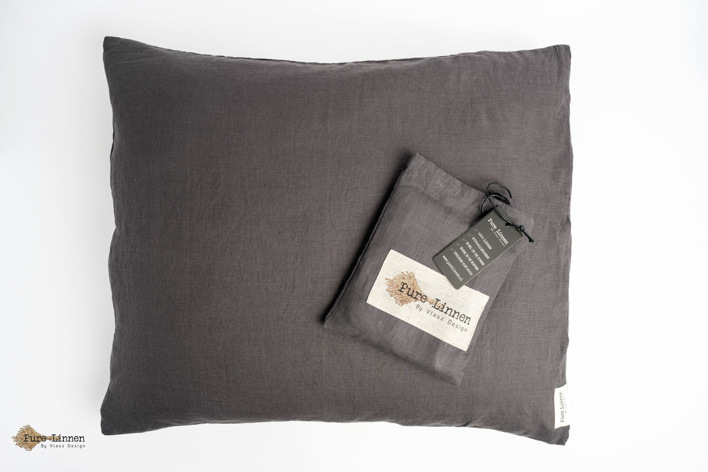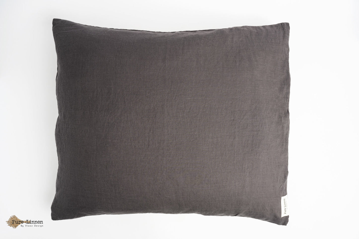 Linnen Kussensloop Donkergrijs/Instopstrook - Pure Linnen
